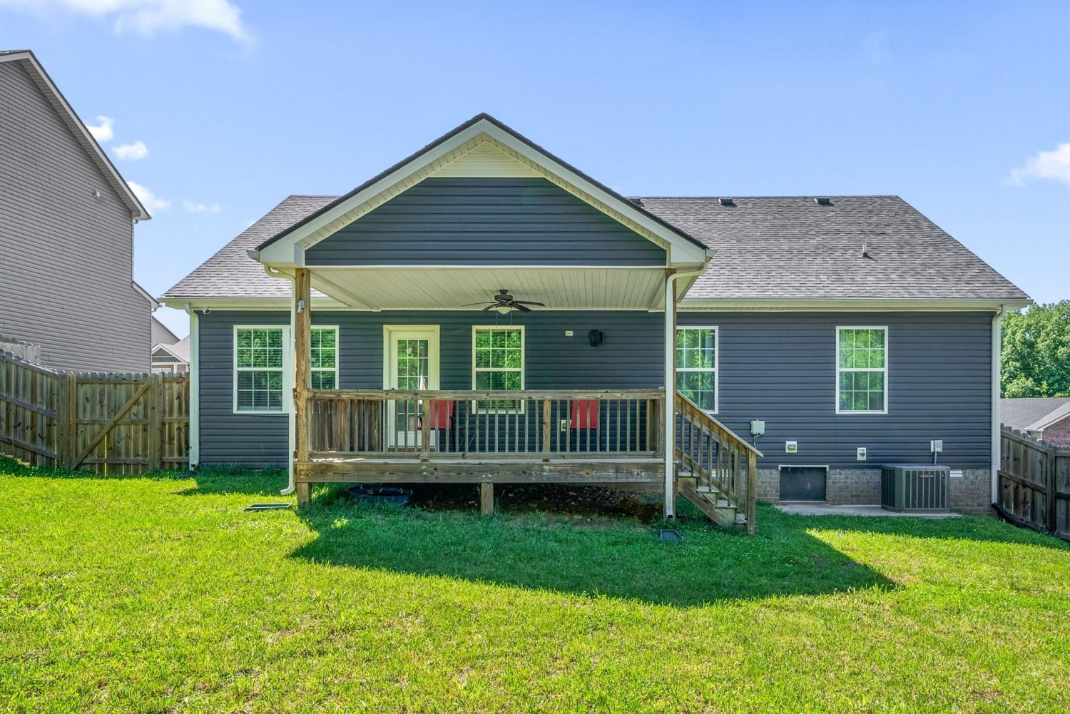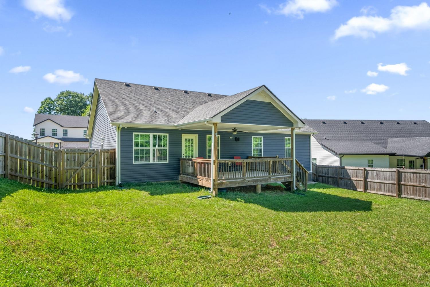 Step inside this stunning 3-bedroom, 2-bath single story home in the highly desired SANGO community and see why it’s the one you’ve been waiting for! With vaulted ceilings, an open-concept layout and a picturesque wooded view, this move-in-ready gem feels even more spacious in person! Built in 2020, the home features a beautifully designed floorplan with an airy living room & open kitchen with stainless steel appliances, a center prep island, gorgeous cabinetry, and sleek granite countertops. The oversized primary suite has a beautiful tray ceiling, en-suite bath with double sinks and custom tiled shower. Across the home, you'll find two additional spacious bedrooms with plenty of storage and a full bath. Step outside to the covered back deck, located just off the kitchen and dining area, perfect for grilling and enjoying the serene wooded view. This property offers serene surroundings with easy access to I-24, Ft. Campbell (~15 mi), Nashville (~45 mi to Nashville), and parks (Rotary Park ~2 miles). This home provides easy access to everything you need!