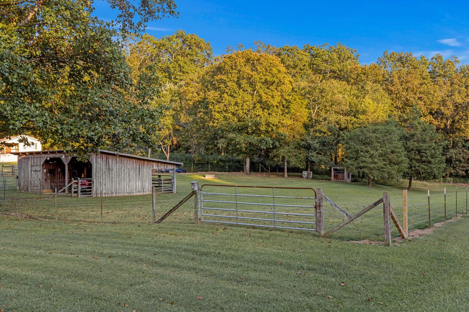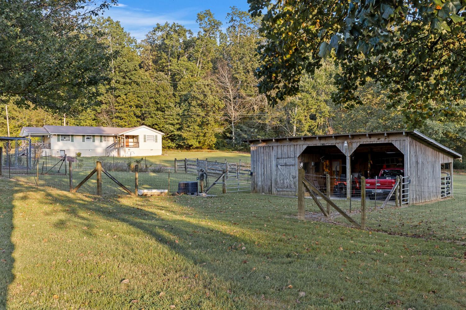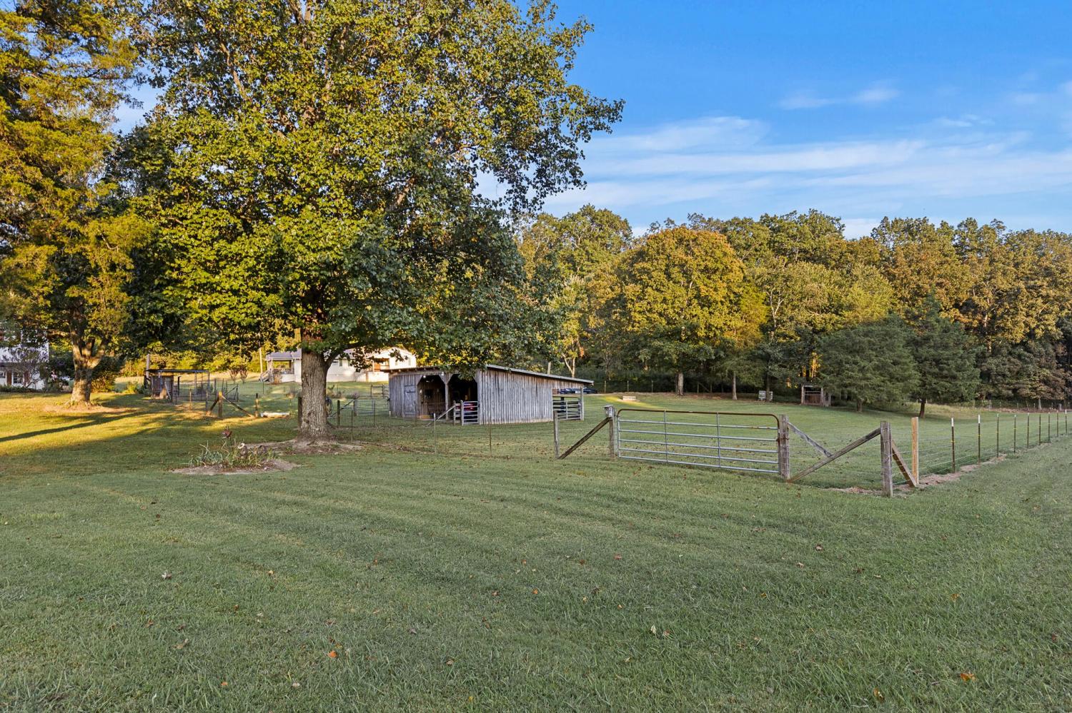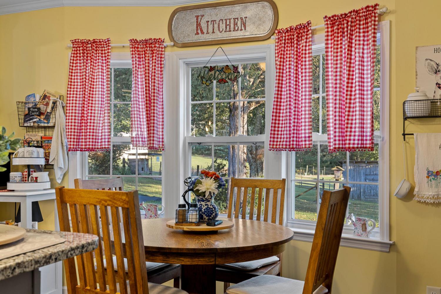 Welcome to 4915 Spring Place Road, a charming 3-bedroom, 2-bathroom home nestled on approximately 2 acres of flat, usable land ideal for both livestock and wildlife. Step inside the living room where a cozy fireplace takes center stage beneath rustic wood-beamed ceilings, creating the perfect gathering place. The kitchen is a true standout with updated cabinetry, a built-in island cooktop, wall oven, convection oven, and stainless steel refrigerator and microwave. A sunny breakfast nook framed by bay windows makes every meal feel special. The primary bedroom is bathed in natural light and opens to a spacious en-suite bath complete with a walk-in shower, dual sinks on a double vanity, and abundant cabinetry for storage. Two additional bedrooms share a well-appointed bathroom, while a dedicated laundry room with sink and exterior exit adds convenience. Outdoors, you'll find a fenced garden area leading to a unique bonus structure featuring a playroom, extra living space, and a basement bunker room—perfect for hobbies, recreation, or storage. The property also boasts a large three-car carport, a barn within the fenced pasture, and two additional storage buildings for all your needs. Blending comfort, functionality, and rural charm, this property offers a rare opportunity to enjoy spacious living with modern updates in a serene countryside setting.