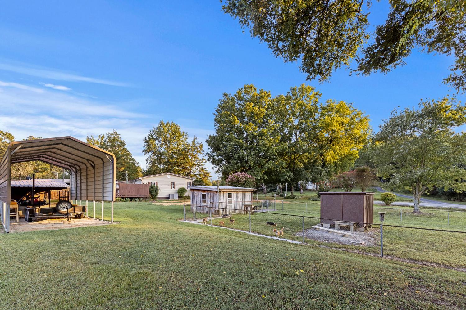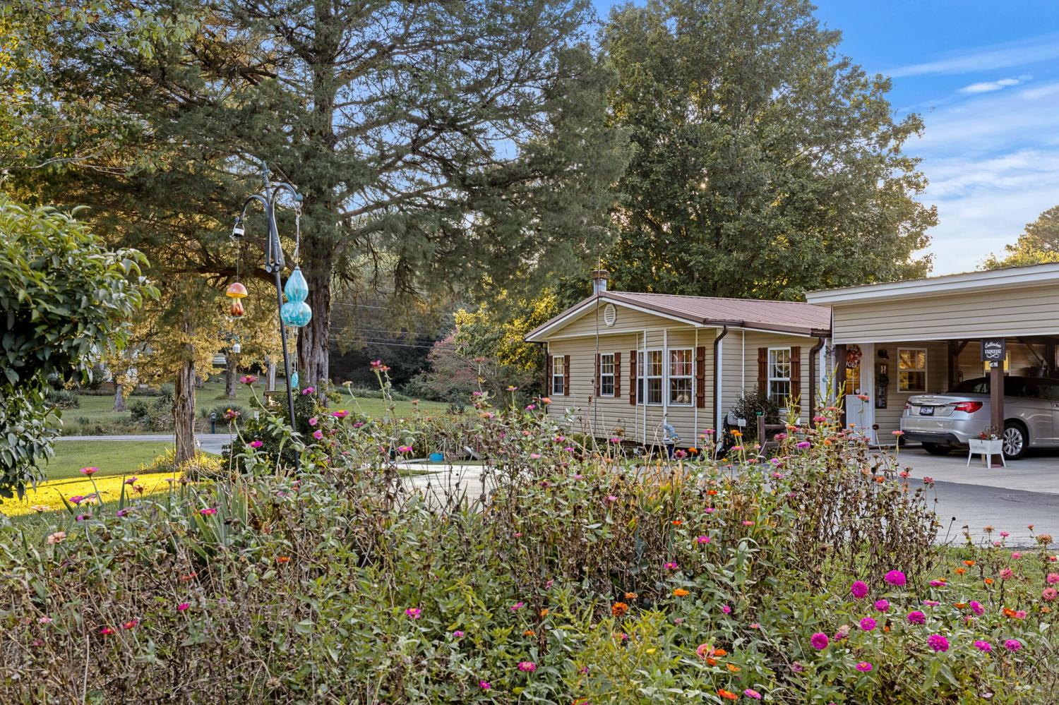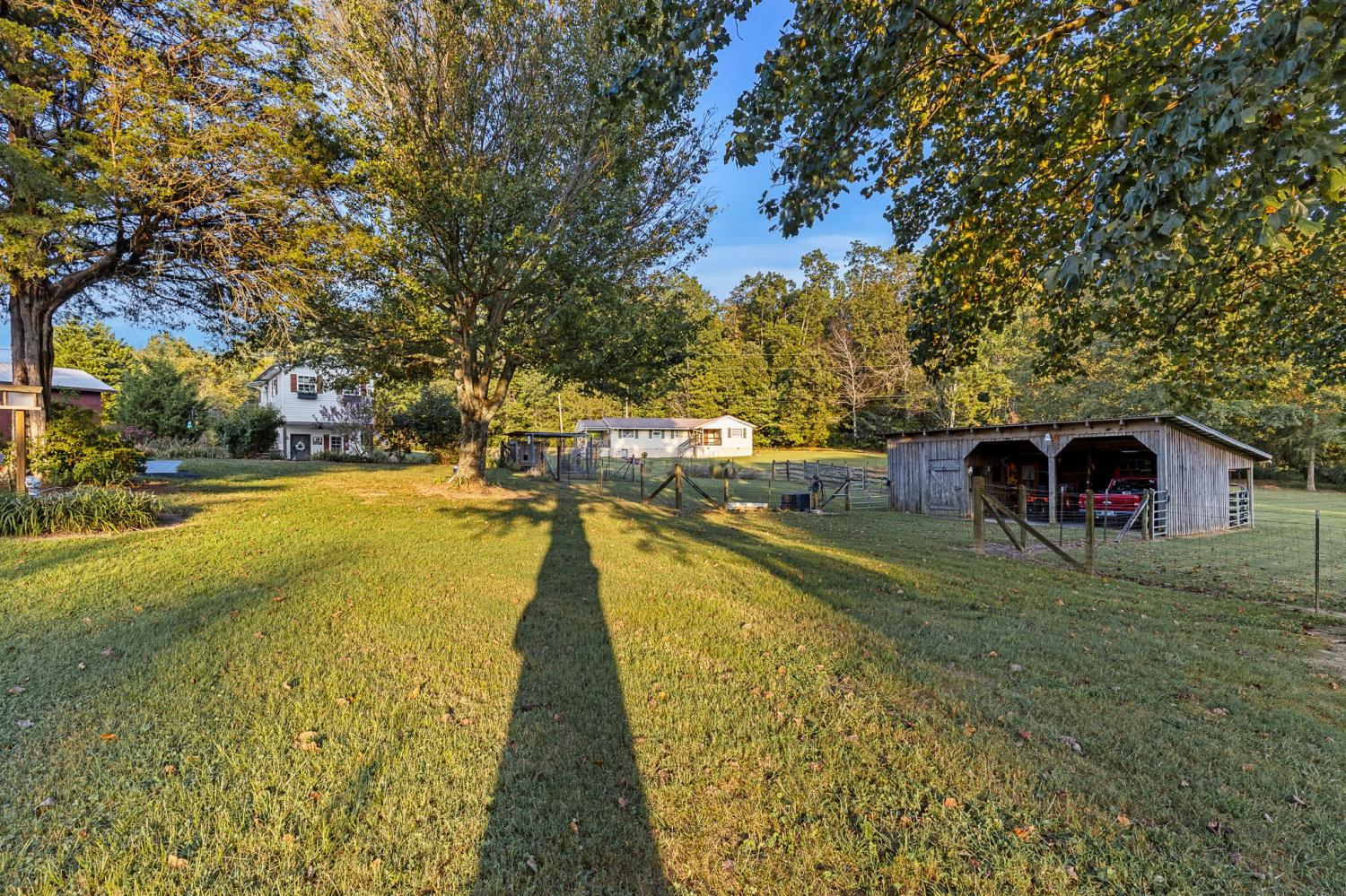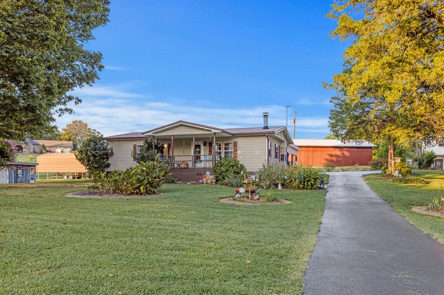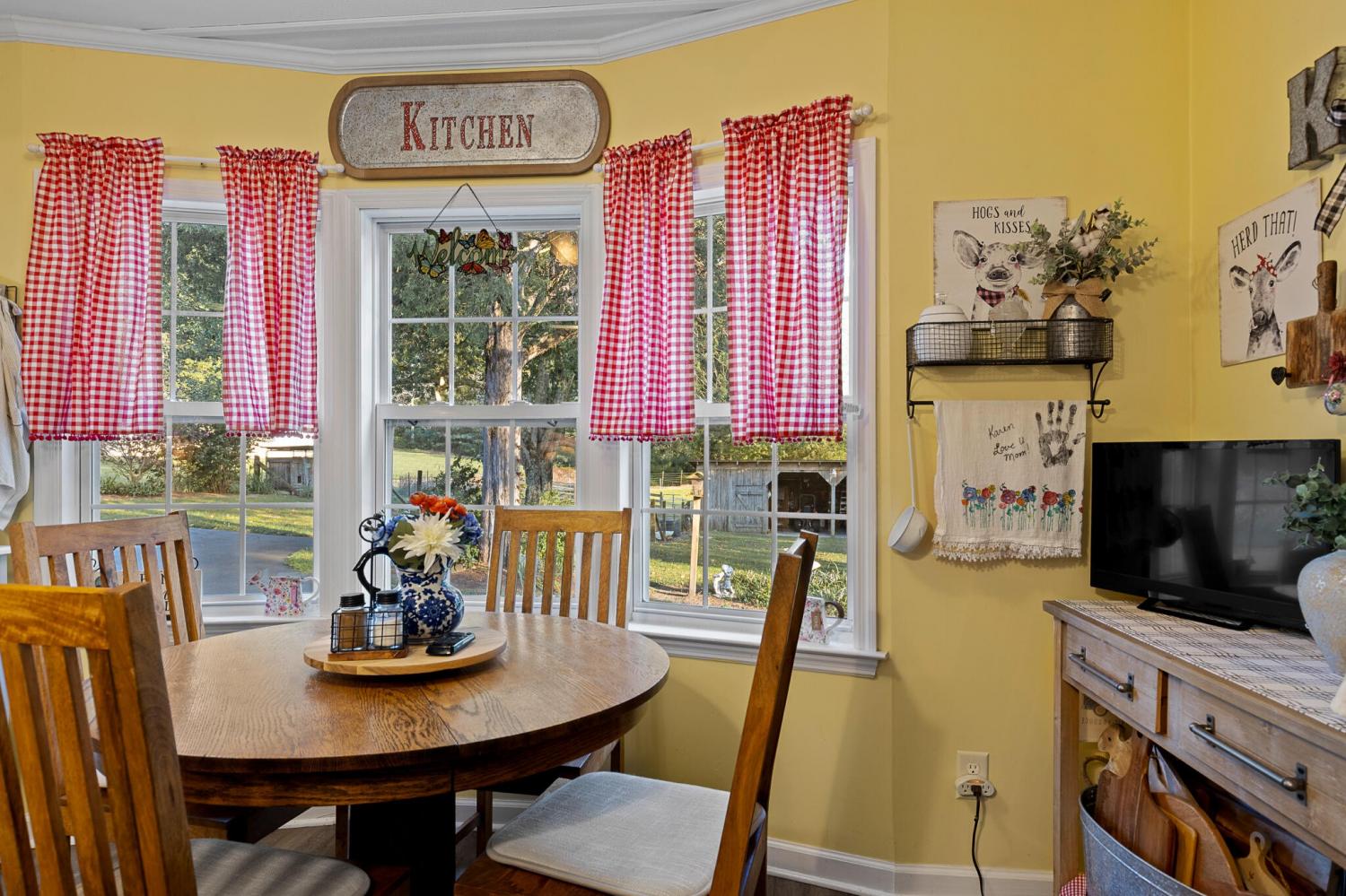 Welcome to 4915 Spring Place Road, a charming 3-bedroom, 2-bathroom home nestled on approximately 2 acres of flat, usable land ideal for both livestock and wildlife. Step inside the living room where a cozy fireplace takes center stage beneath rustic wood-beamed ceilings, creating the perfect gathering place. The kitchen is a true standout with updated cabinetry, a built-in island cooktop, wall oven, convection oven, and stainless steel refrigerator and microwave. A sunny breakfast nook framed by bay windows makes every meal feel special. The primary bedroom is bathed in natural light and opens to a spacious en-suite bath complete with a walk-in shower, dual sinks on a double vanity, and abundant cabinetry for storage. Two additional bedrooms share a well-appointed bathroom, while a dedicated laundry room with sink and exterior exit adds convenience. Outdoors, you'll find a fenced garden area leading to a unique bonus structure featuring a playroom, extra living space, and a basement bunker room—perfect for hobbies, recreation, or storage. The property also boasts a large three-car carport, a barn within the fenced pasture, and two additional storage buildings for all your needs. Blending comfort, functionality, and rural charm, this property offers a rare opportunity to enjoy spacious living with modern updates in a serene countryside setting.