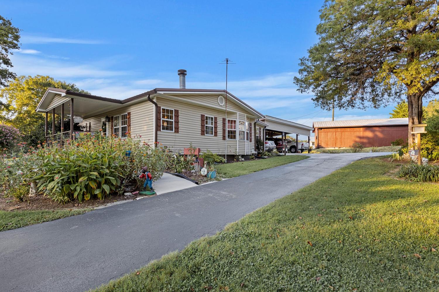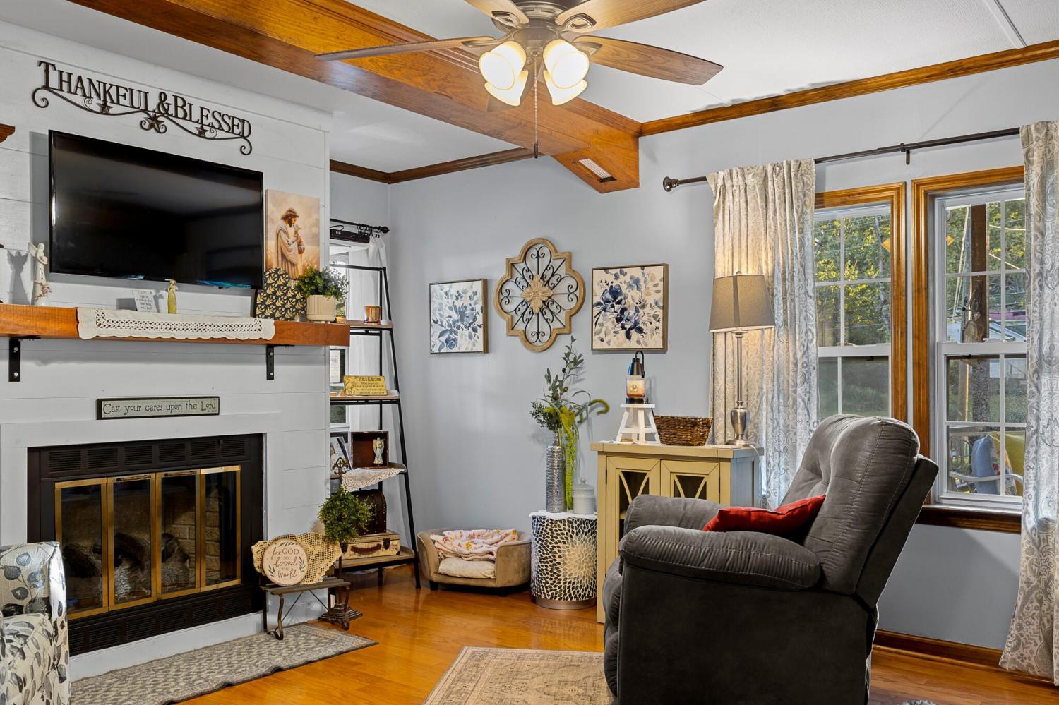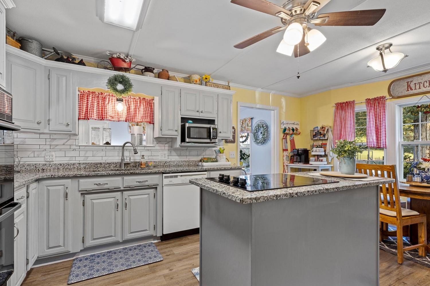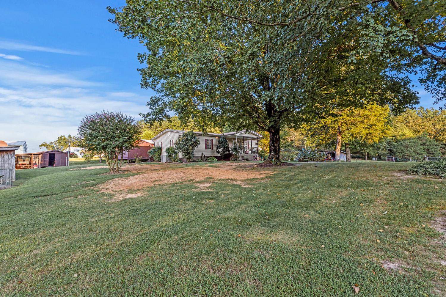 Welcome to 4915 Spring Place Road, a charming 3-bedroom, 2-bathroom home nestled on approximately 2 acres of flat, usable land ideal for both livestock and wildlife. Step inside the living room where a cozy fireplace takes center stage beneath rustic wood-beamed ceilings, creating the perfect gathering place. The kitchen is a true standout with updated cabinetry, a built-in island cooktop, wall oven, convection oven, and stainless steel refrigerator and microwave. A sunny breakfast nook framed by bay windows makes every meal feel special. The primary bedroom is bathed in natural light and opens to a spacious en-suite bath complete with a walk-in shower, dual sinks on a double vanity, and abundant cabinetry for storage. Two additional bedrooms share a well-appointed bathroom, while a dedicated laundry room with sink and exterior exit adds convenience. Outdoors, you'll find a fenced garden area leading to a unique bonus structure featuring a playroom, extra living space, and a basement bunker room—perfect for hobbies, recreation, or storage. The property also boasts a large three-car carport, a barn within the fenced pasture, and two additional storage buildings for all your needs. Blending comfort, functionality, and rural charm, this property offers a rare opportunity to enjoy spacious living with modern updates in a serene countryside setting.