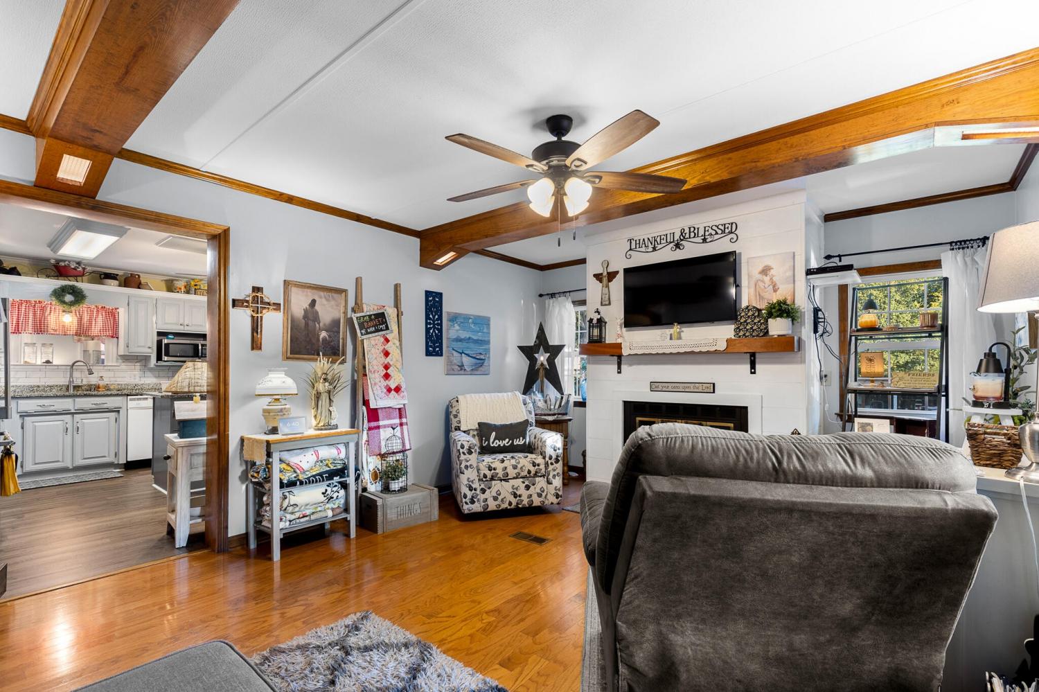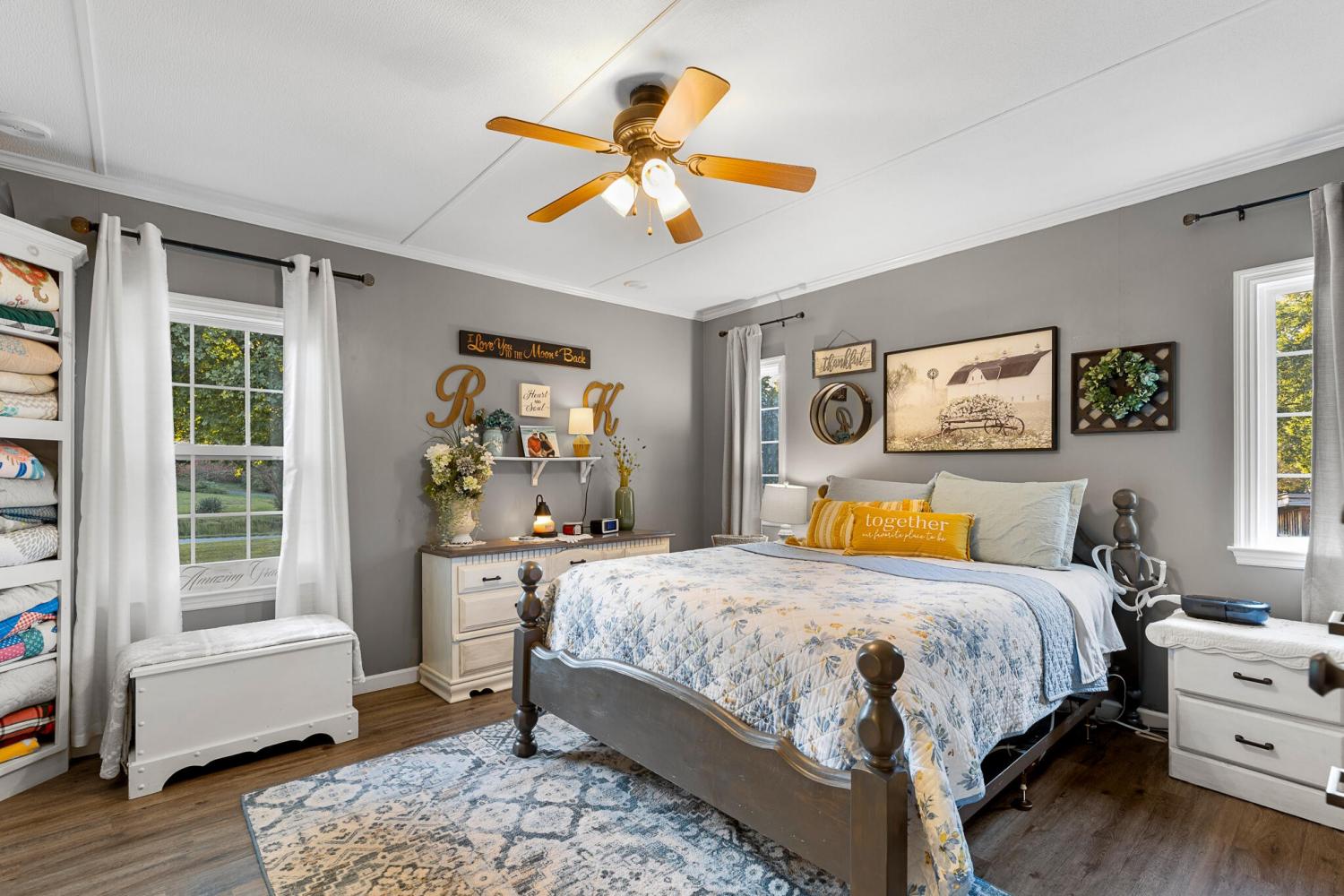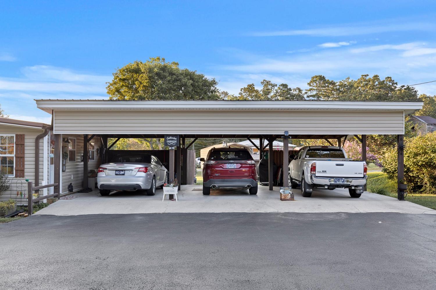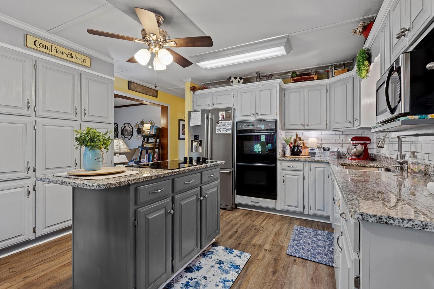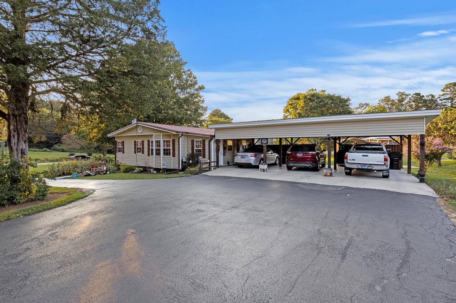 Welcome to 4915 Spring Place Road, a charming 3-bedroom, 2-bathroom home nestled on approximately 2 acres of flat, usable land ideal for both livestock and wildlife. Step inside the living room where a cozy fireplace takes center stage beneath rustic wood-beamed ceilings, creating the perfect gathering place. The kitchen is a true standout with updated cabinetry, a built-in island cooktop, wall oven, convection oven, and stainless steel refrigerator and microwave. A sunny breakfast nook framed by bay windows makes every meal feel special. The primary bedroom is bathed in natural light and opens to a spacious en-suite bath complete with a walk-in shower, dual sinks on a double vanity, and abundant cabinetry for storage. Two additional bedrooms share a well-appointed bathroom, while a dedicated laundry room with sink and exterior exit adds convenience. Outdoors, you'll find a fenced garden area leading to a unique bonus structure featuring a playroom, extra living space, and a basement bunker room—perfect for hobbies, recreation, or storage. The property also boasts a large three-car carport, a barn within the fenced pasture, and two additional storage buildings for all your needs. Blending comfort, functionality, and rural charm, this property offers a rare opportunity to enjoy spacious living with modern updates in a serene countryside setting.