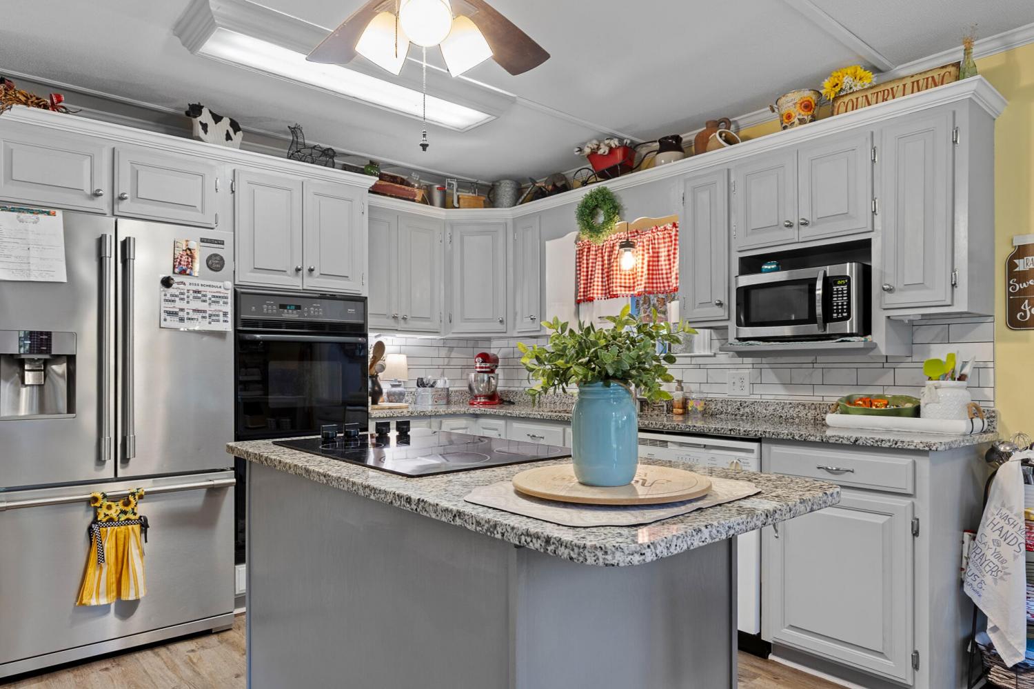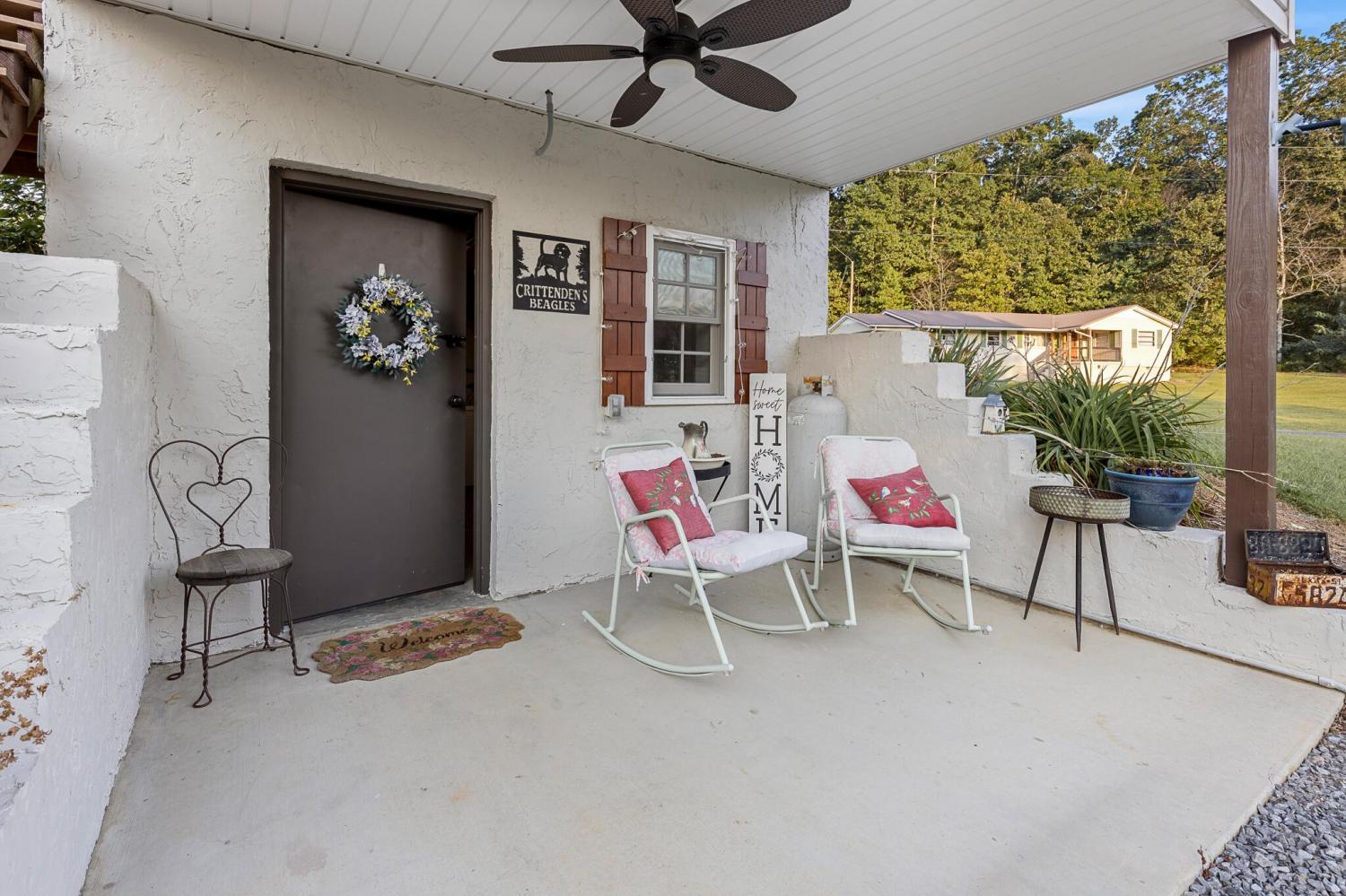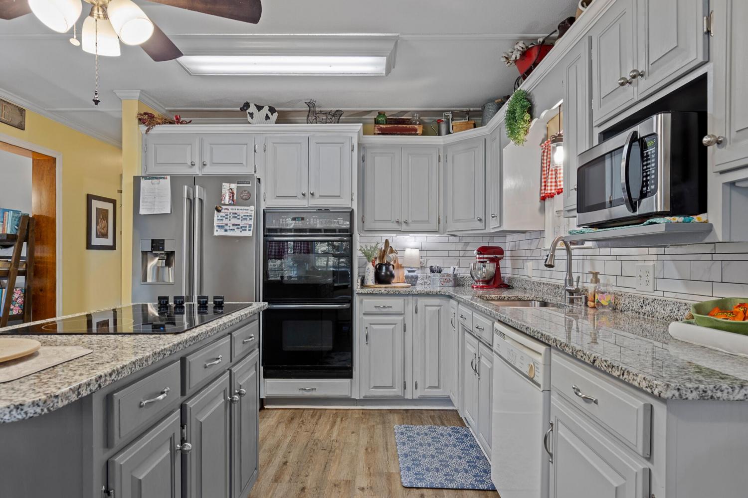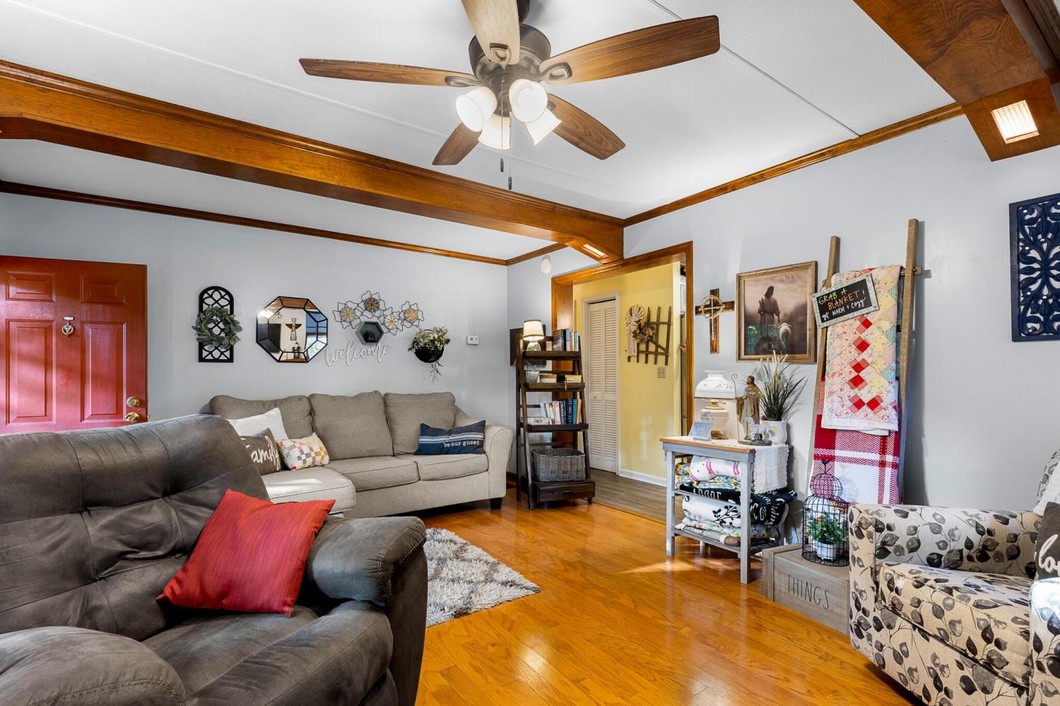 Welcome to 4915 Spring Place Road, a charming 3-bedroom, 2-bathroom home nestled on approximately 2 acres of flat, usable land ideal for both livestock and wildlife. Step inside the living room where a cozy fireplace takes center stage beneath rustic wood-beamed ceilings, creating the perfect gathering place. The kitchen is a true standout with updated cabinetry, a built-in island cooktop, wall oven, convection oven, and stainless steel refrigerator and microwave. A sunny breakfast nook framed by bay windows makes every meal feel special. The primary bedroom is bathed in natural light and opens to a spacious en-suite bath complete with a walk-in shower, dual sinks on a double vanity, and abundant cabinetry for storage. Two additional bedrooms share a well-appointed bathroom, while a dedicated laundry room with sink and exterior exit adds convenience. Outdoors, you'll find a fenced garden area leading to a unique bonus structure featuring a playroom, extra living space, and a basement bunker room—perfect for hobbies, recreation, or storage. The property also boasts a large three-car carport, a barn within the fenced pasture, and two additional storage buildings for all your needs. Blending comfort, functionality, and rural charm, this property offers a rare opportunity to enjoy spacious living with modern updates in a serene countryside setting.