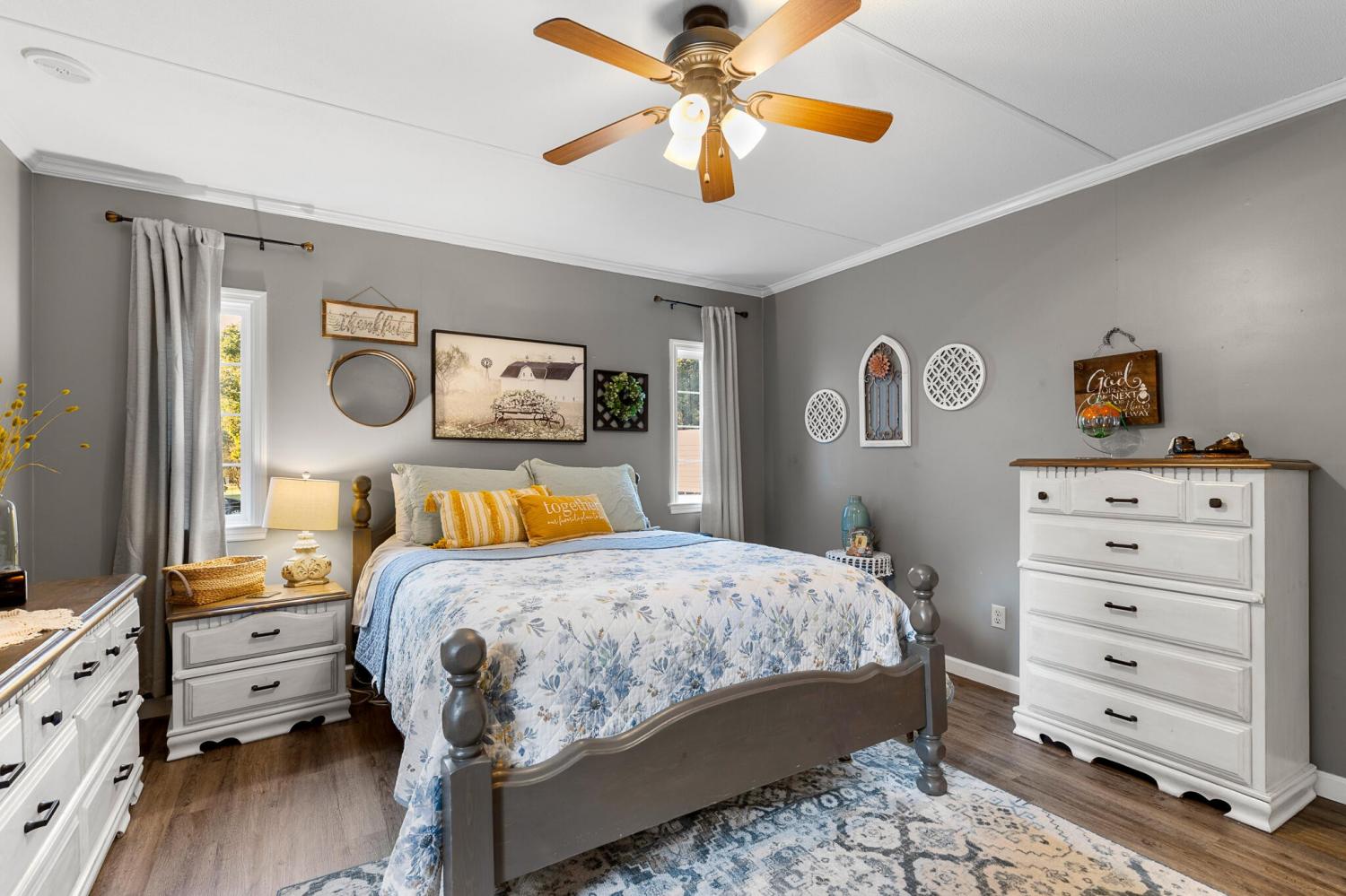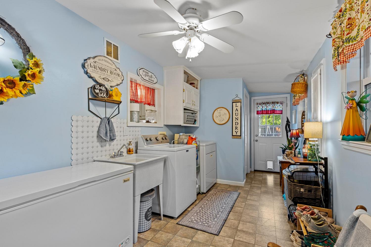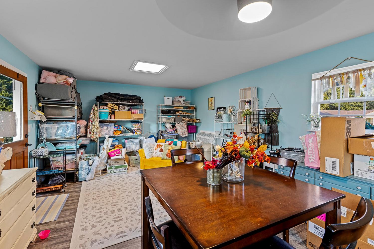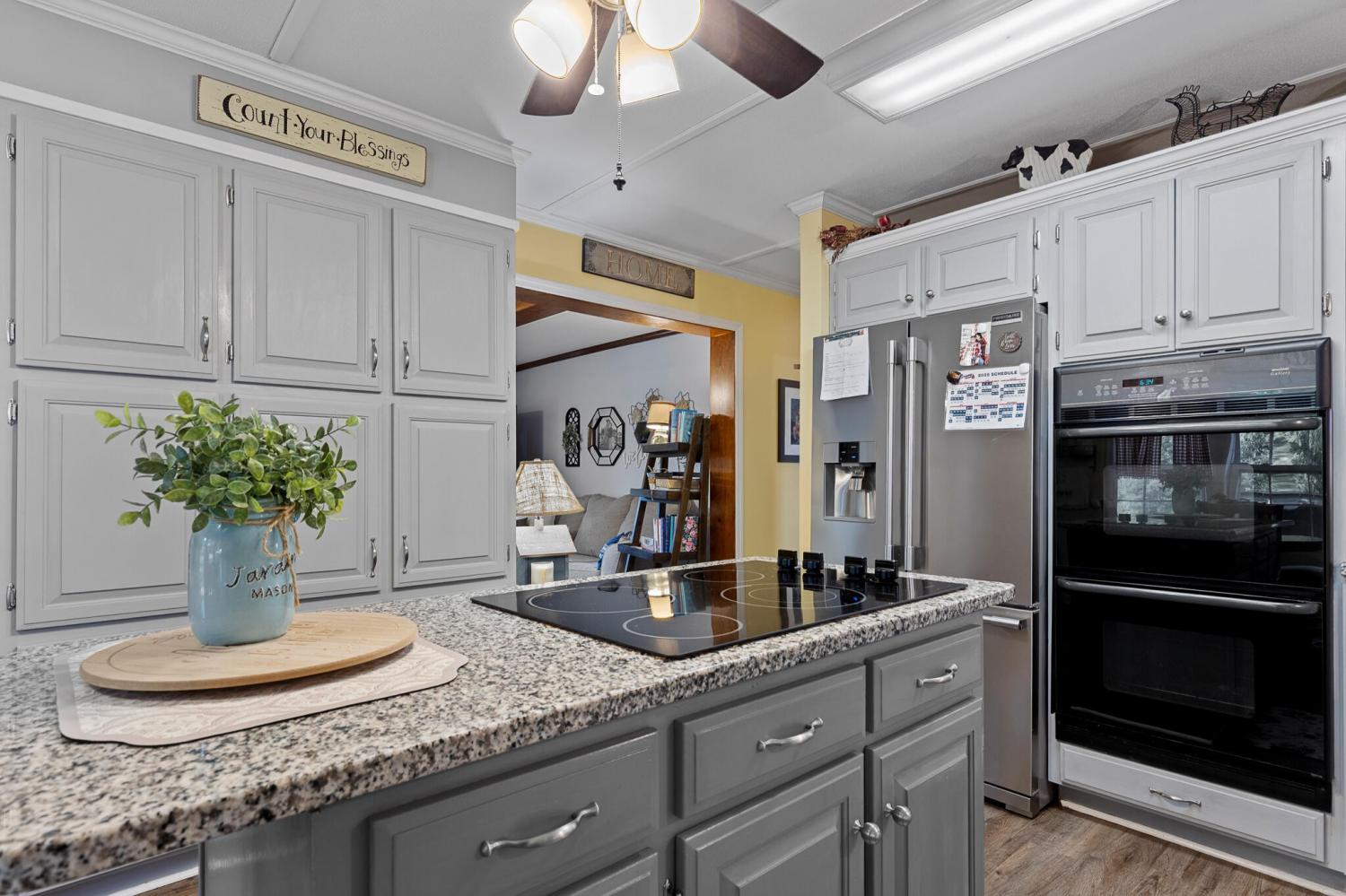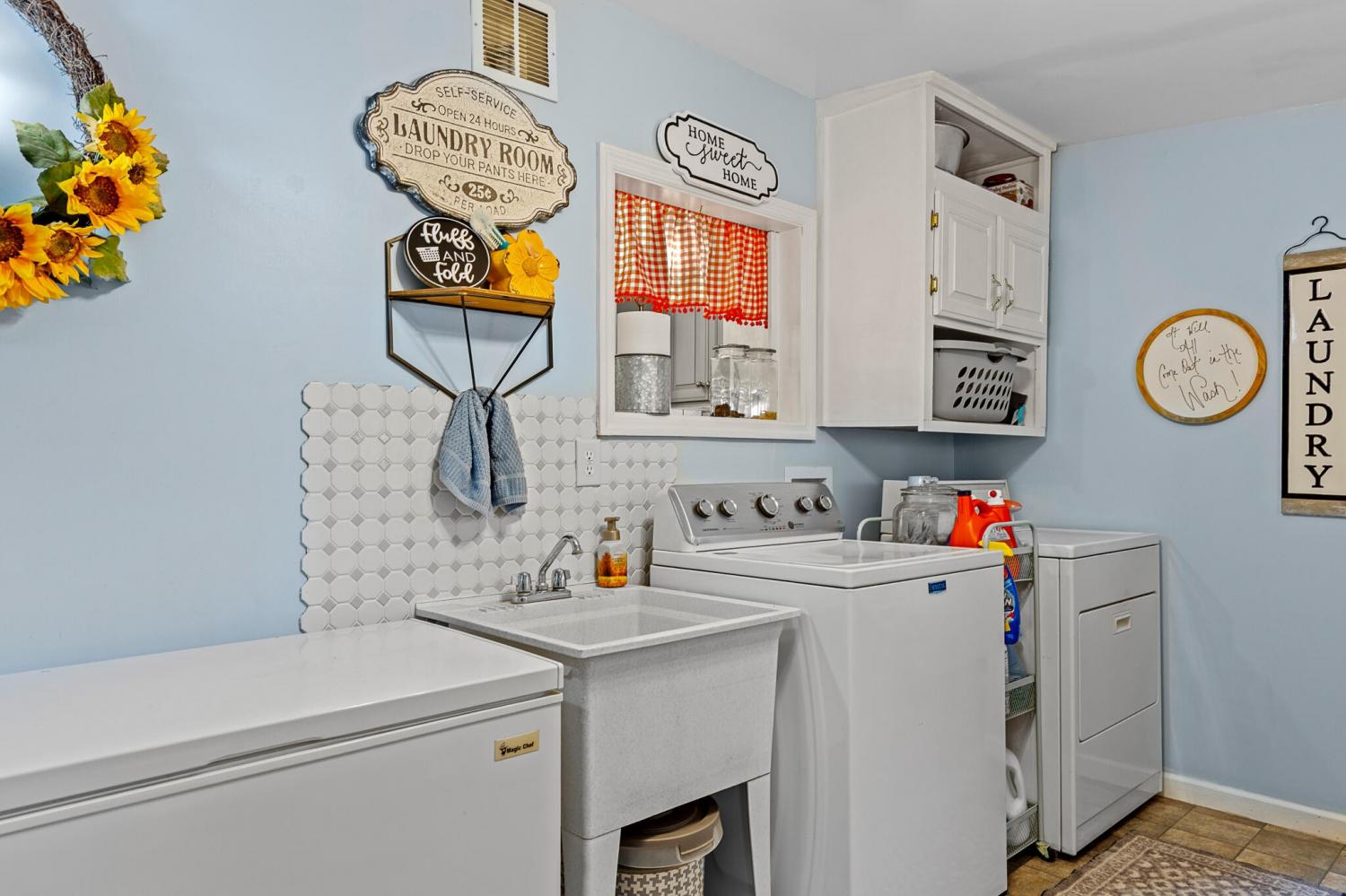Welcome to 4915 Spring Place Road, a charming 3-bedroom, 2-bathroom home nestled on approximately 2 acres of flat, usable land ideal for both livestock and wildlife. Step inside the living room where a cozy fireplace takes center stage beneath rustic wood-beamed ceilings, creating the perfect gathering place. The kitchen is a true standout with updated cabinetry, a built-in island cooktop, wall oven, convection oven, and stainless steel refrigerator and microwave. A sunny breakfast nook framed by bay windows makes every meal feel special. The primary bedroom is bathed in natural light and opens to a spacious en-suite bath complete with a walk-in shower, dual sinks on a double vanity, and abundant cabinetry for storage. Two additional bedrooms share a well-appointed bathroom, while a dedicated laundry room with sink and exterior exit adds convenience. Outdoors, you'll find a fenced garden area leading to a unique bonus structure featuring a playroom, extra living space, and a basement bunker room—perfect for hobbies, recreation, or storage. The property also boasts a large three-car carport, a barn within the fenced pasture, and two additional storage buildings for all your needs. Blending comfort, functionality, and rural charm, this property offers a rare opportunity to enjoy spacious living with modern updates in a serene countryside setting.