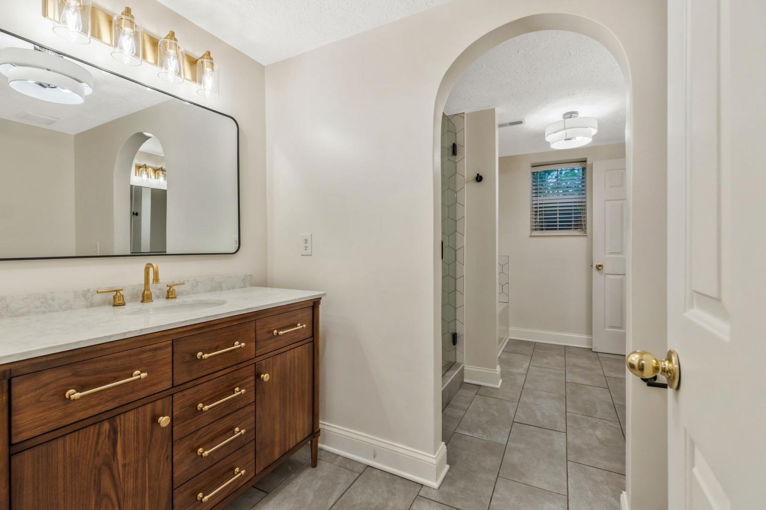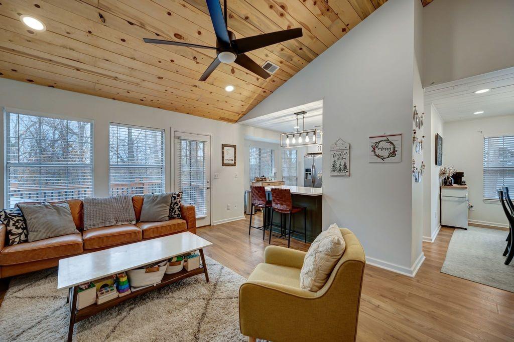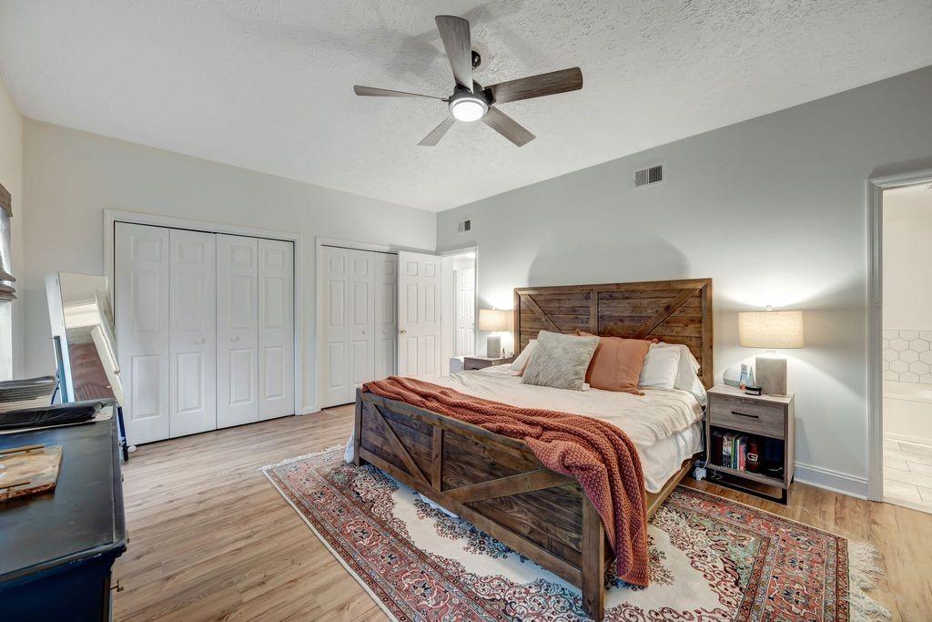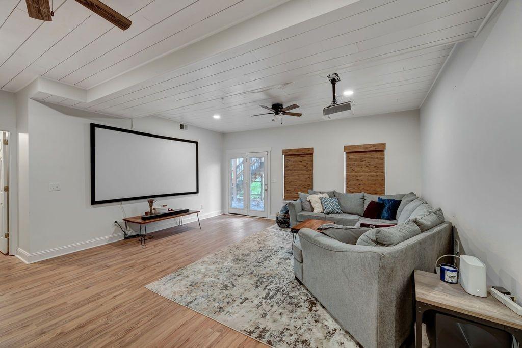 This fully renovated home is stunning. 4 bedrooms with a flex room, AND a bonus room. The main floor features vaulted shiplap ceilings, luxury Pergo flooring throughout, and a fully renovated kitchen with new shaker cabinets, quartz countertops, tiled backsplash, and stainless steel appliances. The open floor plan is great for entertaining! The dining area is very large and features an awesome board batten accent wall! The main floor bedroom is very large with double closets and a Jack and Jill bathroom that has been fully renovated featuring double vanity with marble countertop, new tile flooring, and updated lighting! The master suite is a showstopper! Very large master bedroom with plenty of space for king bed and seating area and 2 Large walk-in closets! The master bathroom is has designer finishes throughout, with double vanities, tiled floor, tiled walk-in shower with glass enclosure and soaking tub with tile surround. There is a flex room as well perfect for gym or office and a large walk-in closet. Large attached 2 car garage. If you're looking for house that is move-in ready, fully renovated, and TONS of storage, you've found it! Outside you have a large driveway for extra parking. The back deck is only 2 years old, and has a nice sized patio below. The house backs up to a tree line and is very private and secluded. Location you can't beat! It is only 10 minutes the BNA Airport, and 12 minutes to downtown Nashville, and just 3 minutes to Kroger! The neighborhood features an awesome community pool and playground! Don't miss your chance to own this gem!