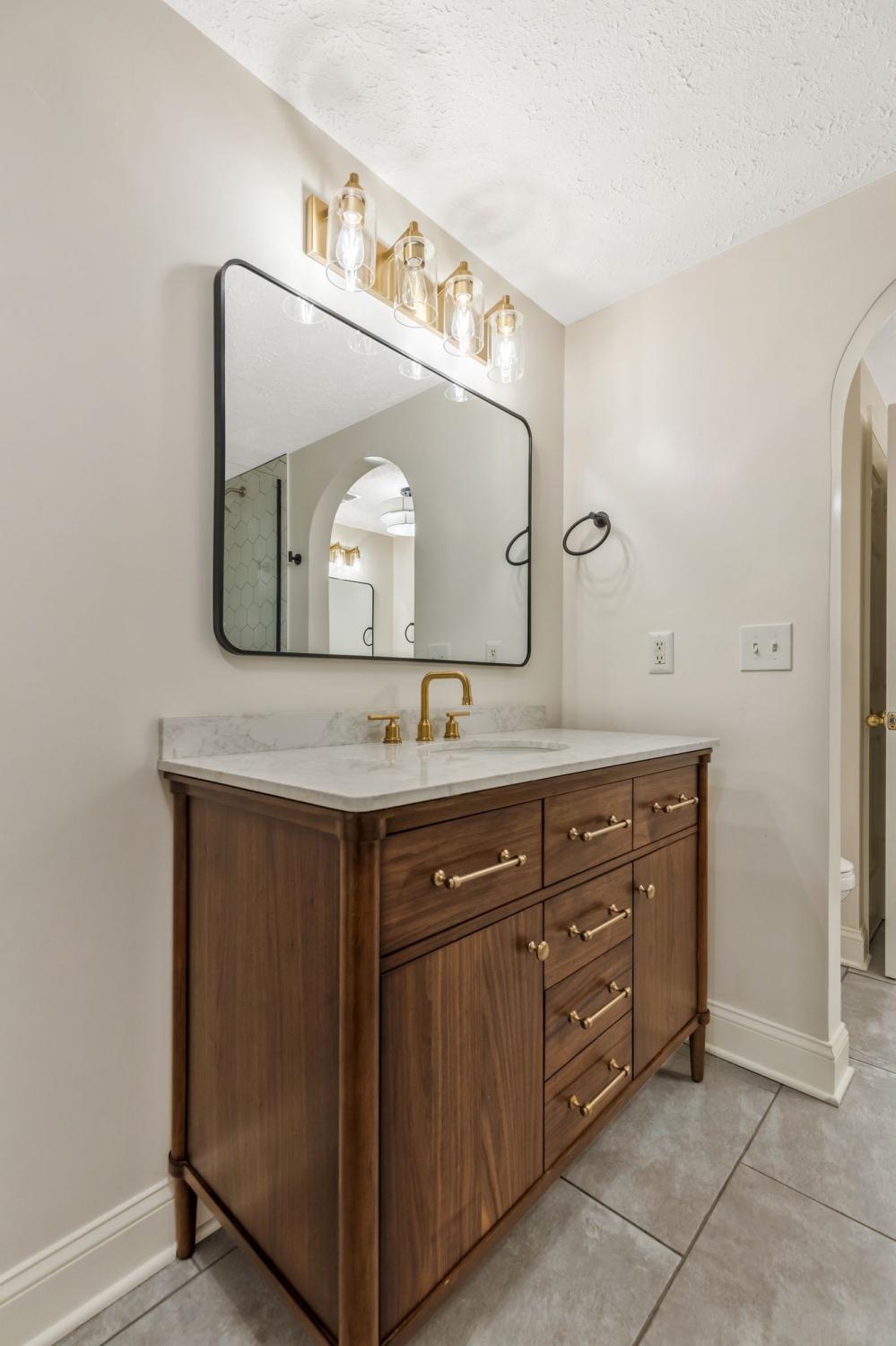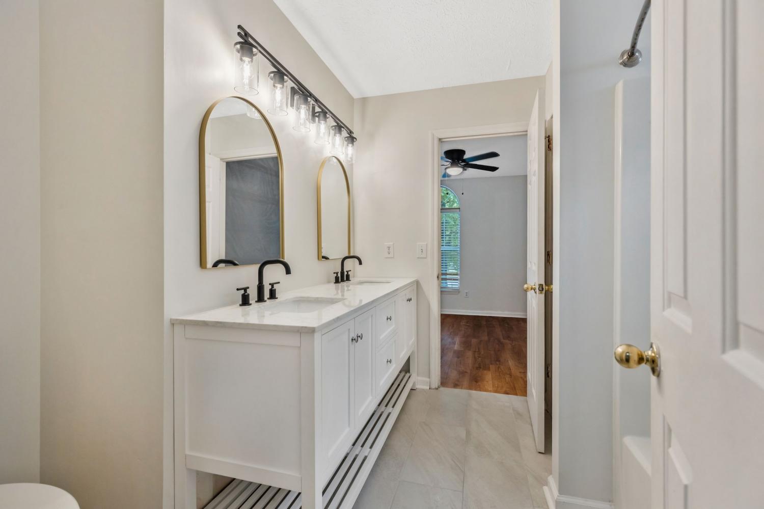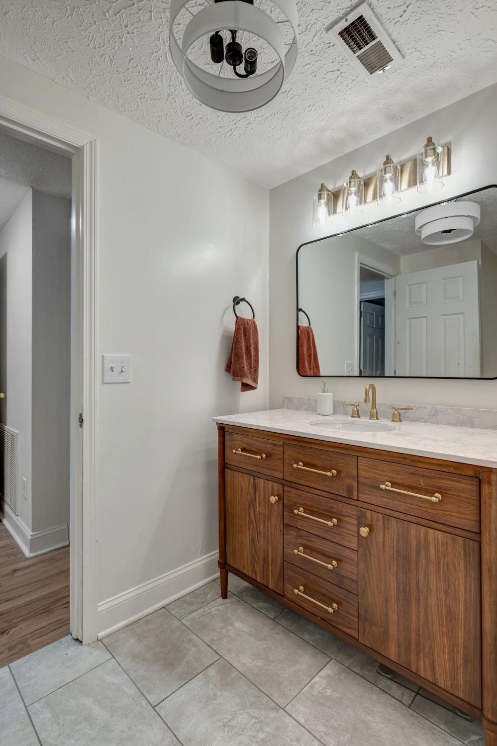 This fully renovated home is stunning. 4 bedrooms with a flex room, AND a bonus room. The main floor features vaulted shiplap ceilings, luxury Pergo flooring throughout, and a fully renovated kitchen with new shaker cabinets, quartz countertops, tiled backsplash, and stainless steel appliances. The open floor plan is great for entertaining! The dining area is very large and features an awesome board batten accent wall! The main floor bedroom is very large with double closets and a Jack and Jill bathroom that has been fully renovated featuring double vanity with marble countertop, new tile flooring, and updated lighting! The master suite is a showstopper! Very large master bedroom with plenty of space for king bed and seating area and 2 Large walk-in closets! The master bathroom is has designer finishes throughout, with double vanities, tiled floor, tiled walk-in shower with glass enclosure and soaking tub with tile surround. There is a flex room as well perfect for gym or office and a large walk-in closet. Large attached 2 car garage. If you're looking for house that is move-in ready, fully renovated, and TONS of storage, you've found it! Outside you have a large driveway for extra parking. The back deck is only 2 years old, and has a nice sized patio below. The house backs up to a tree line and is very private and secluded. Location you can't beat! It is only 10 minutes the BNA Airport, and 12 minutes to downtown Nashville, and just 3 minutes to Kroger! The neighborhood features an awesome community pool and playground! Don't miss your chance to own this gem!