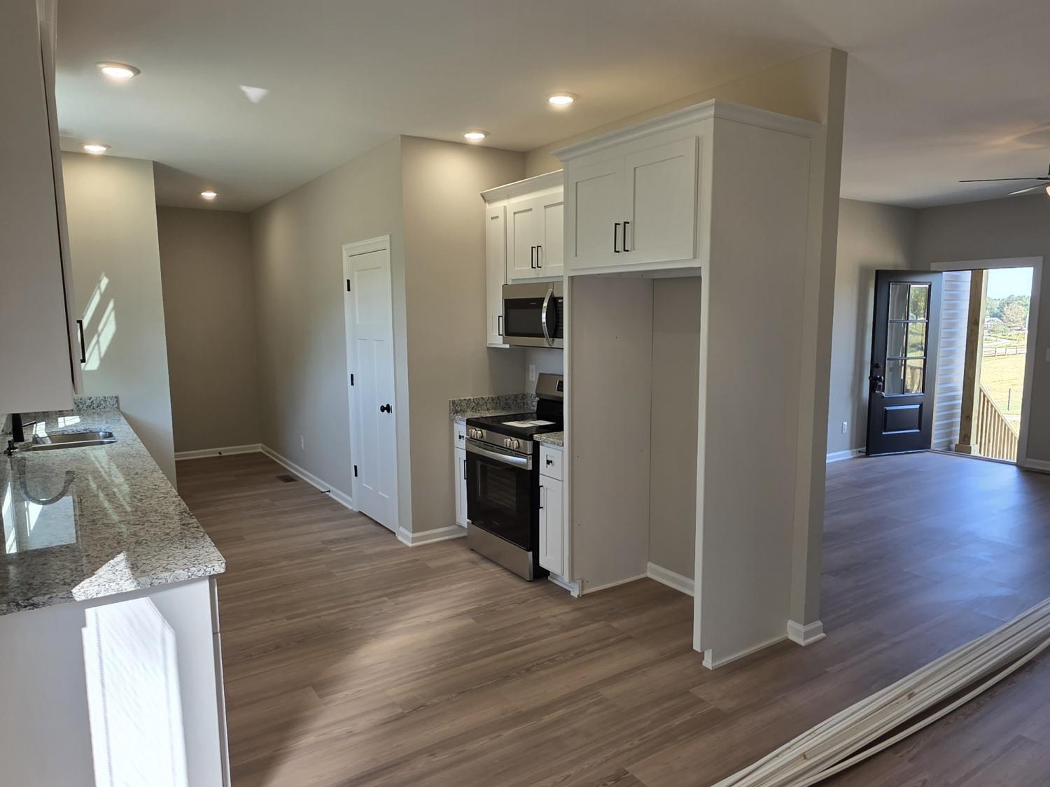 Welcome Home to your new construction Retreat! Treat yourself to a brand new 3 bedroom, 2 bathroom home with spacious living room and kitchen along with a split bedroom floor plan and a gorgeous view of country living. The home sits on 1.22+/- cleared acre lot. The House features custom built white cabinets, granite counter tops, stainless steel appliances, LVP flooring throughout, and a separate laundry room.