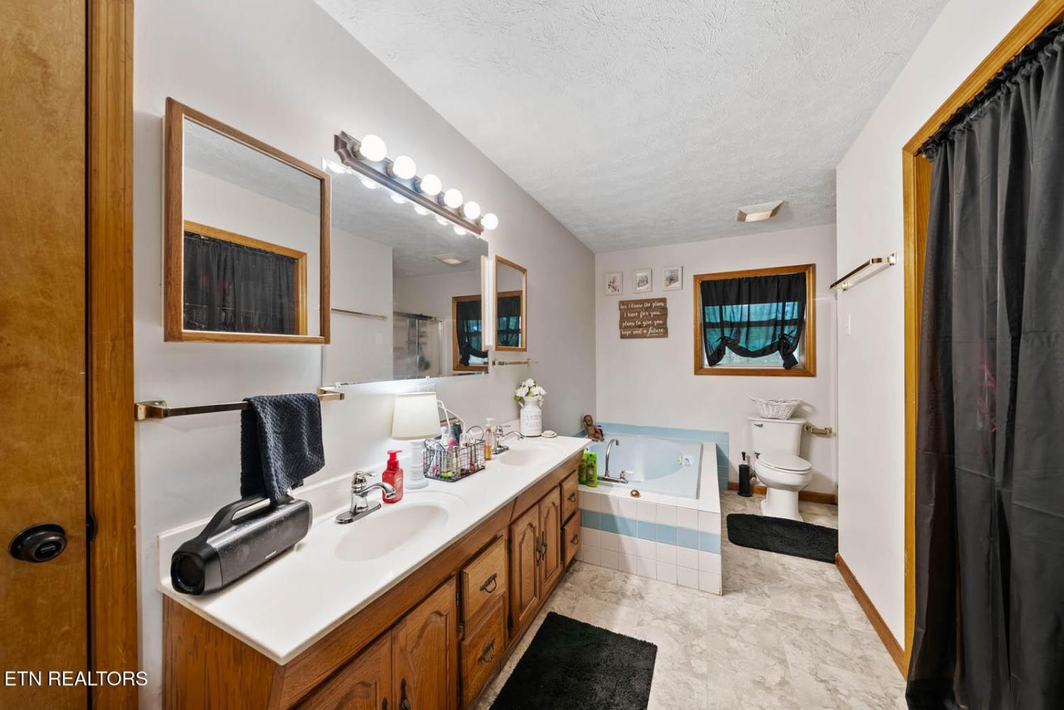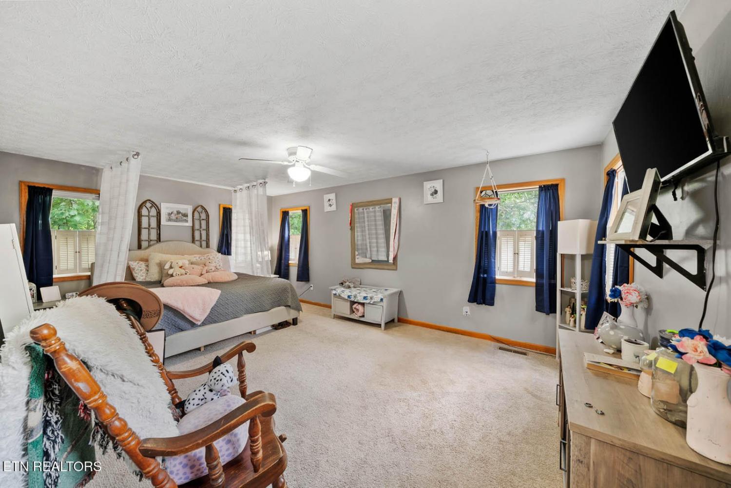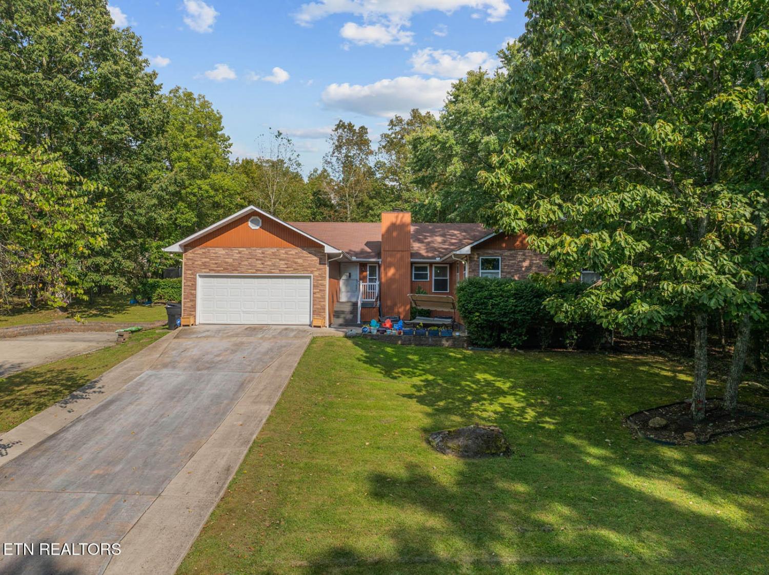 *Motivated Seller: the seller found a property they'd like to act on - this urgency is your opportunity.* Spacious Fairfield Glade Home with Character, Comfort & Potential! In the sought-after Lake Catherine subdivision of the Fairfield Glade community, this 3-bedroom, 3.5-bath home combines a functional layout with generous living spaces and unique outdoor appeal. Each bedroom features its own private en-suite bathroom, while an additional room - connected to the primary suite via a convenient dual-access bathroom - offers versatility as an office, craft room, or study. Inside, the home features large, light-filled rooms throughout, including a dedicated dining room - a traditional layout element that's becoming harder to find in newer builds these days. Out front, a walk-up deck with low-maintenance Trex decking creates an inviting entrance, while the backyard impresses with a wooded backdrop accented by dramatic natural rock outcroppings—a distinctive landscape that sets this property apart. Practical upgrades provide peace of mind, including a new electric water heater (2023) and an HVAC system replaced in 2021. A garage and two driveways ensure ample parking and convenience, and the property is connected to public sewer for worry-free living. Offered below market value, this home gives the next owner the opportunity to personalize, update, and add equity in one of Fairfield Glade's most desirable locations.