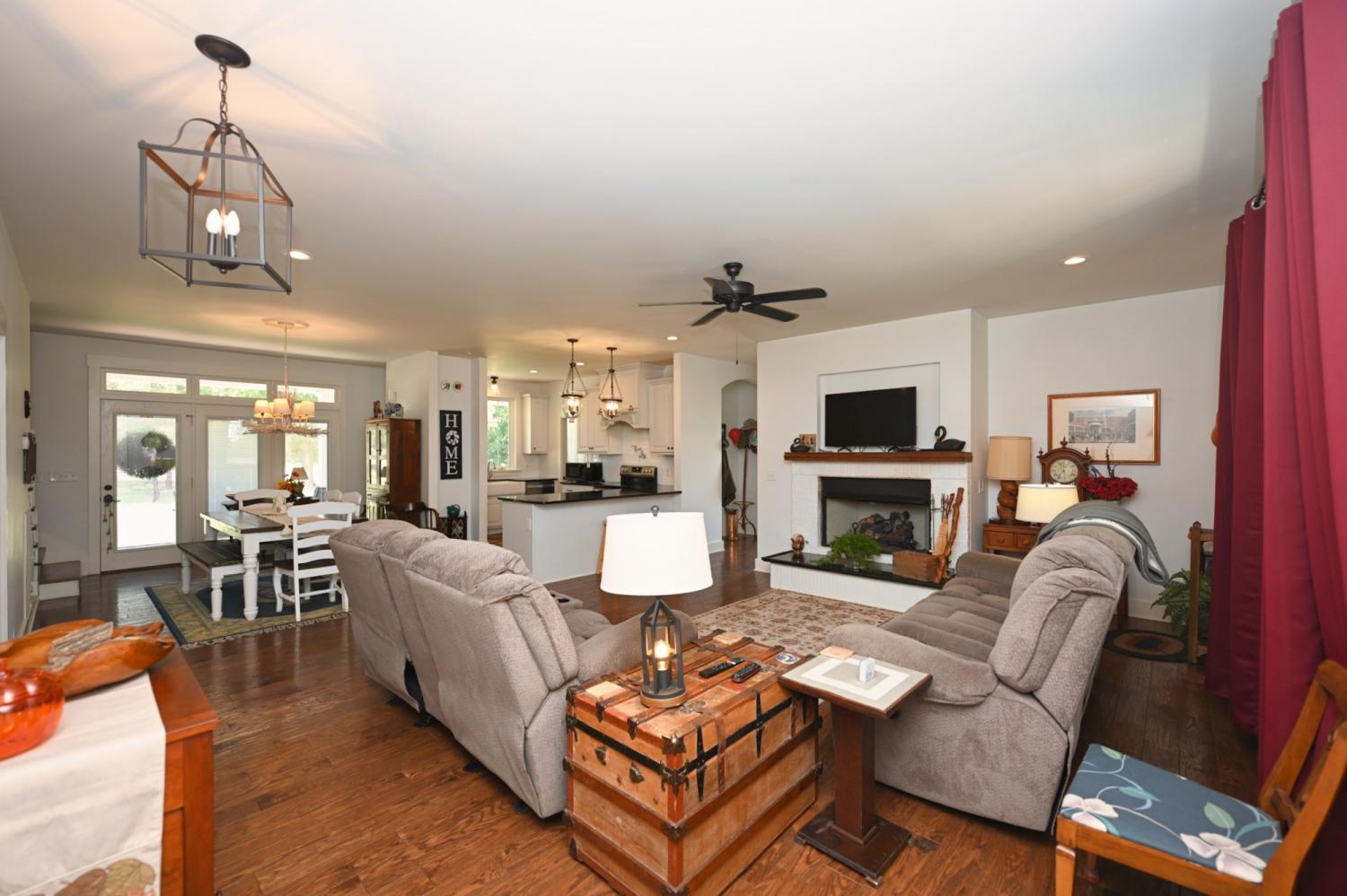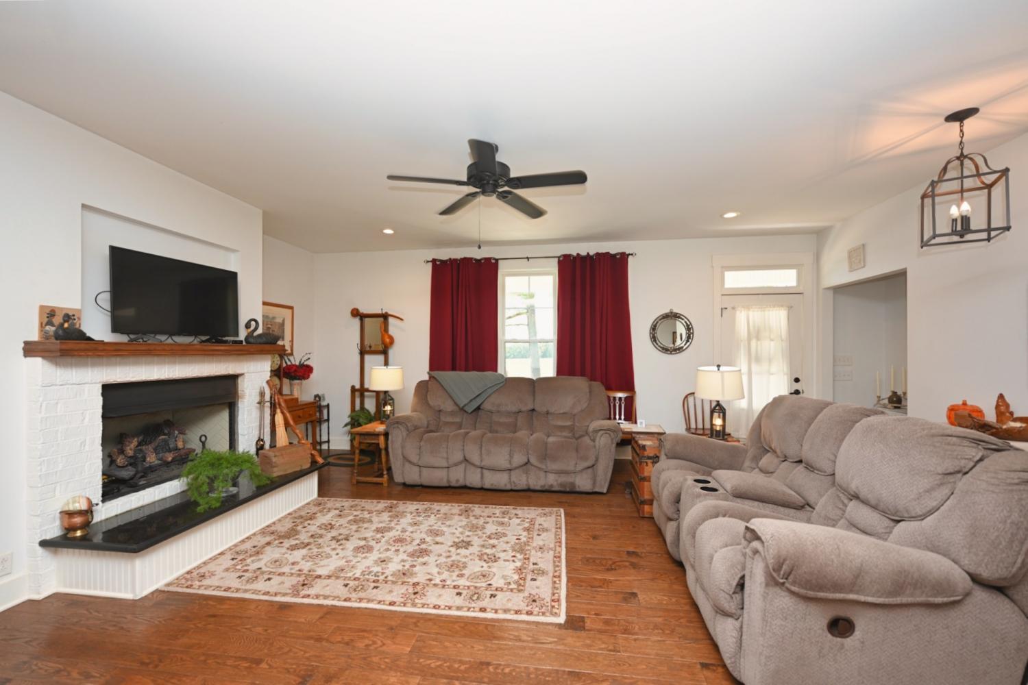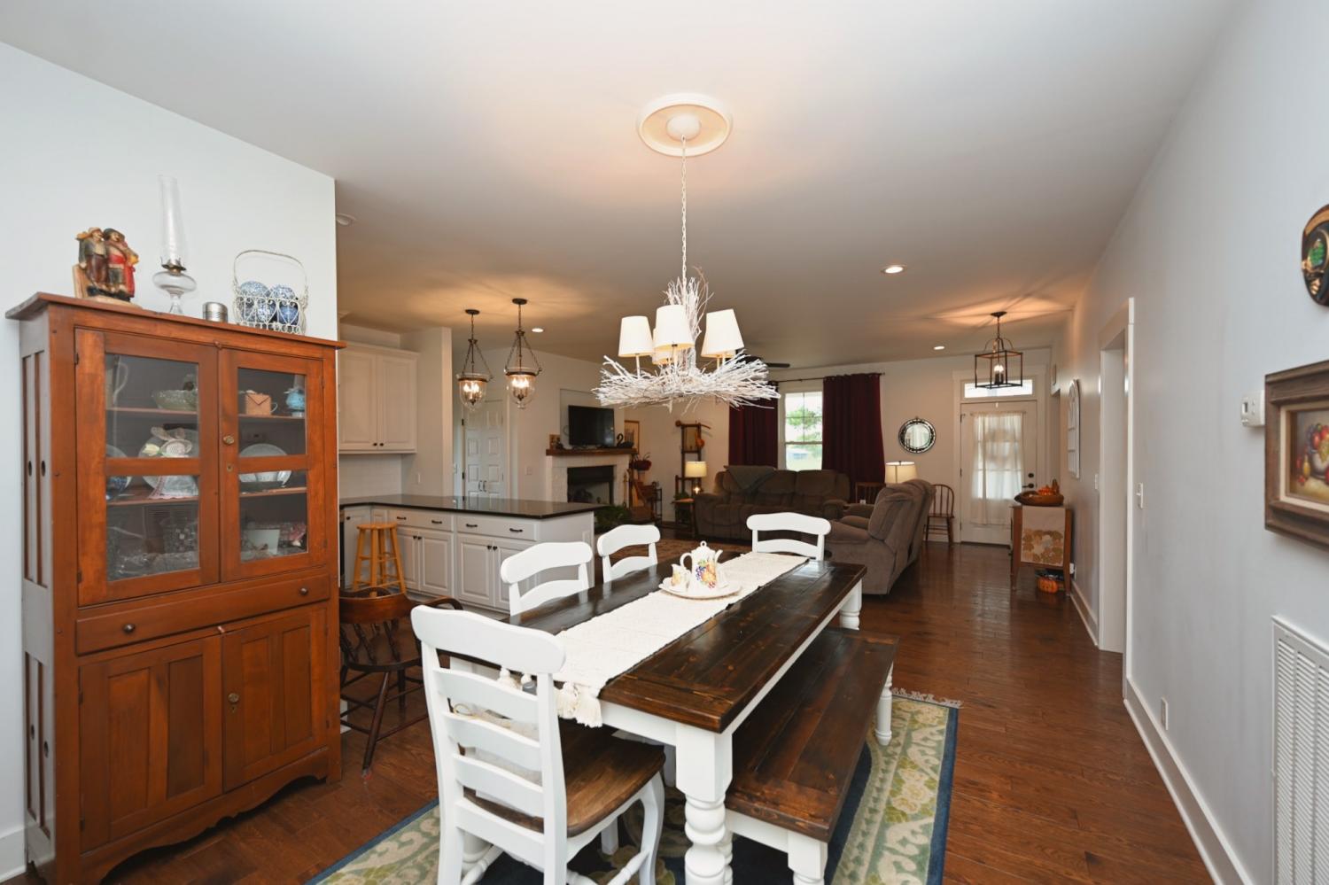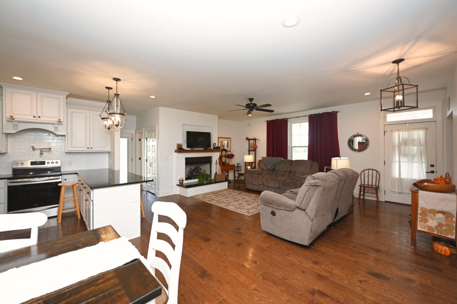 Welcome to your new home. This home offers a cozy layout, yet plentiful. Wide plank oak hardwood floors for majority of downstairs & staircase. Kitchen features contemporary white cabinets, black granite counter tops, pot filler, cast iron farm sink by Kohler, with casement windows above the sink. Spacious primary bedroom on main level with bath. Bathrooms feature subway tiles and shower surrounds. The secondary bathroom is on main level as well. Second floor features 2 bedrooms with plenty of space. Concrete carport and driveway. Charming rear porch, plus 24 x 30 metal garage which has a concrete floor and electricity,. Other features of house include, Triple pane windows by Tennessee Thermal. An Encapsulated crawlspace, superior insulation, tankless water heater and white metal roof. This house has it all - stunning view of farmland with pond and cows across the street.