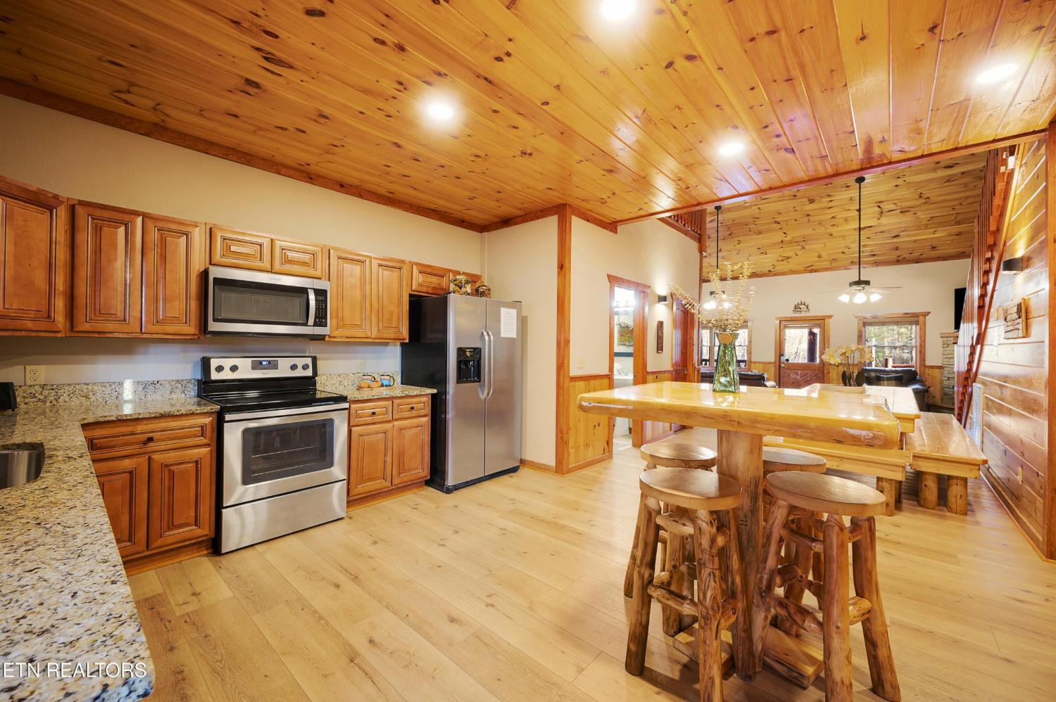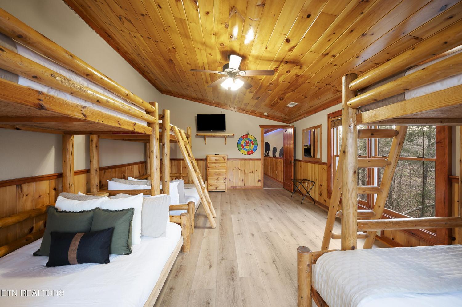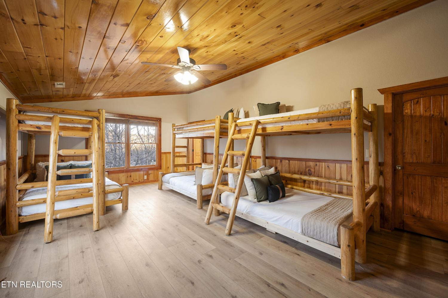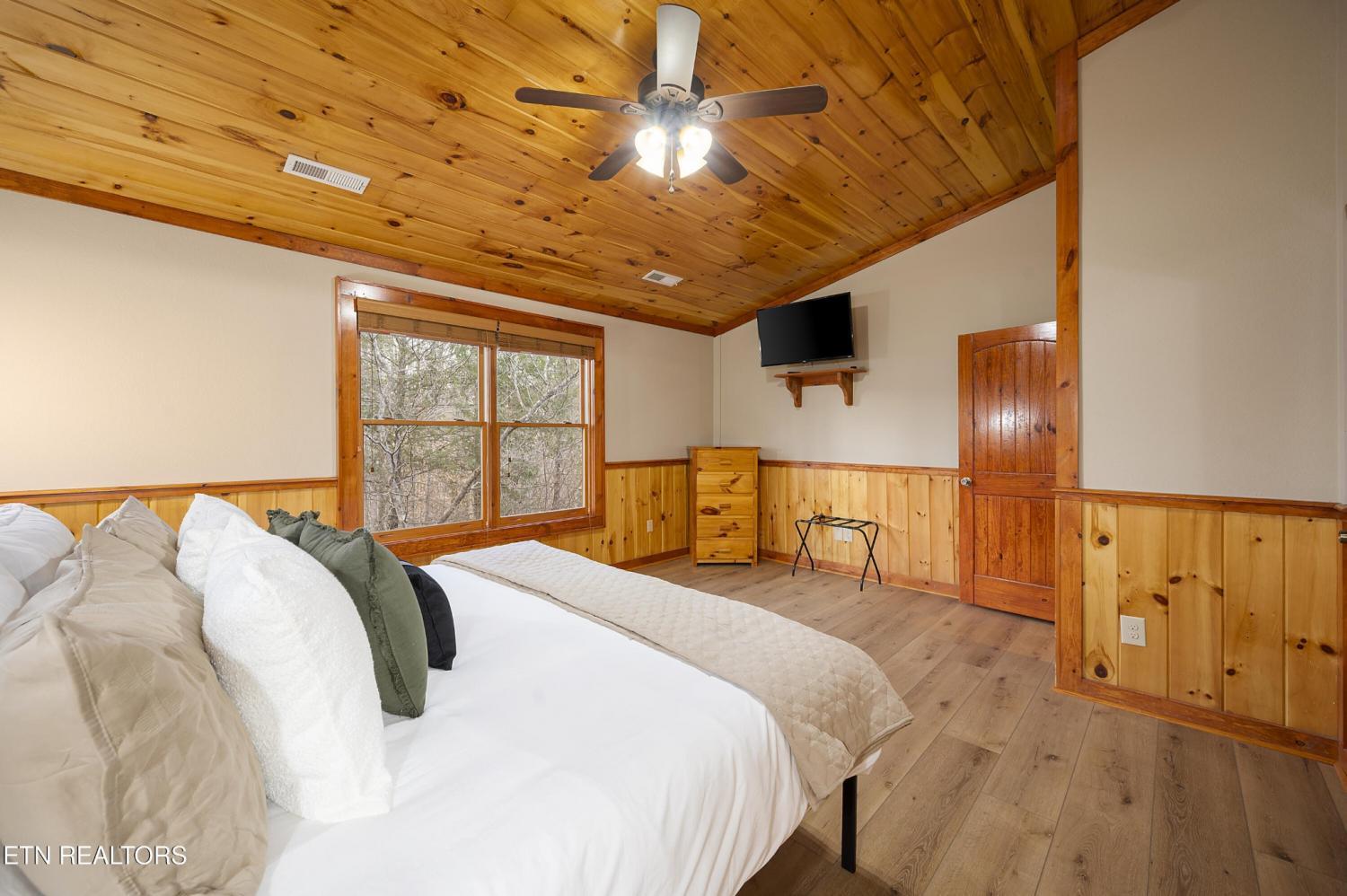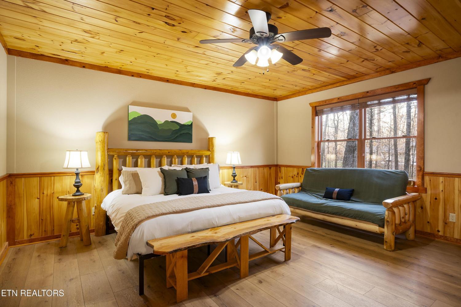 Welcome to your Smoky Mountain retreat in scenic Cosby, Tennessee—just minutes from the Great Smoky Mountains National Park! This impressive 4,400+ sq. ft. cabin has a proven rental history and comfortably sleeps up to 23 guests. With 5 bedrooms—including 5 primary oversized en-suite (all king beds) plus a bunkroom with its own bath—and a convenient half bath off the dining room, this property is designed for large gatherings and strong rental performance. Entertainment and relaxation are endless! The private heated indoor pool, recently remodeled with a new liner, new deck, and updated climate-controlled system (featuring a dehumidifier and mini-split unit), is maintained at 82° year-round. Guests will also love the brand-new hot tub, the updated theater room, and the loft arcade complete with pool table and games. Outdoors, the cabin offers a custom wood-burning fire pit perfect for evenings under the stars, two park-style charcoal grills, a wide front porch, and a spacious covered rear deck with plenty of room to gather. Each bedroom features a Smart TV and private bath for comfort and convenience. Set on a 1.07-acre lot with a level circular driveway and ample parking, this turnkey property has been freshly updated with new flooring, paint throughout, and a custom pool mural. Located just a short drive from Dollywood, Gatlinburg, and all the area's top attractions, this Smoky Mountain lodge is the perfect blend of investment opportunity and family getaway.