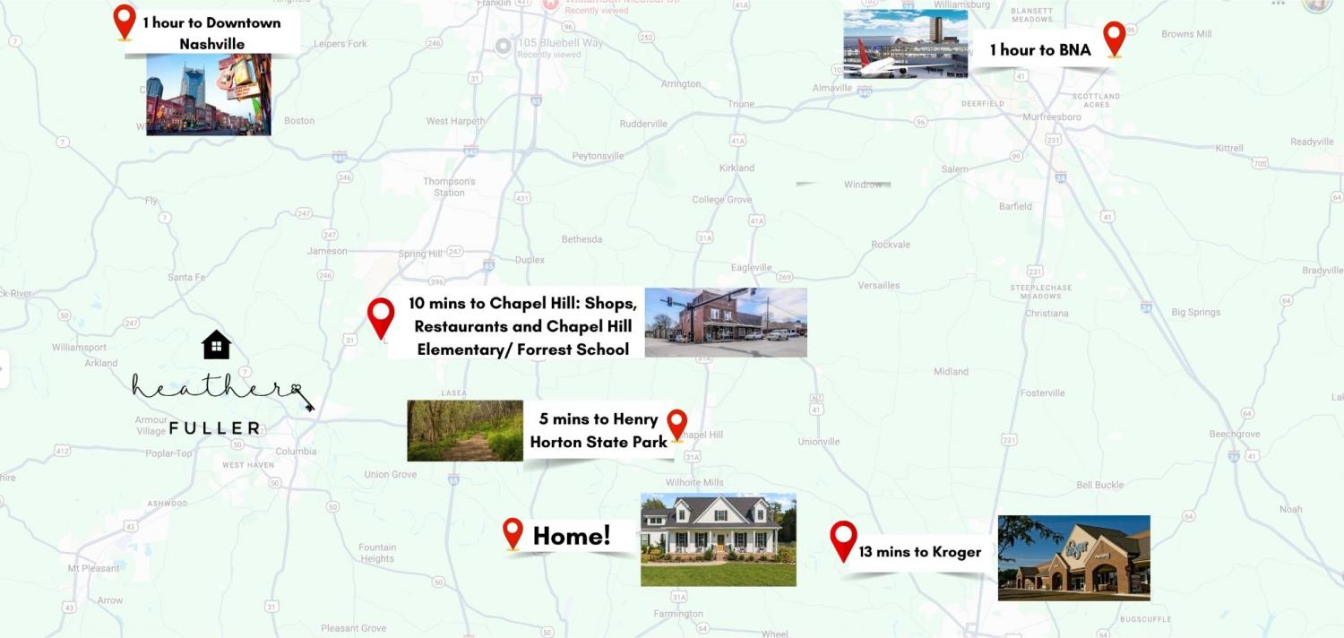 Take I65 - South to exit 46. Turn L onto Hwy 99. Continue until you arrive at Nashville Hwy and then take a right. Pass through Chapel Hill and the home is on the right!
