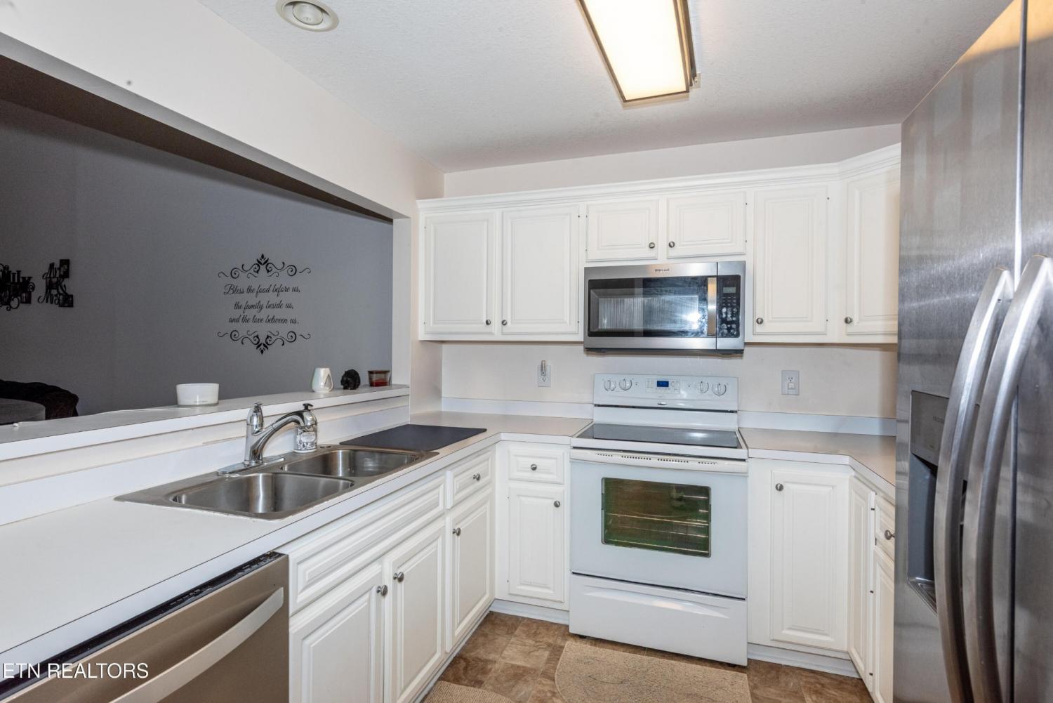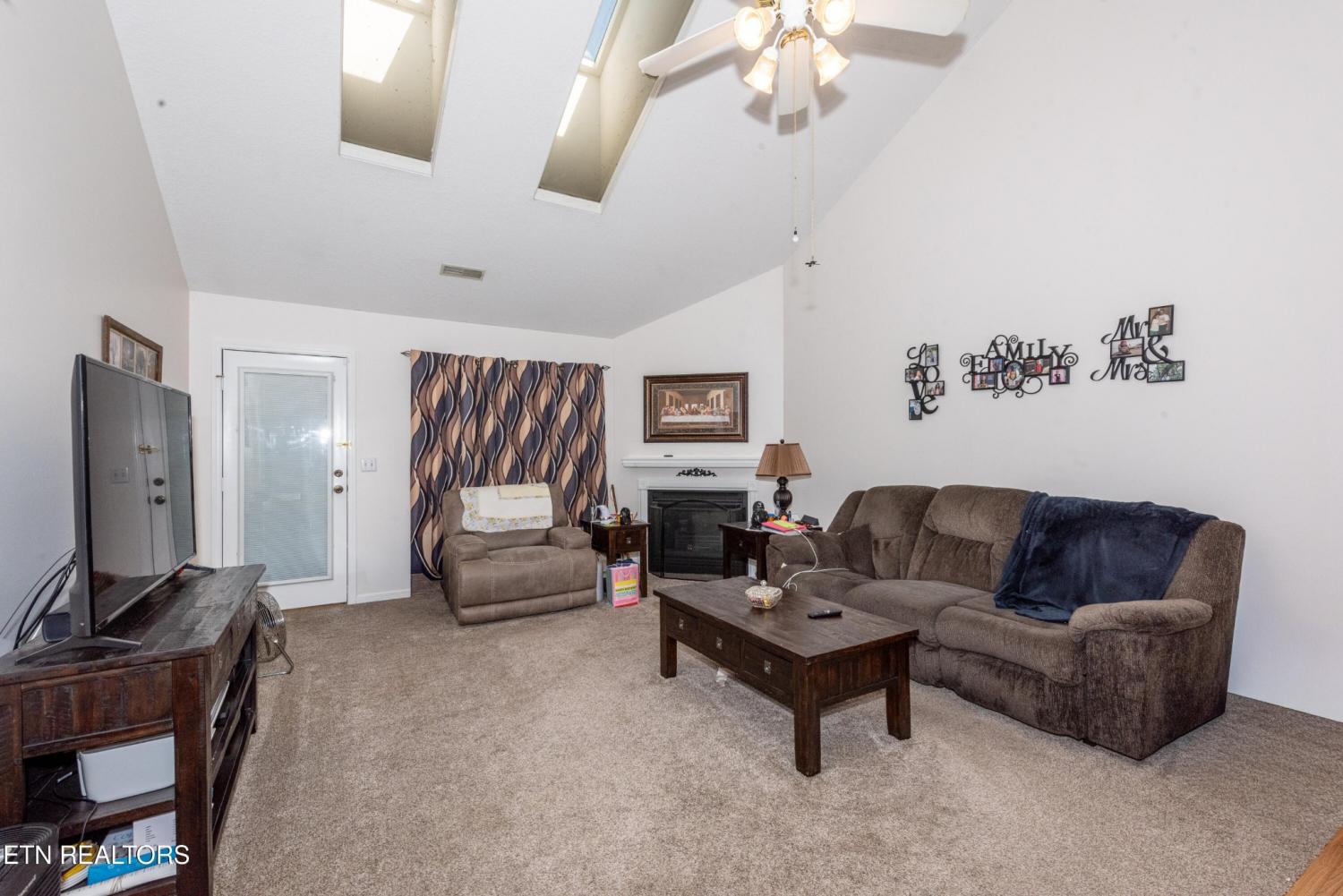 MOTIVATED SELLERS!!!! Convenient Sevier County Living~~2BR/2BA Ranch End Unit with No Steps Close to everything! Just 10 minutes to Dollywood and Splash Country, dining, and entertainment, and only 5 minutes from the hospital. This spacious 2-bedroom, 2-bath ranch-style end unit with no steps is designed for easy living and updated comfort. Step inside to a bright and inviting living room featuring a soaring cathedral ceiling with skylights for tons of natural light, and a cozy electric fireplace (installed 2022). Open floor plan with the kitchen offering plenty of counter space and storage, with a full suite of newer appliances (refrigerator, microwave & dishwasher) including washer and dryer, so you're move-in ready. The primary suite is a true retreat with a deep trey ceiling, ceiling fan, ensuite bath with relaxing soaking tub, separate walk-in shower, double sinks, and a huge walk-in closet. The second generously sized bedroom has its own private access to the second bath in a convenient Jack & Jill layout. Key updates and features include: No steps -- all one-level living Roof (2019) HVAC (2022) Washer & dryer (2019, convey) New carpeting & flooring (2019) New storm door and new window screens 2-car attached garage for easy parking and storage This home offers low-maintenance living in a prime Sevier County location, perfect whether you're downsizing, seeking a second home, or looking for easy living. Schedule your showing today.