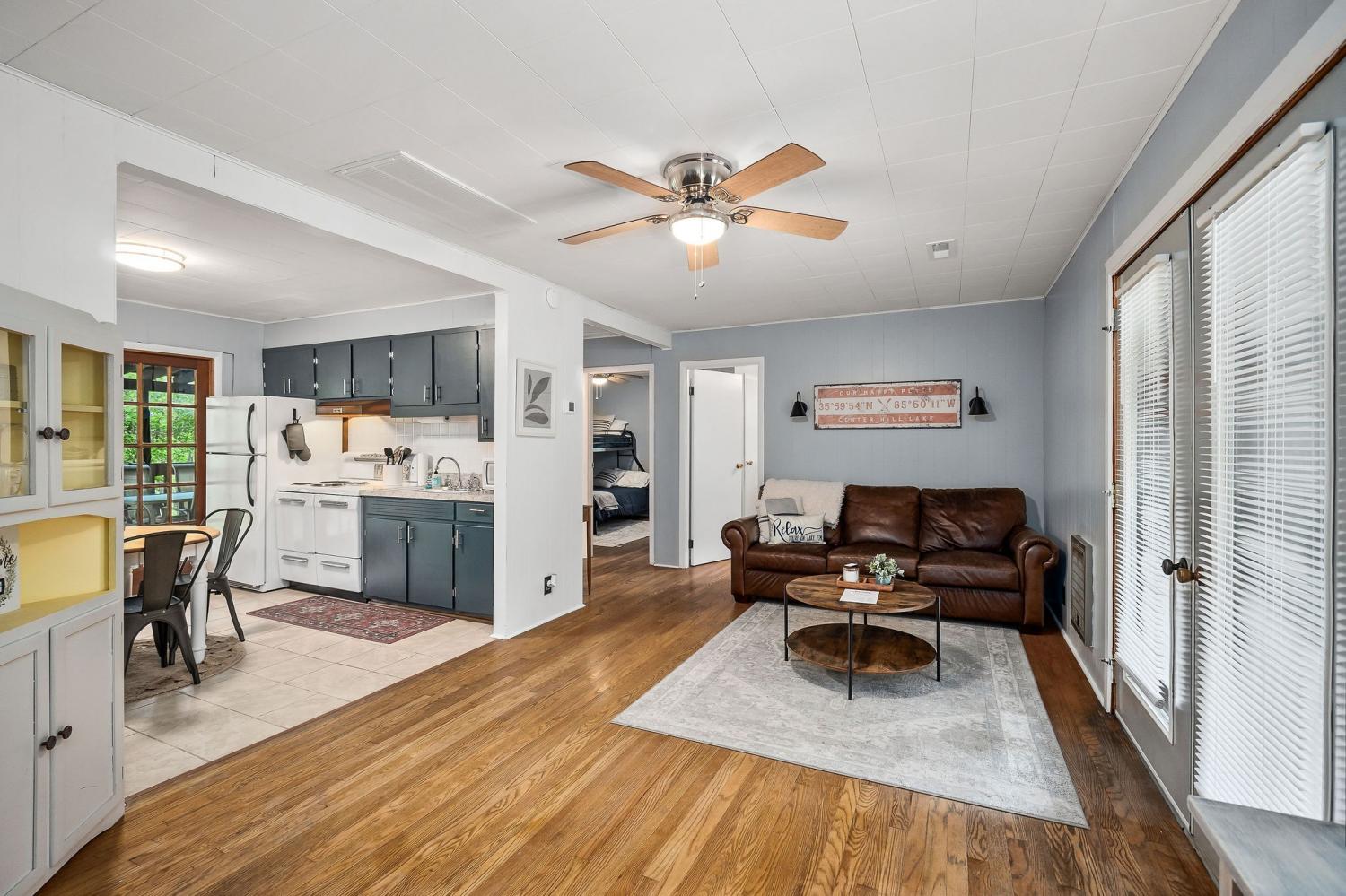 Escape to Center Hill in this charming fully furnished turn-key cottage located just 1 miles from the Holmes Creek boat ramp. This beautifully updated cottage is short-term rental permissible, offering a turn-key investment opportunity or a peaceful personal getaway. Nestled among the trees, this cozy yet spacious home boasts a large covered back deck, ideal for relaxing, entertaining, or soaking in the tranquil surroundings. The inviting covered front porch is perfect for sipping your morning coffee while enjoying the serenity of nature. Inside, you'll find all of the comforts of home, while the garage parking in the basement provides convenient storage for boats, gear, and more. Whether you're looking for an investment property or a private escape near Center Hill Lake, this cottage is a rare find that blends modern updates with rustic charm. Convenient to historic downtown Smithville (10 min) and Hidden Harbor Marina (15 min).