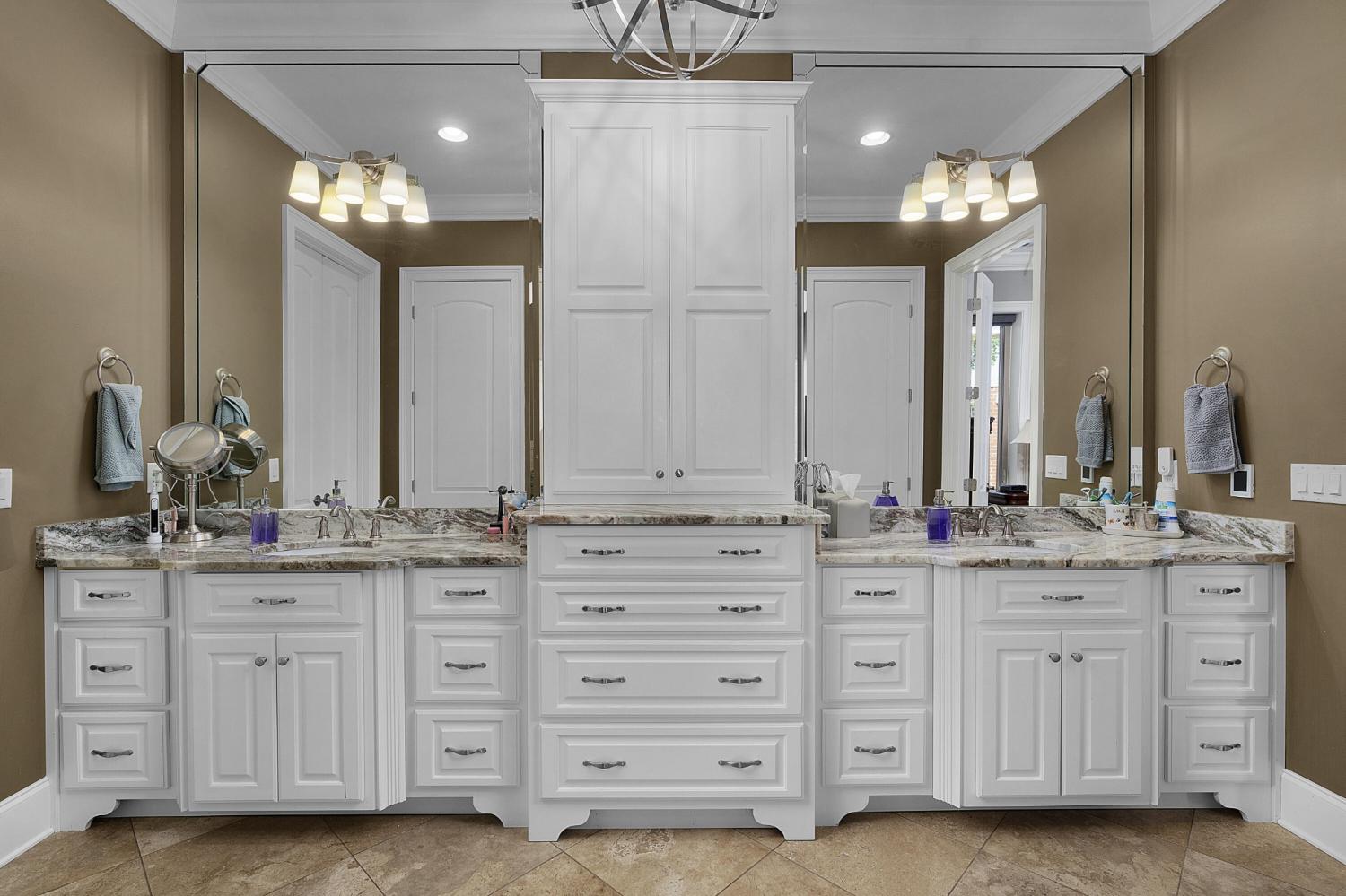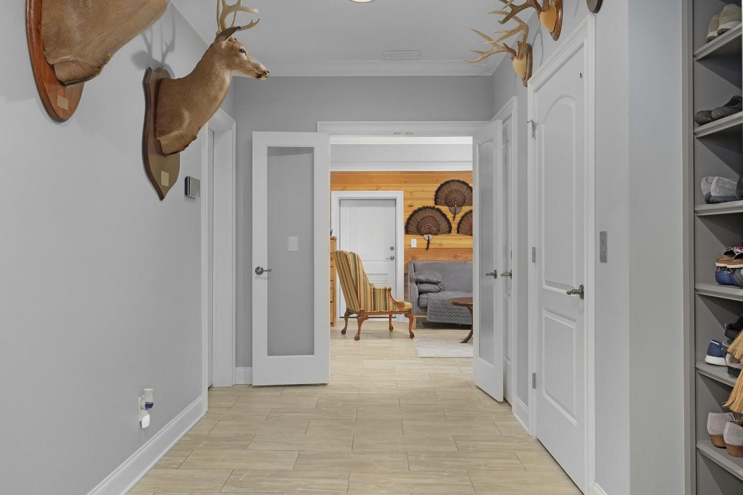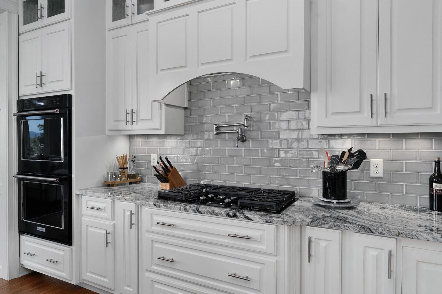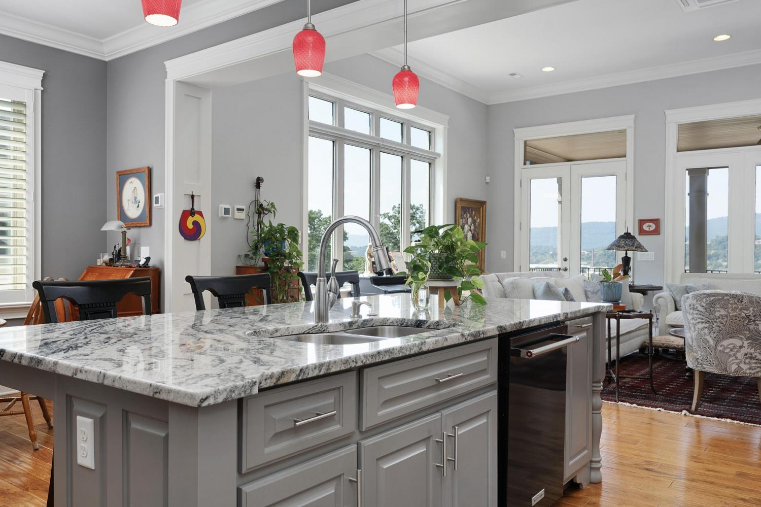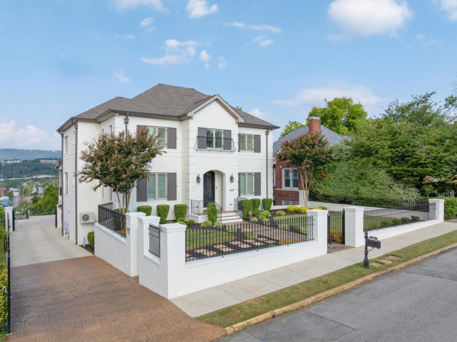 Located in the heart of North Chattanooga with fantastic views, this custom all brick home was built by Waldrep Construction in 2016 and boasts premium finishes, a great layout including an open floor plan, the primary suite plus a guest bedroom on the main, an in-law suite on the lower level, plus an oversized double garage and a single garage with extra storage and a workshop space - a rare find in this area. No detail has been overlooked, and you will love the beautiful moldings, tall ceilings and doors, hardwoods and tile, plantation shutters, recessed and decorative lighting, casement windows, custom cabinetry and closet systems, heated floors and bidet-style toilet seats in the primary and lower-level baths, amazing storage and more. You will also love that there is an elevator servicing all 3 levels, the front yard is beautifully landscaped and fenced, and the rear parking pad and access to the garages is gated. Your tour of this 5 bedroom, 5 bath home begins with the lovely two-story foyer with dramatic metal and glass double doors. The formal dining room is to the left and has access to the kitchen via a hallway with the laundry room on one side and a walk-in pantry on the other. The kitchen is open to the breakfast area and the great room and has a center island with pendant lighting, granite countertops, tile backsplash, under-cabinet lighting, soft close and pull-out drawers, and a 5-burner gas cooktop and convection double wall ovens. The breakfast area has a fanciful light fixture and a built-in desk with cabinetry. The great room is the heart of the home with its generous size, gas fireplace and 2 sets of French doors to the covered balcony allowing for wonderful natural lighting and taking full advantage of the views. The primary bedroom is also on the rear side of the house and has access to the balcony, as well as the primary bath with a dual vanity, a walk-in closet, 2 linen closets and an arched doorway to the free-standing tub, separate shower w