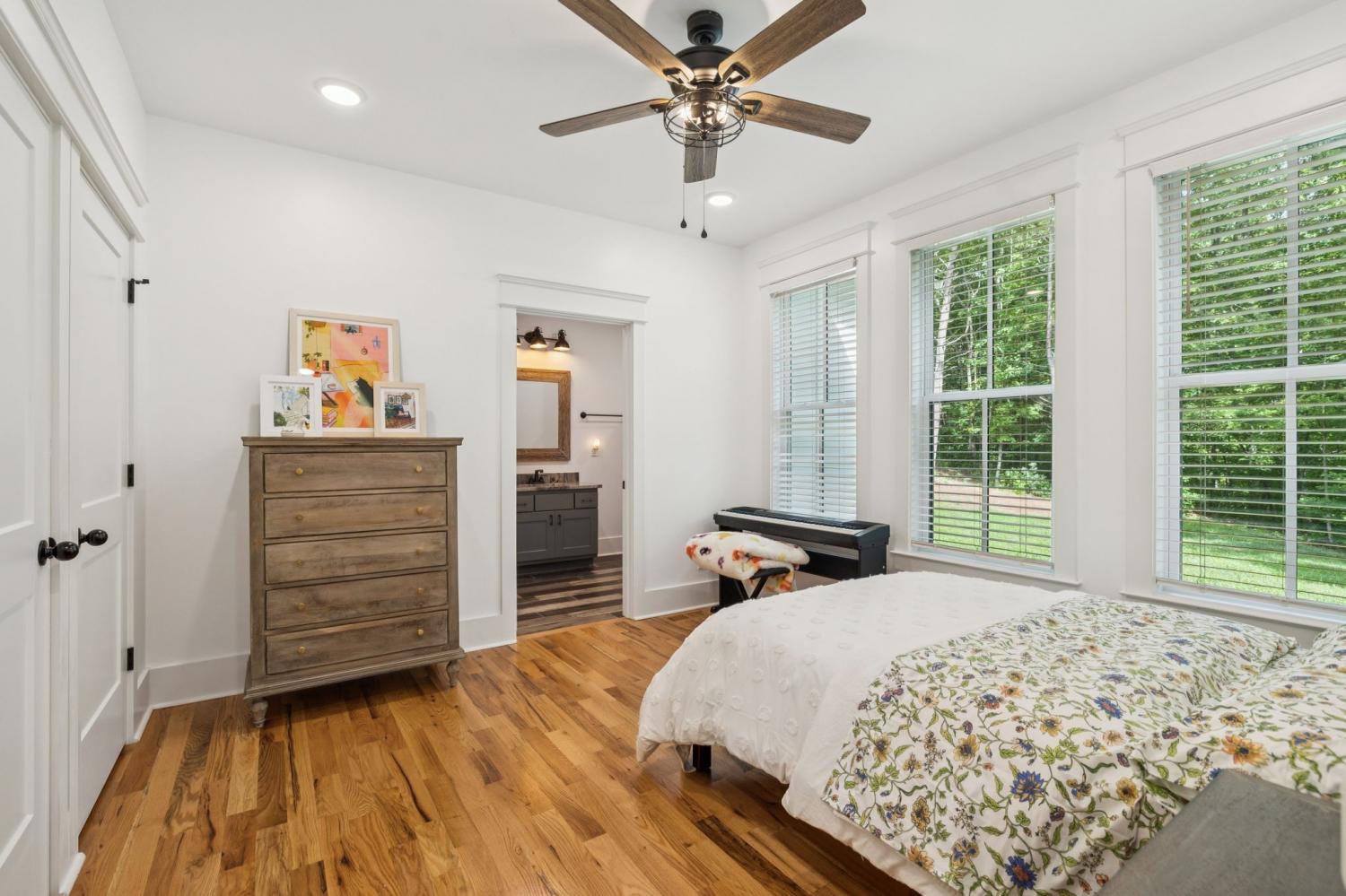 Perched atop a gentle hill with sweeping views of a creek and meadows, this 5-acre estate offers a rare blend of natural beauty and refined living. Mature trees, wildflowers, and starlit nights create a retreat-like setting, while the expansive covered porch provides a front-row seat to nature. This newer custom farmhouse showcases distinction at every turn: 28-ft vaulted blue pine ceilings, red oak hardwoods, a chef’s kitchen with Café double oven, porcelain farmhouse sink, granite counters throughout, custom cabinetry, and two pantries. The primary suite overlooks the backyard with dual walk-ins and a spa-like shower; additional ensuite bedrooms offer comfort and the most beautiful views. Full-size laundry/mudroom, screened front porch, tankless water heater and whole-home water filtration. An oversized parking pad accommodates multiple vehicles, RV, or boat and provides the perfect foundation for a future custom garage or workshop. This home delivers the highest level craftsmanship, plus acreage, a creek, a rare opportunity in Williamson County. You can live in luxury in a sanctuary setting, yet 5 minutes to all the schools, Publix, Bowie Nature Park and only 25 minutes to Nashville and Franklin and 21 minutes to Leipers Fork. All a rare find in Williamson County.