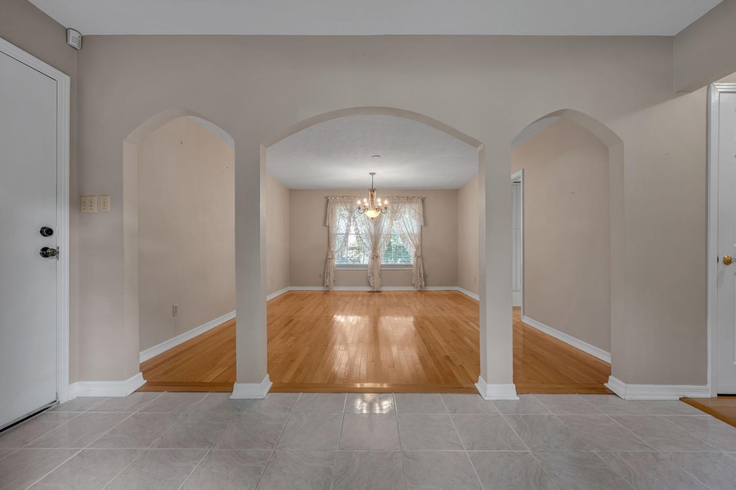 This stunning home is conveniently located near the interstate. This beautifully maintained property features elegant hardwood and tile flooring throughout. A spacious dining room/den and a cozy family room with a fireplace. Enjoy entertaining and cooking in the updated bright cheery kitchen too! Additional highlights include a storage building equipped with electricity and heat, plus an overside garage. You'll love the spacious deck for Fall gatherings.
