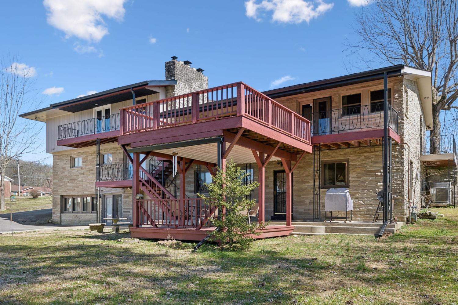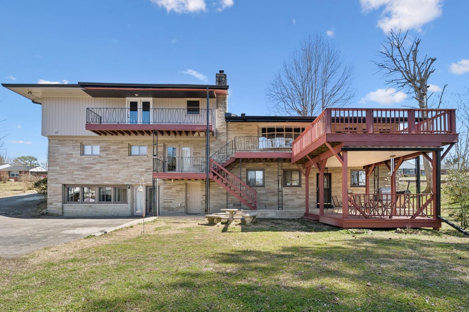OPEN HOUSE 9/27 11AM-1PM! Great Deal! Private Downstairs Suite w/ rental income potential. All the amenities you have been searching for in town w/ a 2 car garage/shop. This home offers incredible versatility—additional bedrooms can easily be used as home offices, craft rooms, or study spaces to fit your lifestyle. You will find inviting spaces enhanced by three fireplaces, multiple gathering areas, and a beautifully appointed main kitchen featuring granite countertops, an electric cooktop, and built-in double ovens. French doors off the primary ensuite lead to a private covered deck, creating a peaceful retreat , which also features a cedar-lined closet and both a walk-in shower and soaking tub. The walk-out basement offers independent living potential with its own kitchen, living area, bedroom, and private bath—ideal for guests, rental income, or multi-generational use. Enjoy outdoor living with a spacious four-level deck, complete with covered areas for year-round enjoyment. The detached two-car garage/shop includes 110V electric, perfect for a workshop or hobby space. Recent upgrades include a new roof, new gutters with guards, new water heater, and Pella double-hung windows in the front (installed in 2018). All appliances remain, including washer and dryer, with additional laundry hookups available in the basement. Ideally located within walking distance to Carthage Elementary and Smith County High School, and just minutes to the Cumberland River, Center Hill Lake, and Cordell Hull Lake, this home is a rare find with so much to offer.