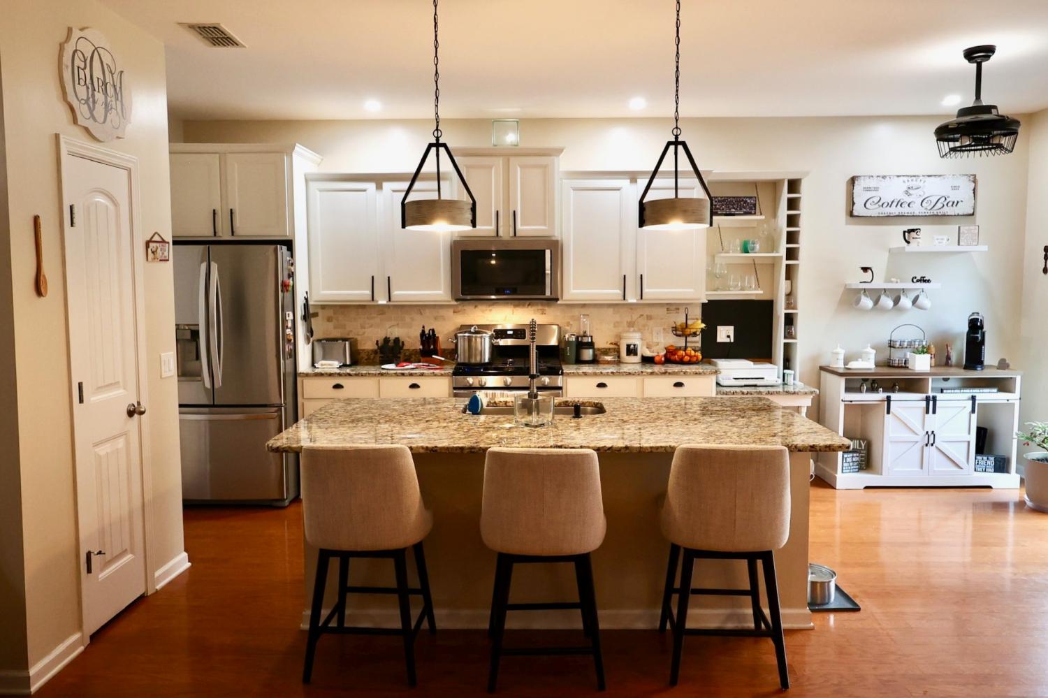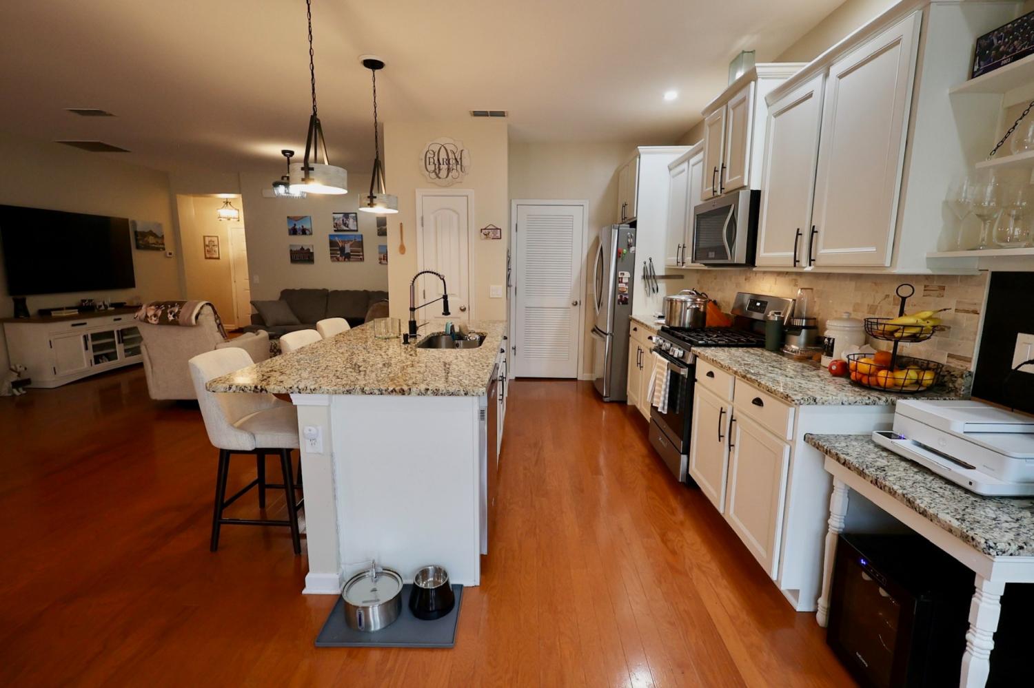 Welcome to the highly sought-after Villages of Riverwood—a vibrant, walkable community in Hermitage, TN, known for its friendly atmosphere, beautiful landscaping, and top-tier amenities including a community pool, fitness center, and clubhouse. This beautifully maintained 3-bedroom, 2-bath home features a spacious open floor. As you enter, you're greeted by a cozy living room, an inviting dining area, and a light-filled kitchen complete with white cabinetry, granite countertops, a large center island with bar seating, new gas stove, and stainless-steel appliances—perfect for both casual meals and entertaining guests. The primary suite has a walk-in closet with its own bathroom suite, while the secondary bedrooms provide flexibility for family, guests, or a home office. Out back you have a nice patio and a newly landscaped backyard. The garage is also newly coated in epoxy flooring with a newly cut in pull down ladder to the attic. A great area for extra storage. With fresh paint on the ceilings and walls, move-in-ready condition, and all the benefits of a low-maintenance lifestyle in a well-kept community, this home is a true gem. Conveniently located near I-40, the airport, shopping, dining, and all the best that Hermitage and Mt. Juliet have to offer—this home combines comfort, location, and lifestyle. Don’t miss your chance to own in one of Hermitage’s most desirable neighborhoods!