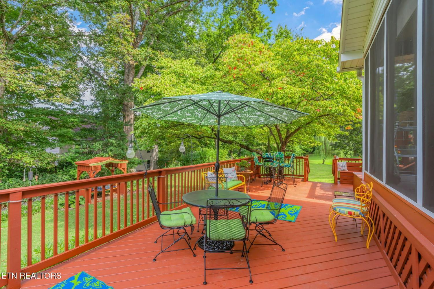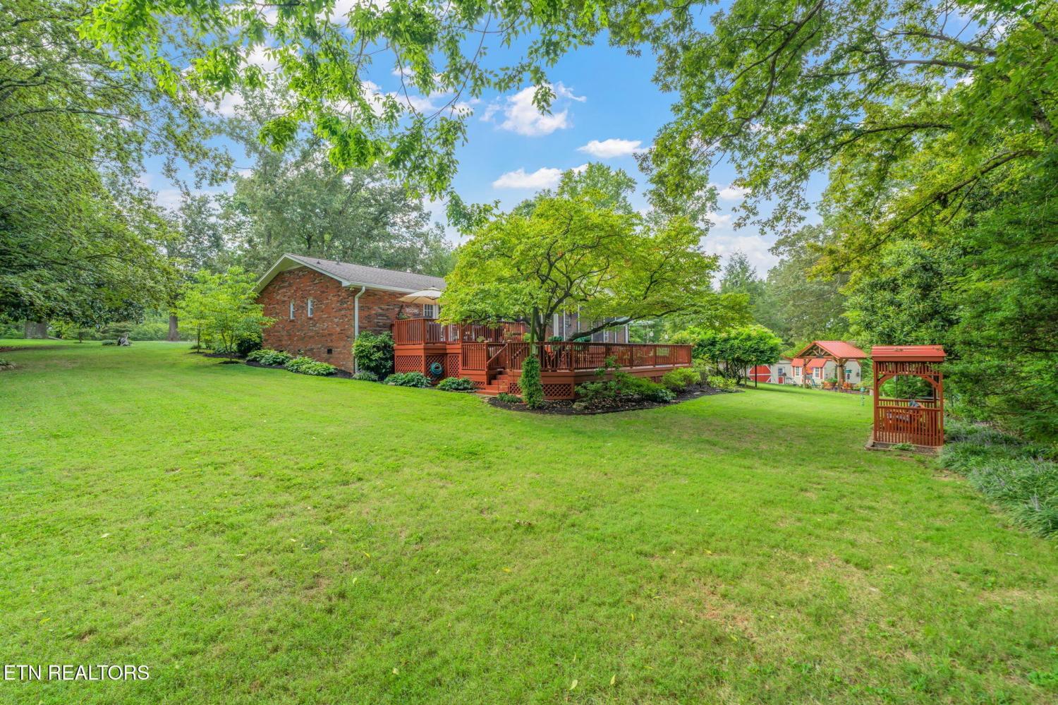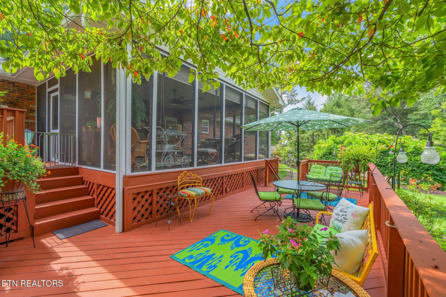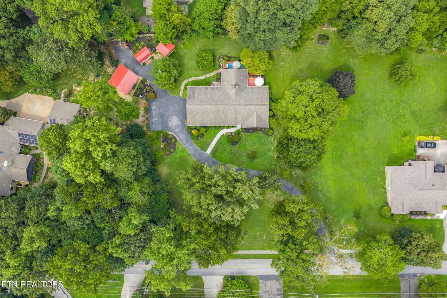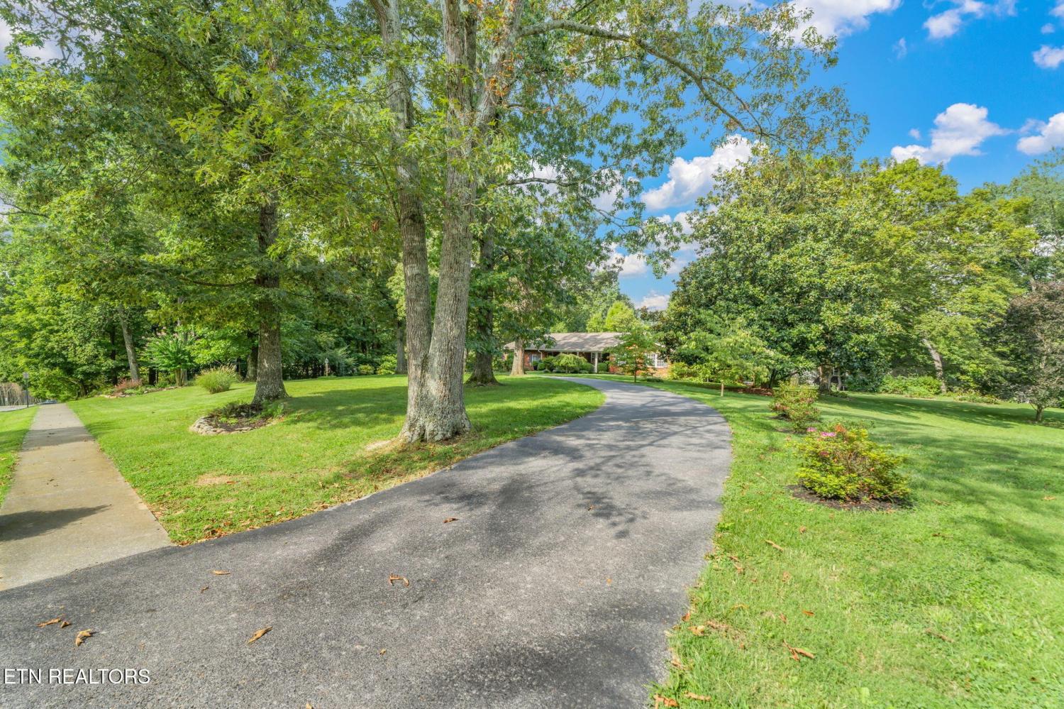 GREAT OPPORTUNITY TO PURCHASE IN THE HEART OF FARRAGUT. Amazing brick rancher sitting on 1.27 acres of manicured lawn with extensive landscaping and no HOA. Sits off the road with a long winding paved driveway. Features include a covered front porch with a slate entry way, Brazilian Cherry hardwoods throughout, crown molding throughout, chair railing, plantation shutters. Formal living area open to formal dining area. Kitchen features quartz countertops, tile backsplash, recessed lighting, undercounter lighting, gas range, convection oven, abundance of cabinetry, large drawers. Kitchen has bar area with seating and is open to the cozy den with a stack stone gas fireplace. Doorway leads to a large screened porch, then to 2 others large decks accessible to the master. This peaceful outdoor living overlooks the meticulous lawn, trees, shrubberies, flowers, garden area, swing, and a 12X10 pavilion. Back inside features an updated master and 2 other bedrooms, both bathrooms have been updated as well. Outside you will also find a 2 car side entry garage that includes a nice office with extra storage, going inside from the garage is a large laundry with a sink and lots of deep cabinet storage space. A 20X20 barn was previously added and has power and water, property also features a storage building. All the space has been used wisely on this 1.27 acres and creates privacy as well. This home has many updates throughout from the current owner and has been well cared for over the years. It makes a great place for people to gather and easy to entertain. Walking distance to Farragut Middle and High School with direct access from the neighborhood.. This is a must see!