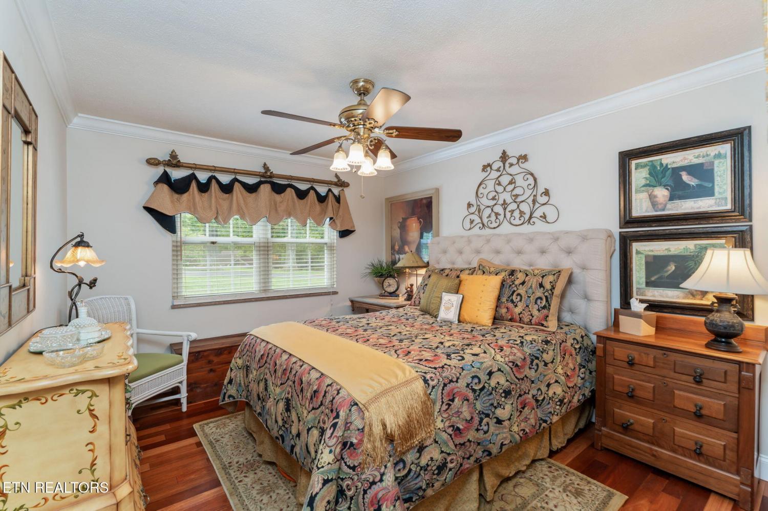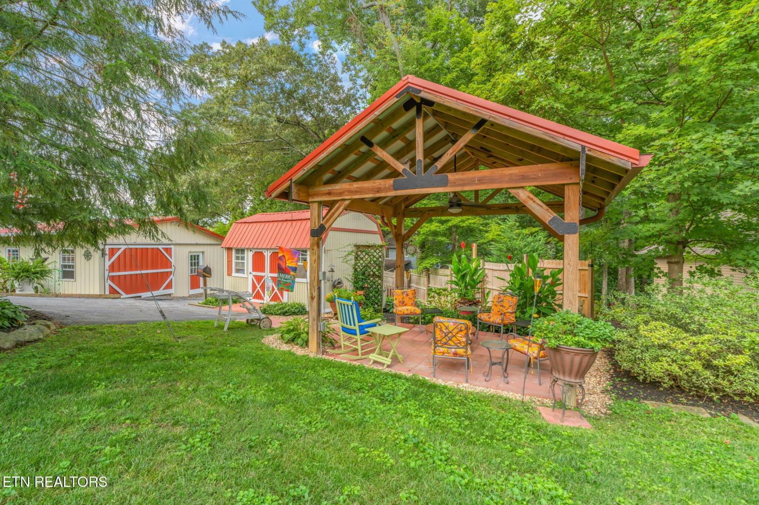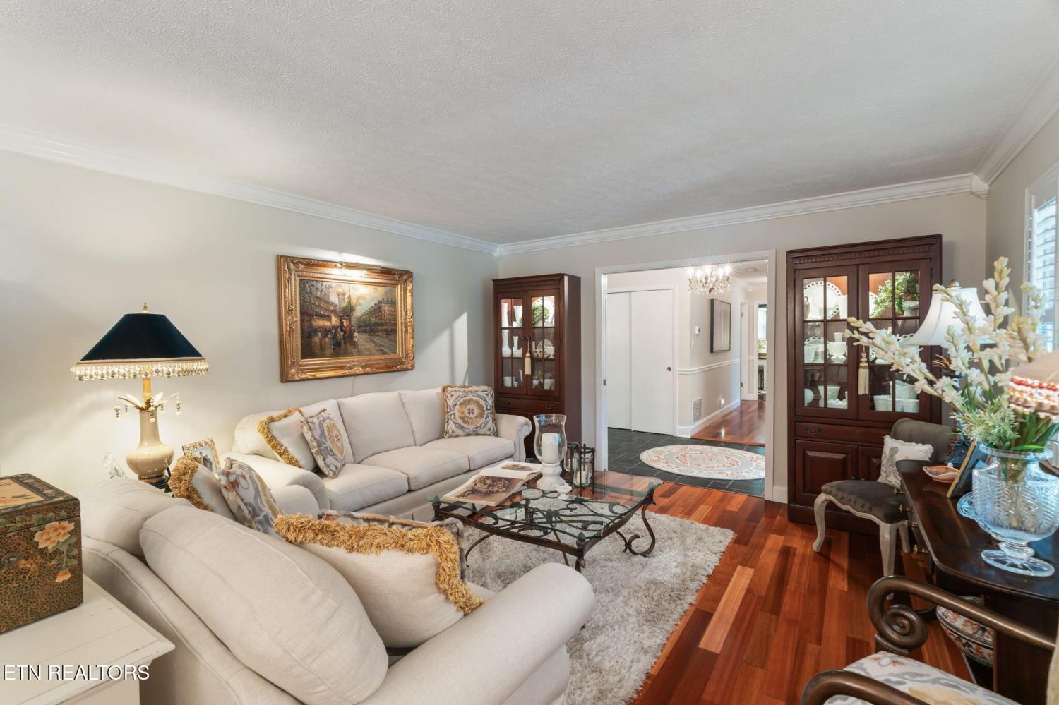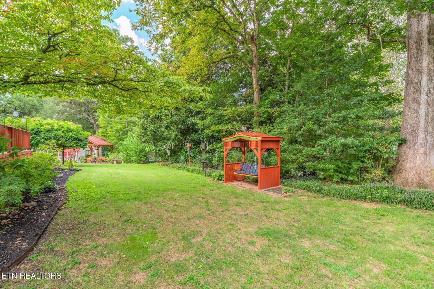 GREAT OPPORTUNITY TO PURCHASE IN THE HEART OF FARRAGUT. Amazing brick rancher sitting on 1.27 acres of manicured lawn with extensive landscaping and no HOA. Sits off the road with a long winding paved driveway. Features include a covered front porch with a slate entry way, Brazilian Cherry hardwoods throughout, crown molding throughout, chair railing, plantation shutters. Formal living area open to formal dining area. Kitchen features quartz countertops, tile backsplash, recessed lighting, undercounter lighting, gas range, convection oven, abundance of cabinetry, large drawers. Kitchen has bar area with seating and is open to the cozy den with a stack stone gas fireplace. Doorway leads to a large screened porch, then to 2 others large decks accessible to the master. This peaceful outdoor living overlooks the meticulous lawn, trees, shrubberies, flowers, garden area, swing, and a 12X10 pavilion. Back inside features an updated master and 2 other bedrooms, both bathrooms have been updated as well. Outside you will also find a 2 car side entry garage that includes a nice office with extra storage, going inside from the garage is a large laundry with a sink and lots of deep cabinet storage space. A 20X20 barn was previously added and has power and water, property also features a storage building. All the space has been used wisely on this 1.27 acres and creates privacy as well. This home has many updates throughout from the current owner and has been well cared for over the years. It makes a great place for people to gather and easy to entertain. Walking distance to Farragut Middle and High School with direct access from the neighborhood.. This is a must see!