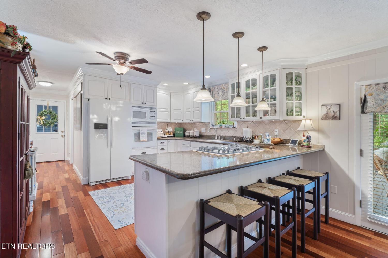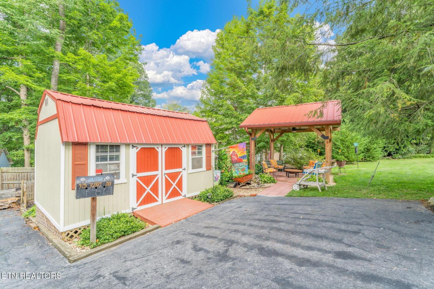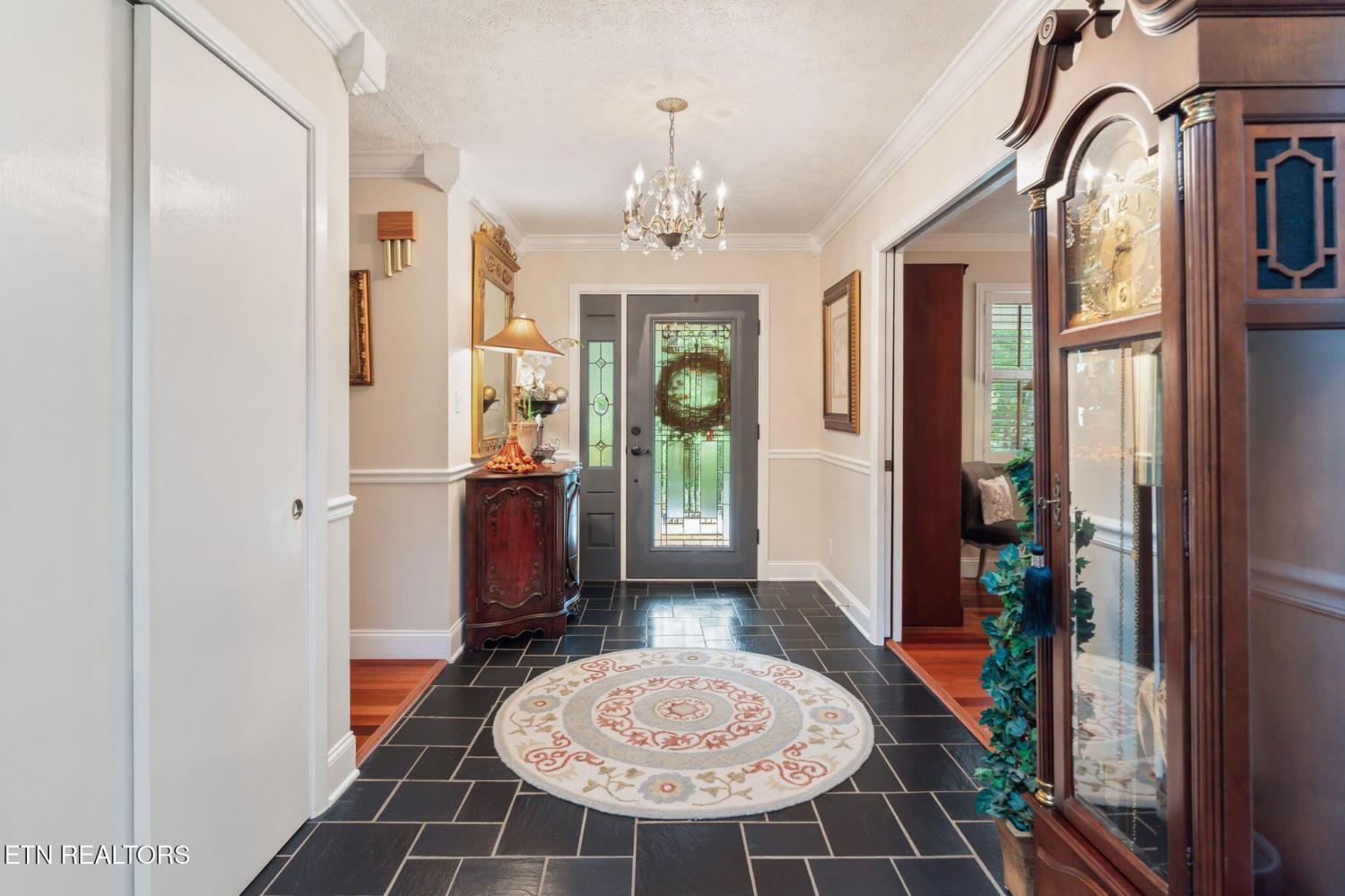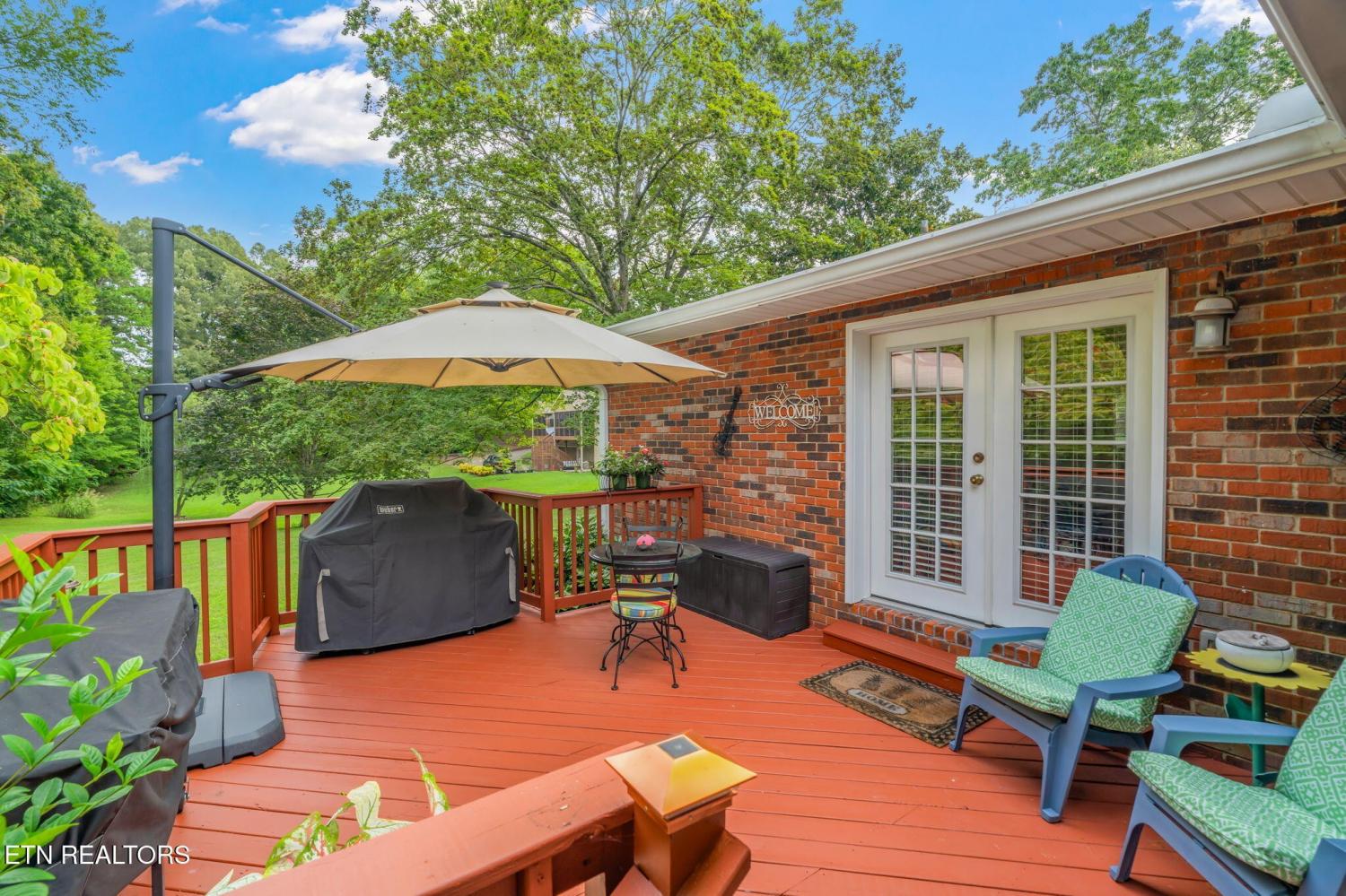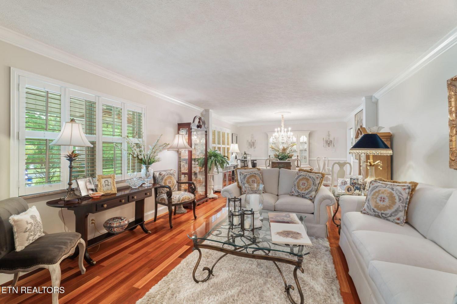 GREAT OPPORTUNITY TO PURCHASE IN THE HEART OF FARRAGUT. Amazing brick rancher sitting on 1.27 acres of manicured lawn with extensive landscaping and no HOA. Sits off the road with a long winding paved driveway. Features include a covered front porch with a slate entry way, Brazilian Cherry hardwoods throughout, crown molding throughout, chair railing, plantation shutters. Formal living area open to formal dining area. Kitchen features quartz countertops, tile backsplash, recessed lighting, undercounter lighting, gas range, convection oven, abundance of cabinetry, large drawers. Kitchen has bar area with seating and is open to the cozy den with a stack stone gas fireplace. Doorway leads to a large screened porch, then to 2 others large decks accessible to the master. This peaceful outdoor living overlooks the meticulous lawn, trees, shrubberies, flowers, garden area, swing, and a 12X10 pavilion. Back inside features an updated master and 2 other bedrooms, both bathrooms have been updated as well. Outside you will also find a 2 car side entry garage that includes a nice office with extra storage, going inside from the garage is a large laundry with a sink and lots of deep cabinet storage space. A 20X20 barn was previously added and has power and water, property also features a storage building. All the space has been used wisely on this 1.27 acres and creates privacy as well. This home has many updates throughout from the current owner and has been well cared for over the years. It makes a great place for people to gather and easy to entertain. Walking distance to Farragut Middle and High School with direct access from the neighborhood.. This is a must see!
