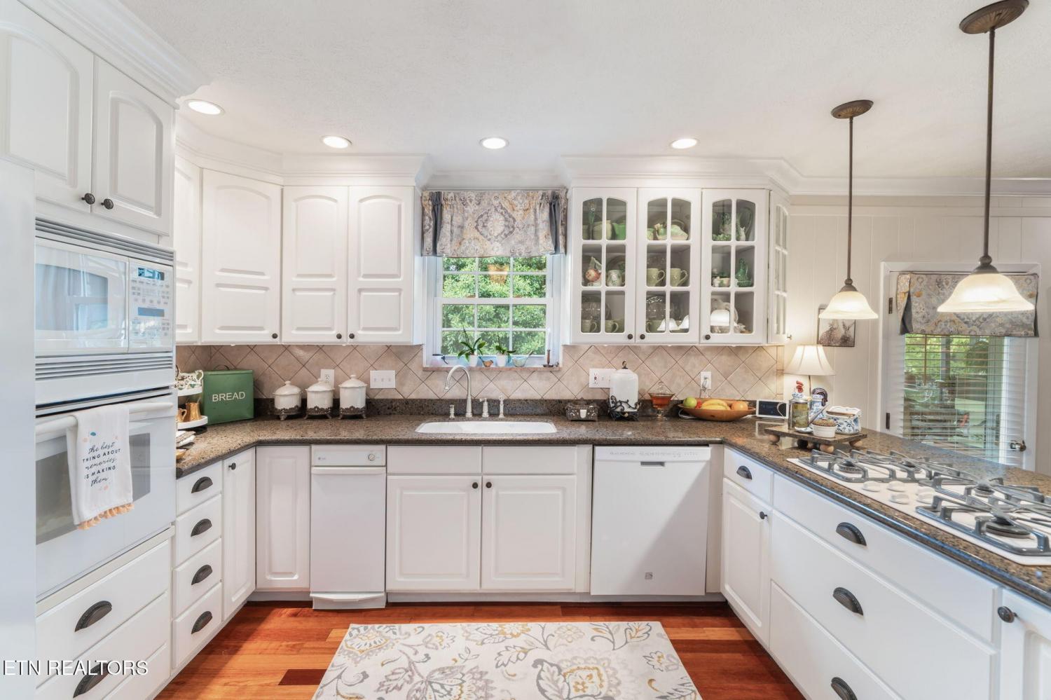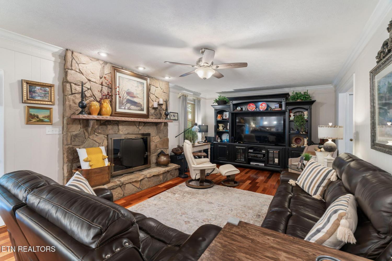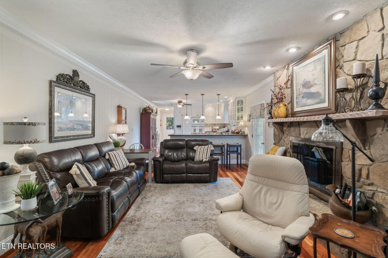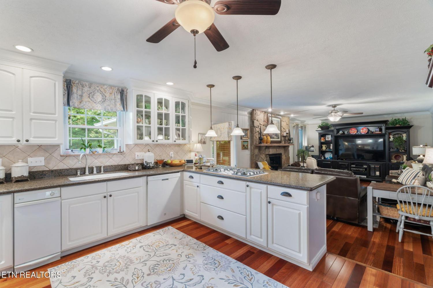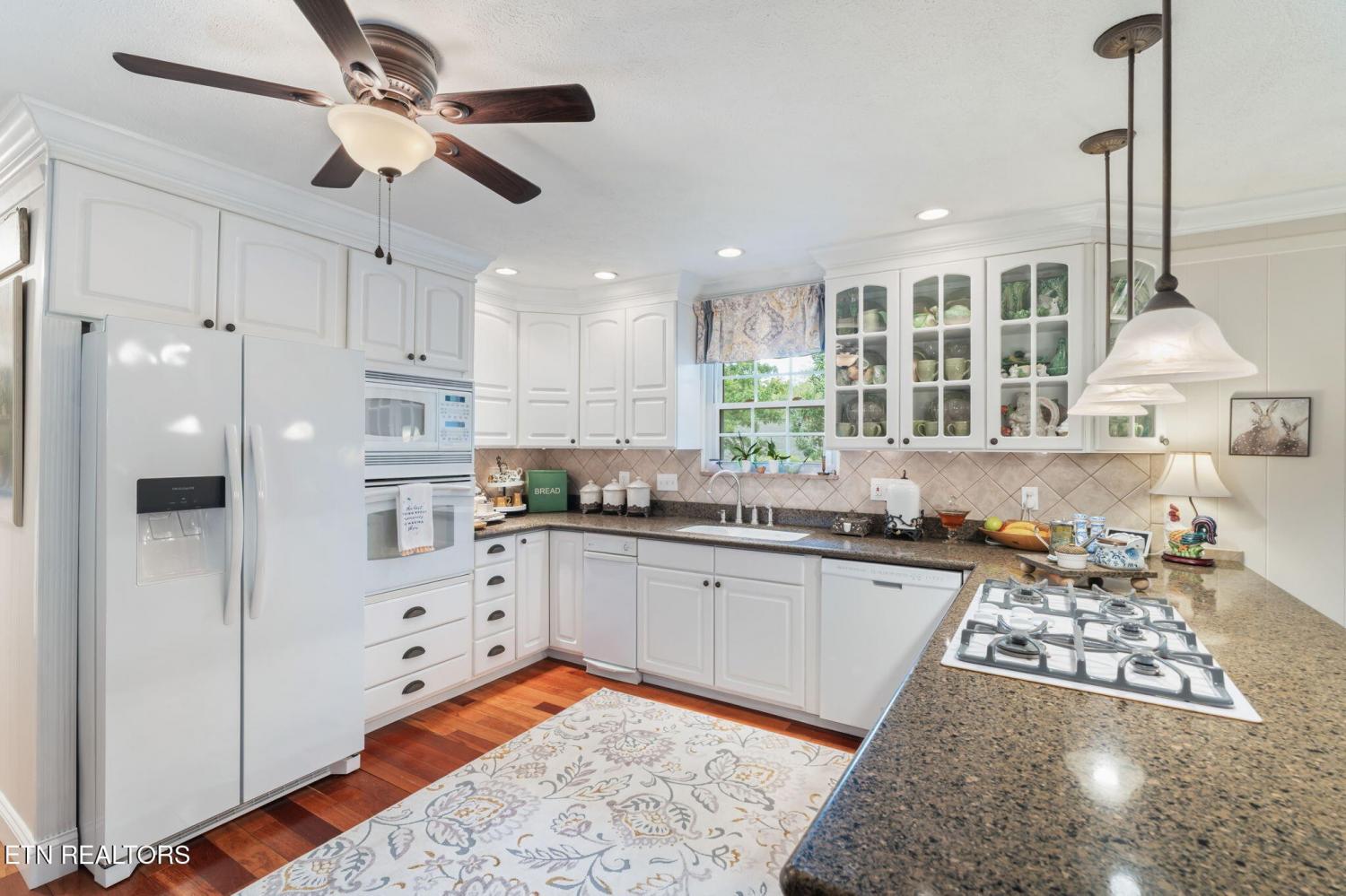 GREAT OPPORTUNITY TO PURCHASE IN THE HEART OF FARRAGUT. Amazing brick rancher sitting on 1.27 acres of manicured lawn with extensive landscaping and no HOA. Sits off the road with a long winding paved driveway. Features include a covered front porch with a slate entry way, Brazilian Cherry hardwoods throughout, crown molding throughout, chair railing, plantation shutters. Formal living area open to formal dining area. Kitchen features quartz countertops, tile backsplash, recessed lighting, undercounter lighting, gas range, convection oven, abundance of cabinetry, large drawers. Kitchen has bar area with seating and is open to the cozy den with a stack stone gas fireplace. Doorway leads to a large screened porch, then to 2 others large decks accessible to the master. This peaceful outdoor living overlooks the meticulous lawn, trees, shrubberies, flowers, garden area, swing, and a 12X10 pavilion. Back inside features an updated master and 2 other bedrooms, both bathrooms have been updated as well. Outside you will also find a 2 car side entry garage that includes a nice office with extra storage, going inside from the garage is a large laundry with a sink and lots of deep cabinet storage space. A 20X20 barn was previously added and has power and water, property also features a storage building. All the space has been used wisely on this 1.27 acres and creates privacy as well. This home has many updates throughout from the current owner and has been well cared for over the years. It makes a great place for people to gather and easy to entertain. Walking distance to Farragut Middle and High School with direct access from the neighborhood.. This is a must see!