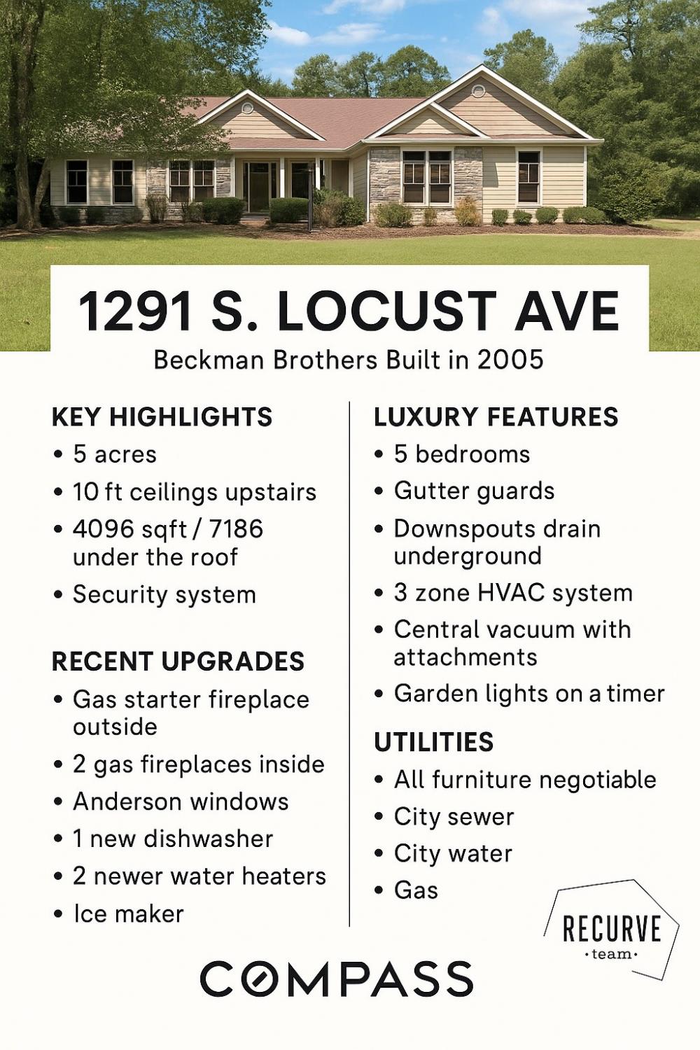 * Price reduction. Bring us an offer. Stunning 5-Bedroom Home on 5 Acres in Prime Lawrenceburg Location Discover this exceptional property featuring 5 bedrooms (or 4 bedrooms plus an office) and 3 full bathrooms, perfectly situated on 5 private acres in the heart of Lawrenceburg. Just minutes from top retail shops and all the conveniences of downtown Lawrenceburg, this home offers the best of both worlds — prime location and peaceful privacy. Built in 2005 by Beckman Builders, this custom-designed home embodies the timeless quality of true craftsmanship — “they don’t build them like they used to.” Key Features: Custom Anderson windows bringing in abundant natural light - In-home wired sound system for seamless entertainment - 10-ft ceilings on the main floor & 9-ft ceilings in the walkout basement - Thoughtfully designed extra storage spaces often overlooked in modern builds - Two cozy gas fireplaces indoors plus a beautiful stone outdoor fireplace — perfect for cool evenings on the patio - This property is ideal for those who value space, privacy, and quality construction while still being close to everything. Schedule a private showing today and come experience this incredible home for yourself. We’re open to discussions — bring us an offer! For more details, please see the attached “Home Information” document.