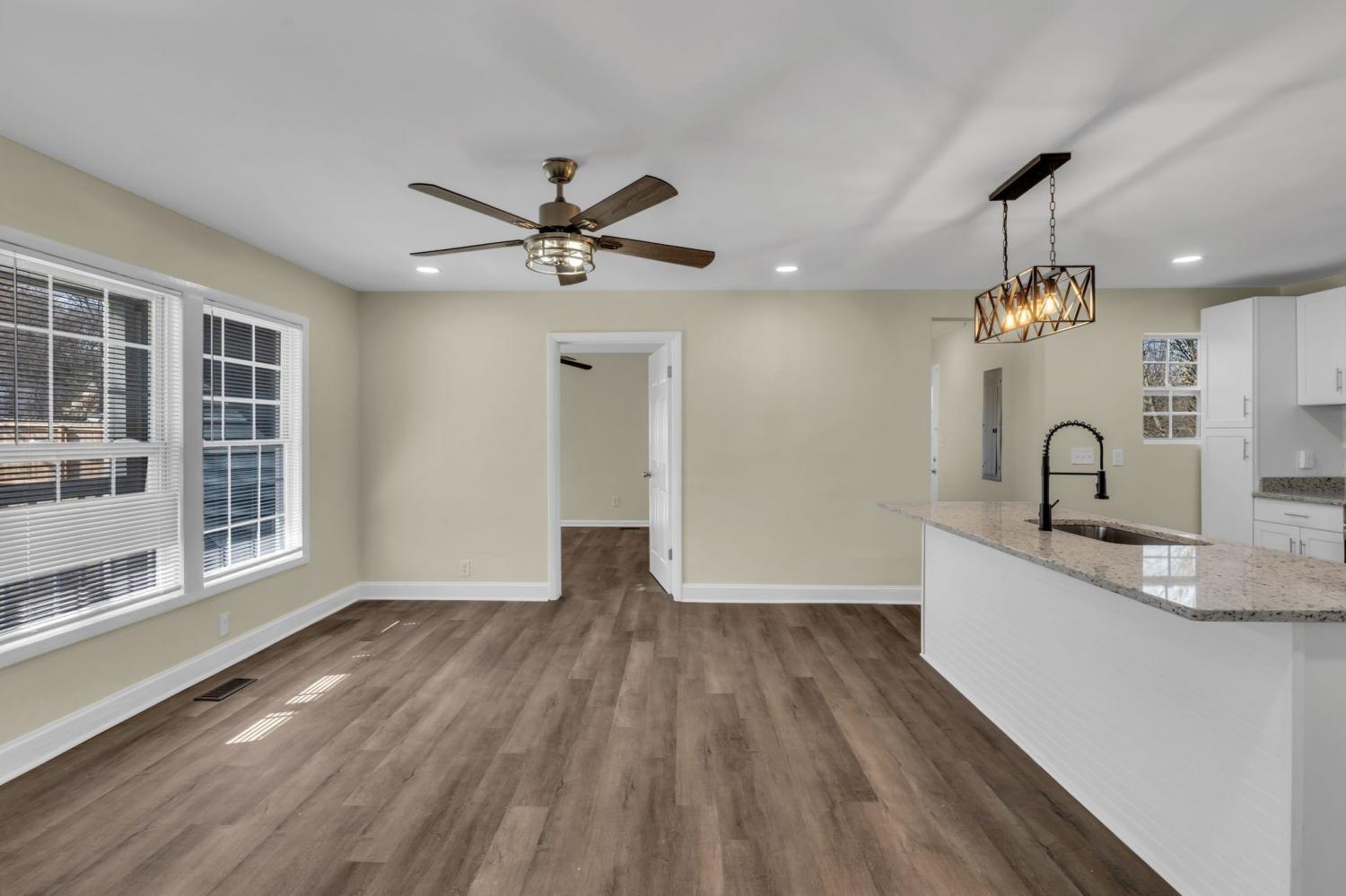 Beautiful home on a quiet street in a non-HOA family friendly subdivision, Brand New Concrete Driveway with a large lot and fully fenced in backyard. 4 year old Roof and Windows with an attached sunroom that comes off a multipurpose bonus room/den that could be used as a fourth bedroom, Office or playroom. Newwer HVAC, New exterior and interior paint with new LVP flooring throughout the home. Tiled master shower with double vanity sinks in master bath, and tile floors in both bathrooms. Walk-in closet in master, ceiling fans in all three bedrooms and recessed lighting throughout the home. Open floor plan with large kitchen island, granite countertops, stainless steel appliances and New LG WASHER AND DRYER. Laundry room with a lot of interior and exterior storage. Dust till Dawn floodlights on both front corners of the home with covered front porch.