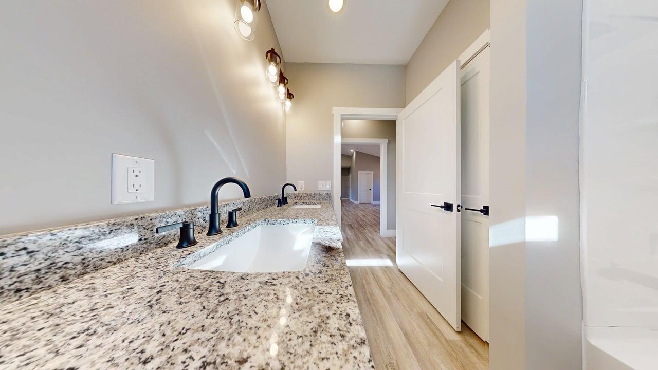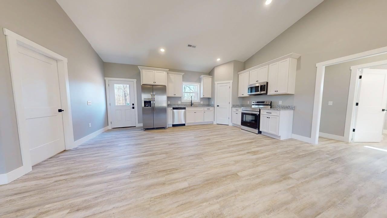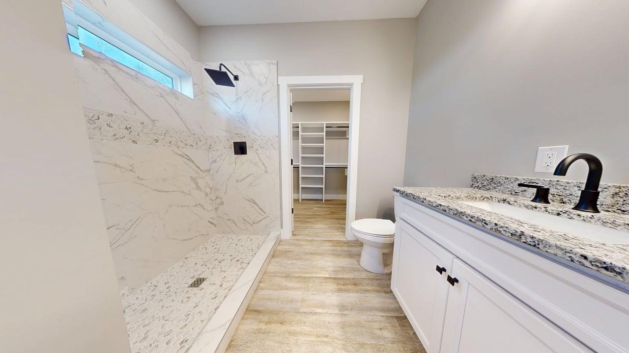 Welcome to your dream home! This beautifully designed 3-bedroom, 2-bathroom residence sits on a spacious 1-acre lot, offering a perfect blend of modern luxury and natural serenity. The home features elegant granite countertops in the kitchen, adding a touch of sophistication to the open-concept living space. With 415 sq ft of open front porch to enjoy the sunsets and outdoors This property showcases high-quality finishes, including a stylish tiled bathroom with marble walls and a contemporary front door with glass panels. The exterior boasts a charming stone accent and metal siding, complemented by a covered porch ideal for enjoying the surrounding wooded landscape. Inside, the home includes ample cabinetry and a well-planned layout, perfect for family living or entertaining guests.