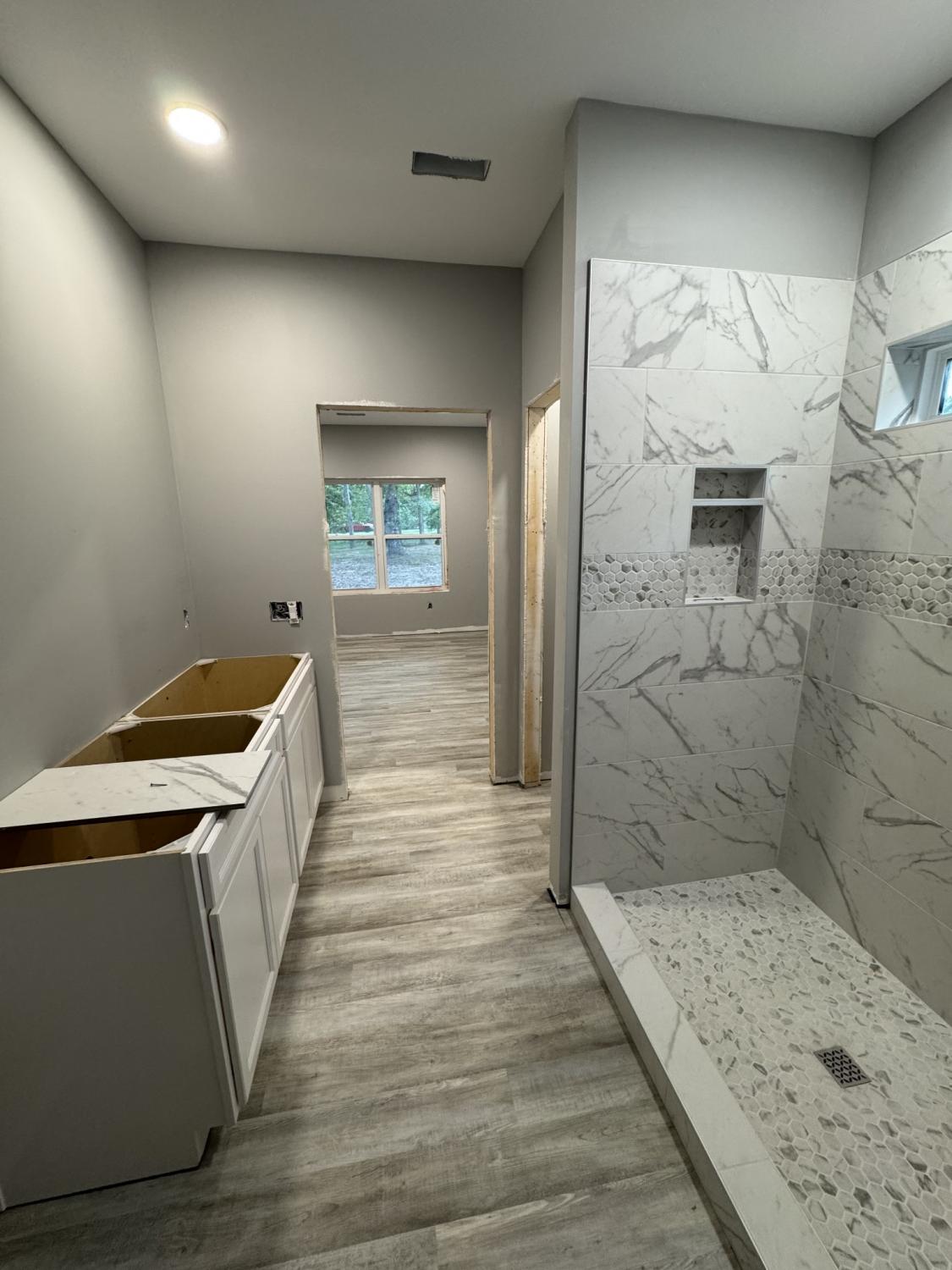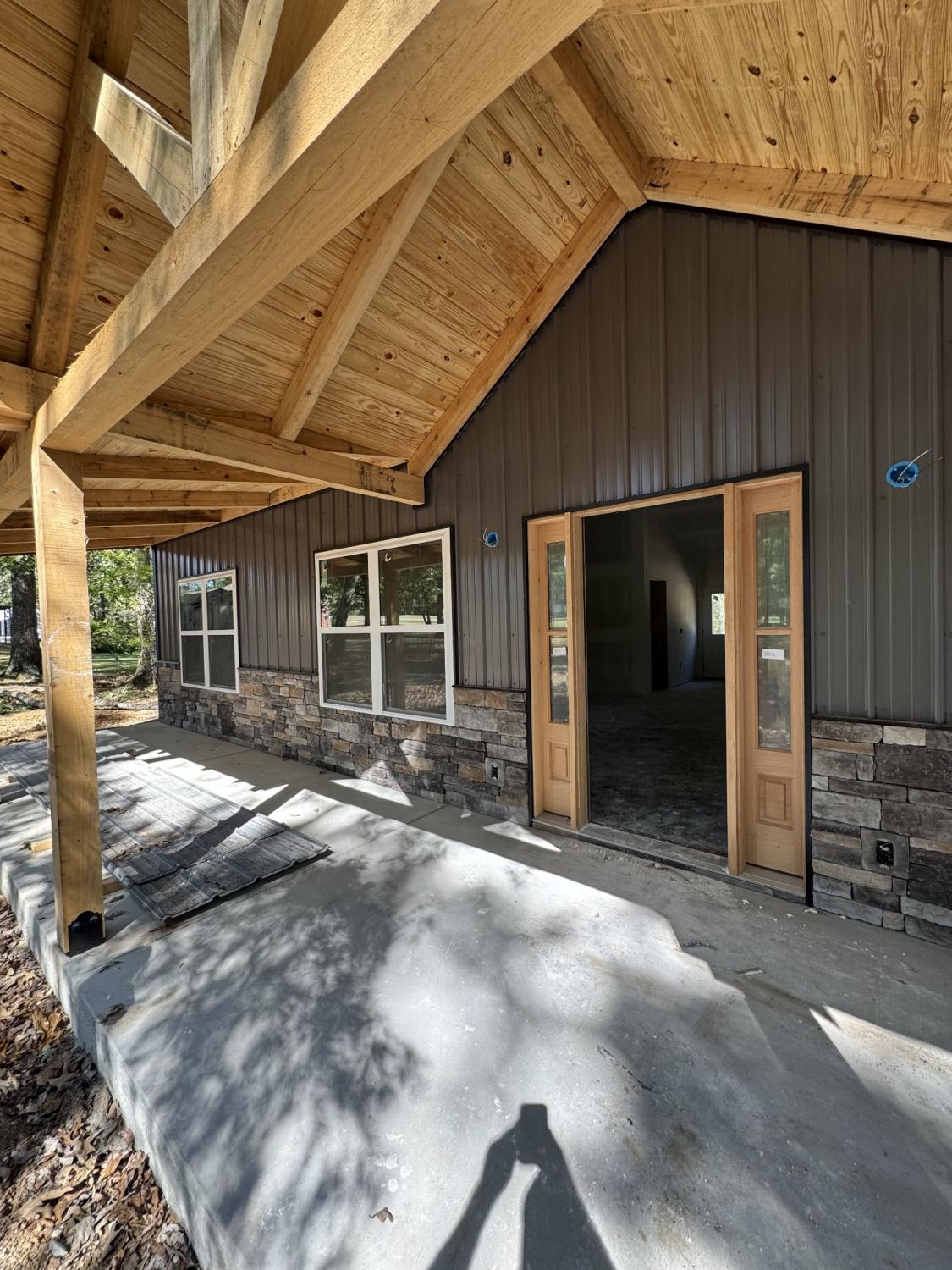 Welcome to your dream home! This beautifully designed 3-bedroom, 2-bathroom residence sits on a spacious 1-acre lot, offering a perfect blend of modern luxury and natural serenity. The home features elegant granite countertops in the kitchen, adding a touch of sophistication to the open-concept living space. With 415 sq ft of open front porch to enjoy the sunsets and outdoors Currently under construction, this property showcases high-quality finishes, including a stylish tiled bathroom with marble walls and a contemporary front door with glass panels. The exterior boasts a charming stone accent and metal siding, complemented by a covered porch ideal for enjoying the surrounding wooded landscape. Inside, the home includes ample cabinetry and a well-planned layout, perfect for family living or entertaining guests.