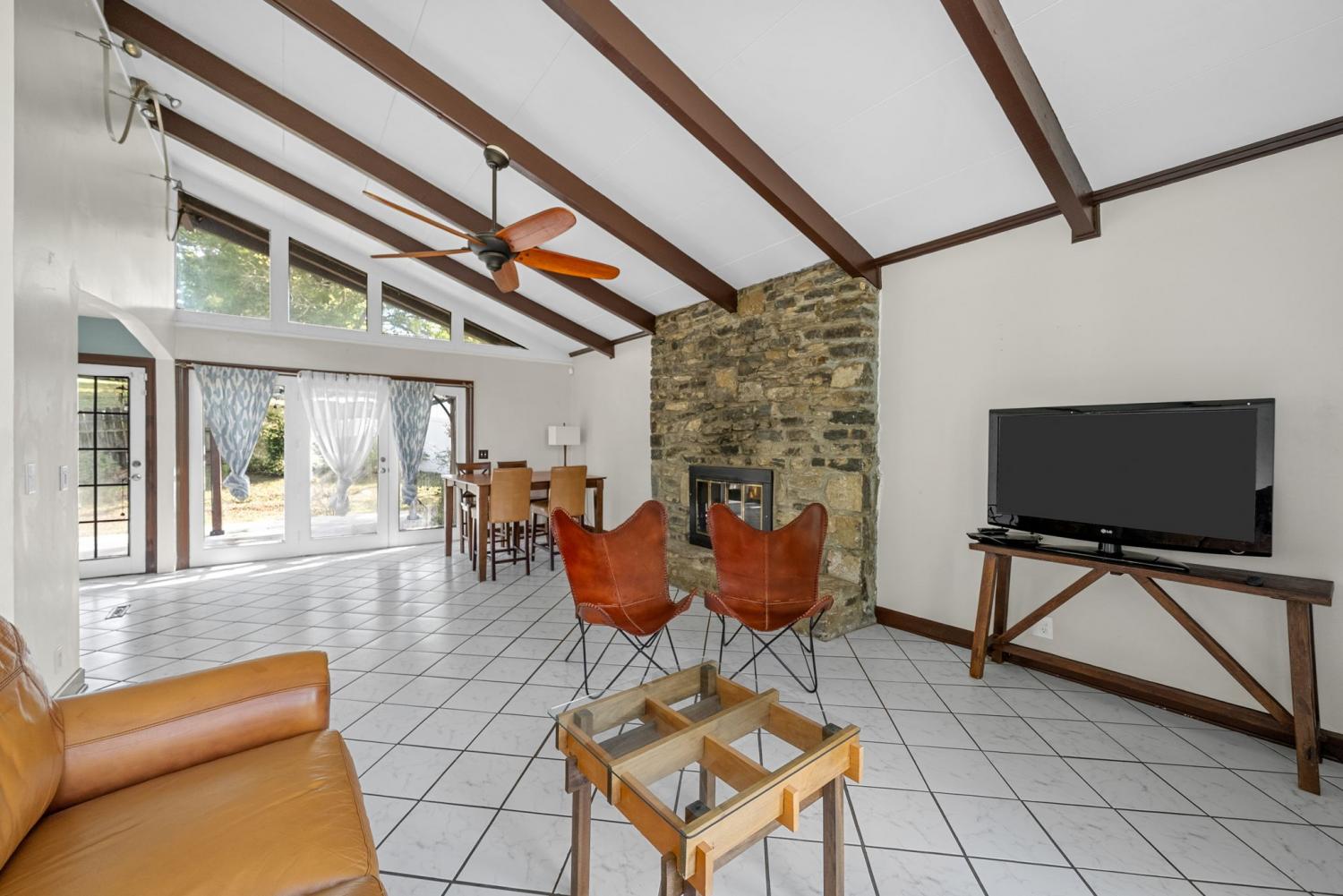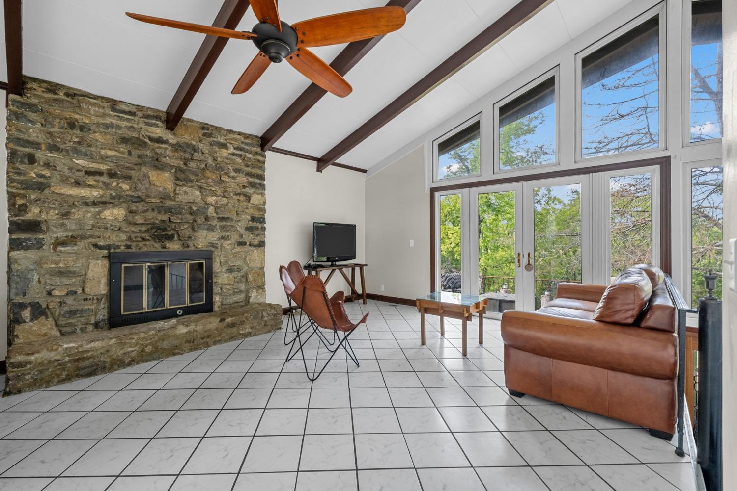 Set on a private 1.01-acre lot in Nashville’s Enchanted Hills neighborhood, this 4-bedroom, 3-bath single-family home offers 2,782?square feet of living space and a welcoming hilltop setting. Originally built in 1970, the all-brick residence greets you with a double-door entry and a dramatic floating staircase. The main level features a sun-drenched living room with vaulted ceilings and a stone fireplace; floor-to-ceiling windows and French doors open onto a spacious deck overlooking mature trees. The finished basement adds a versatile recreation room with built-in shelving and a second fireplace. Outside, stone walkways lead to a terraced yard with ample space for entertaining; enjoy summer evenings on the front or back deck. With its combination of mid-century charm and hillside privacy, this property has so much potential for a new owner to personalize and enjoy.