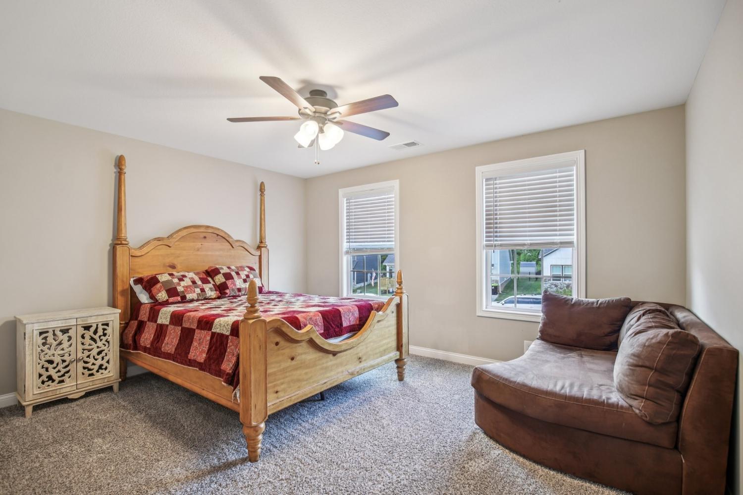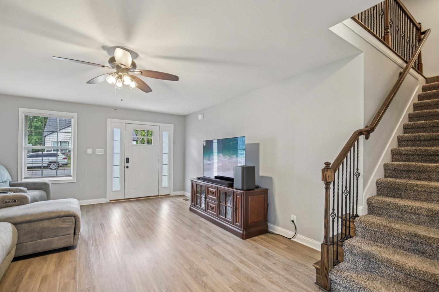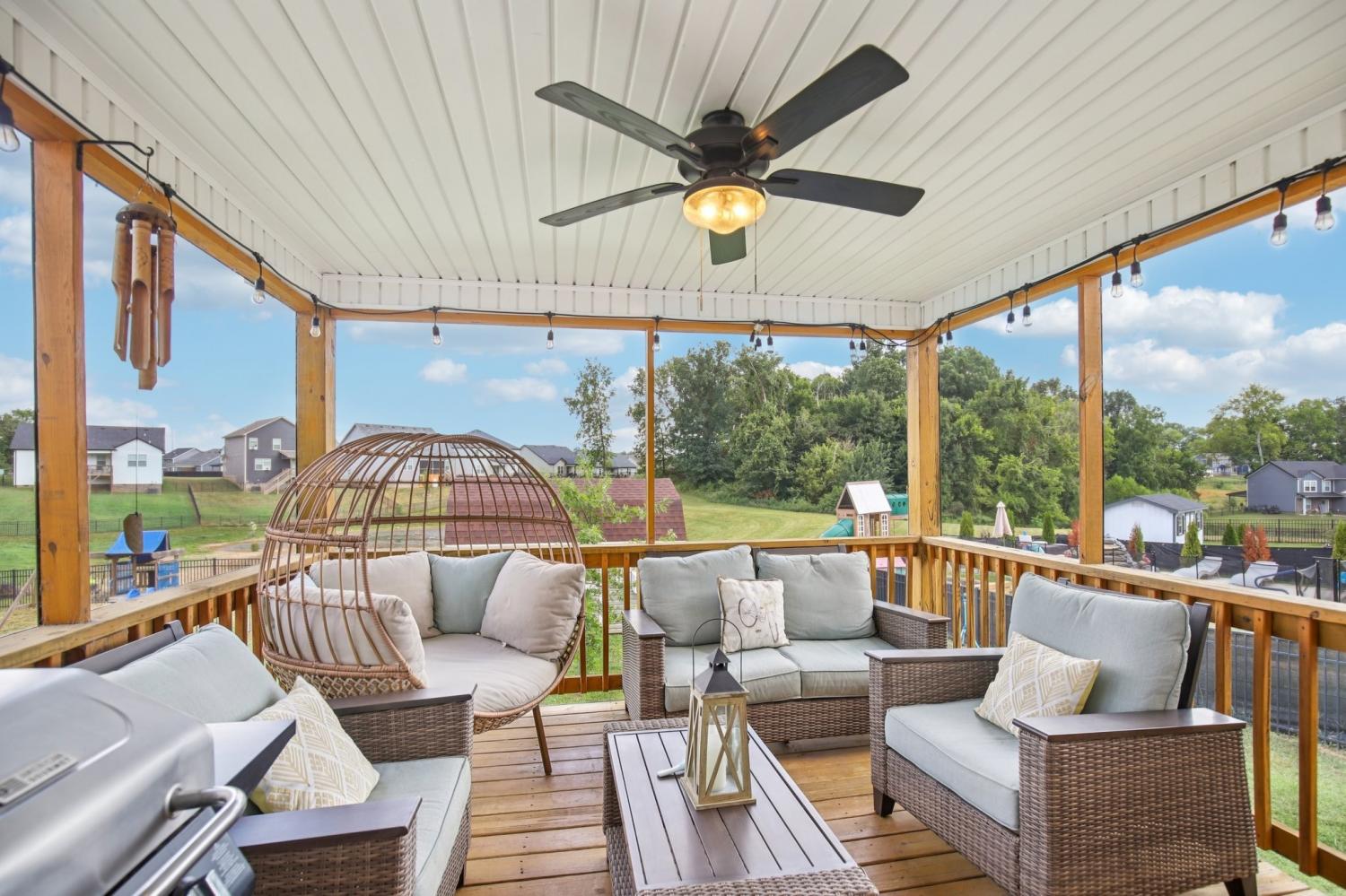 Step into modern living at 630 Battery Court in the highly desired Charleston Oaks Subdivision of Clarksville, TN. This stunning 5 bedroom, 2.5 bathroom spanning 2,102 square feet, offering a perfect blend of style and functionality sitting on a cul-de-sac lot offering both privacy and convenience. The contemporary design features high ceilings and an open floor plan that invites an abundance of natural light, creating a bright and airy atmosphere. Enjoy cooking in the modern kitchen, complete with sleek granite countertops stainless steel appliances, an electric oven, dishwasher, and a microwave. The spacious pantry and additional storage spaces provide ample room for all your culinary needs. Relax and unwind in the cozy living room, featuring a fireplace for those chilly evenings. The spacious primary suite with double trey ceiling offers a peaceful, spa-like retreat with a whirlpool soaking tub, spacious separate all tile shower, two separate vanities, and a huge walk in closet. Additional bedrooms upstairs provide ample space for family or guests. Outside, enjoy your mornings on the screened-in covered deck, overlooking a serene pond with views of wildlife, without the intrusion of backyard neighbors. Additional highlights include a spacious laundry room, privacy fenced yard outside storage shed with electricity for extra storage or a workspace for hobbies. Community amenities such as sidewalks and streetlights enhance the lifestyle here, with a new community center and pool scheduled to open spring of 2026. With high speed internet available this home is ready for modern living. Access to Fort Campbell, I-24, Top Rated West Creek Schools, Recreation, Shopping and Entertainment within minutes! Ask about VA assumable loan with 2.875% interest rate!!! Don't miss the opportunity to be part of this evolving community, schedule your visit today!