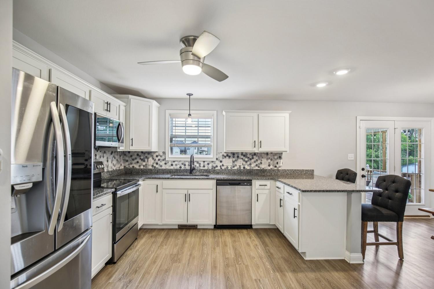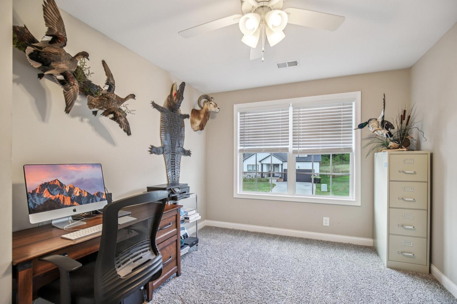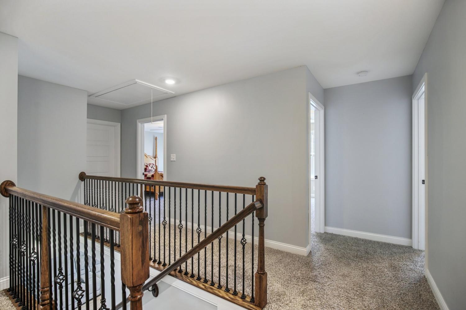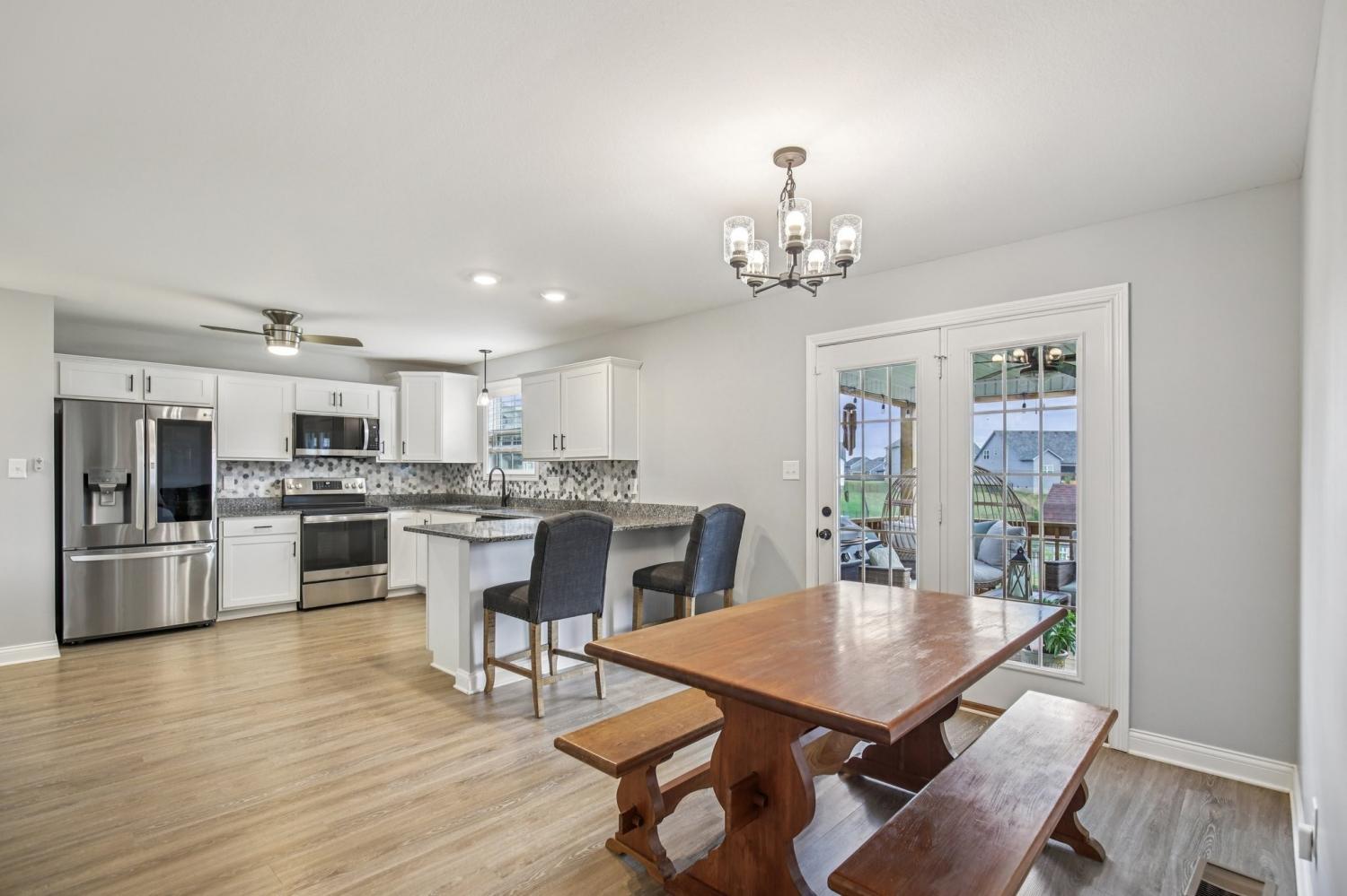Step into modern living at 630 Battery Court in the highly desired Charleston Oaks Subdivision of Clarksville, TN. This stunning 5 bedroom, 2.5 bathroom spanning 2,102 square feet, offering a perfect blend of style and functionality sitting on a cul-de-sac lot offering both privacy and convenience. The contemporary design features high ceilings and an open floor plan that invites an abundance of natural light, creating a bright and airy atmosphere. Enjoy cooking in the modern kitchen, complete with sleek granite countertops stainless steel appliances, an electric oven, dishwasher, and a microwave. The spacious pantry and additional storage spaces provide ample room for all your culinary needs. Relax and unwind in the cozy living room, featuring a fireplace for those chilly evenings. The spacious primary suite with double trey ceiling offers a peaceful, spa-like retreat with a whirlpool soaking tub, spacious separate all tile shower, two separate vanities, and a huge walk in closet. Additional bedrooms upstairs provide ample space for family or guests. Outside, enjoy your mornings on the screened-in covered deck, overlooking a serene pond with views of wildlife, without the intrusion of backyard neighbors. Additional highlights include a spacious laundry room, privacy fenced yard outside storage shed with electricity for extra storage or a workspace for hobbies. Community amenities such as sidewalks and streetlights enhance the lifestyle here, with a new community center and pool scheduled to open spring of 2026. With high speed internet available this home is ready for modern living. Access to Fort Campbell, I-24, Top Rated West Creek Schools, Recreation, Shopping and Entertainment within minutes! Ask about VA assumable loan with 2.875% interest rate!!! Don't miss the opportunity to be part of this evolving community, schedule your visit today!