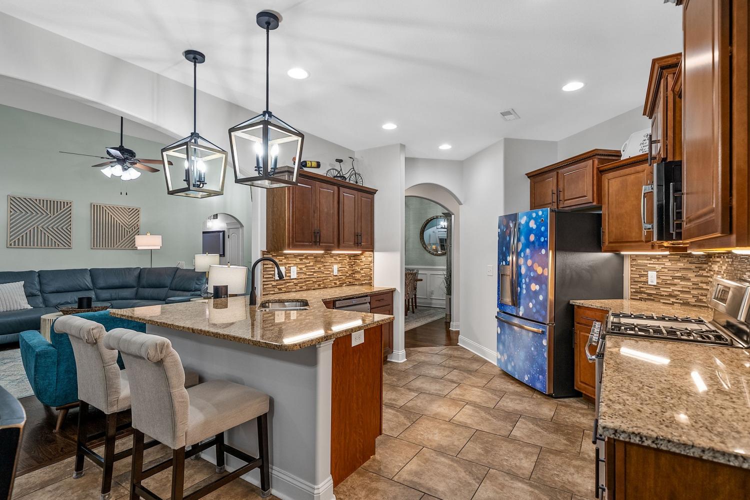 Your home search stops here...you have found the best home in the area. Four bedrooms on the main floor, a bonus room (or 5th bedroom) with a full bathroom, AND a backyard only found in magazines. Be welcomed by tall ceilings in your foyer, dining room, and living room. Your kitchen acts as a fantastic center point, separating your primary bedroom from your mother-in-law-style guest suite and your bonus room upstairs. Your stove and fireplace are both natural gas and ready for any family occasion. Whether it be the utility sink in the laundry room, walk-in pantry, or double-tank water heater: this home has SO many features. Stepping into the backyard of your dreams, you are greeted by a freshly stained covered deck that walks into your hot tub. Step down to not one, but two separate covered areas of your backyard: one perfect for grillin' and one perfect for chillin'. Lastly, dive into your saltwater pool and soak up your endless evenings in this stunning backyard.