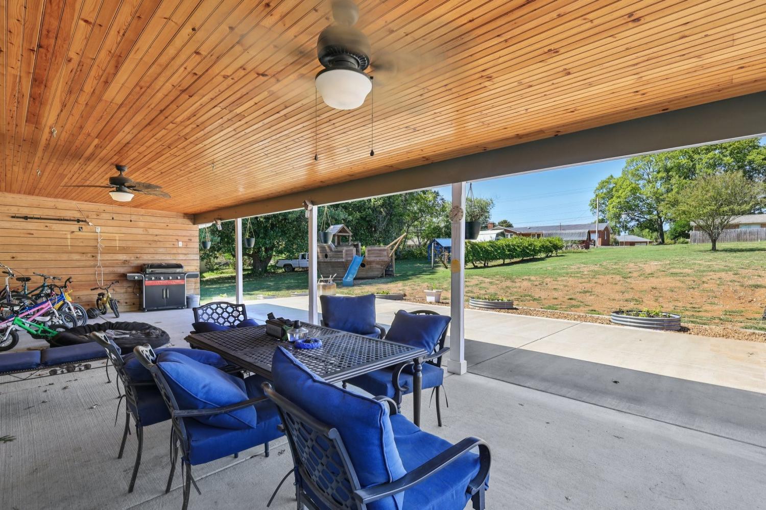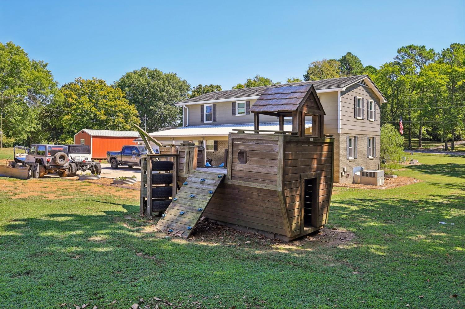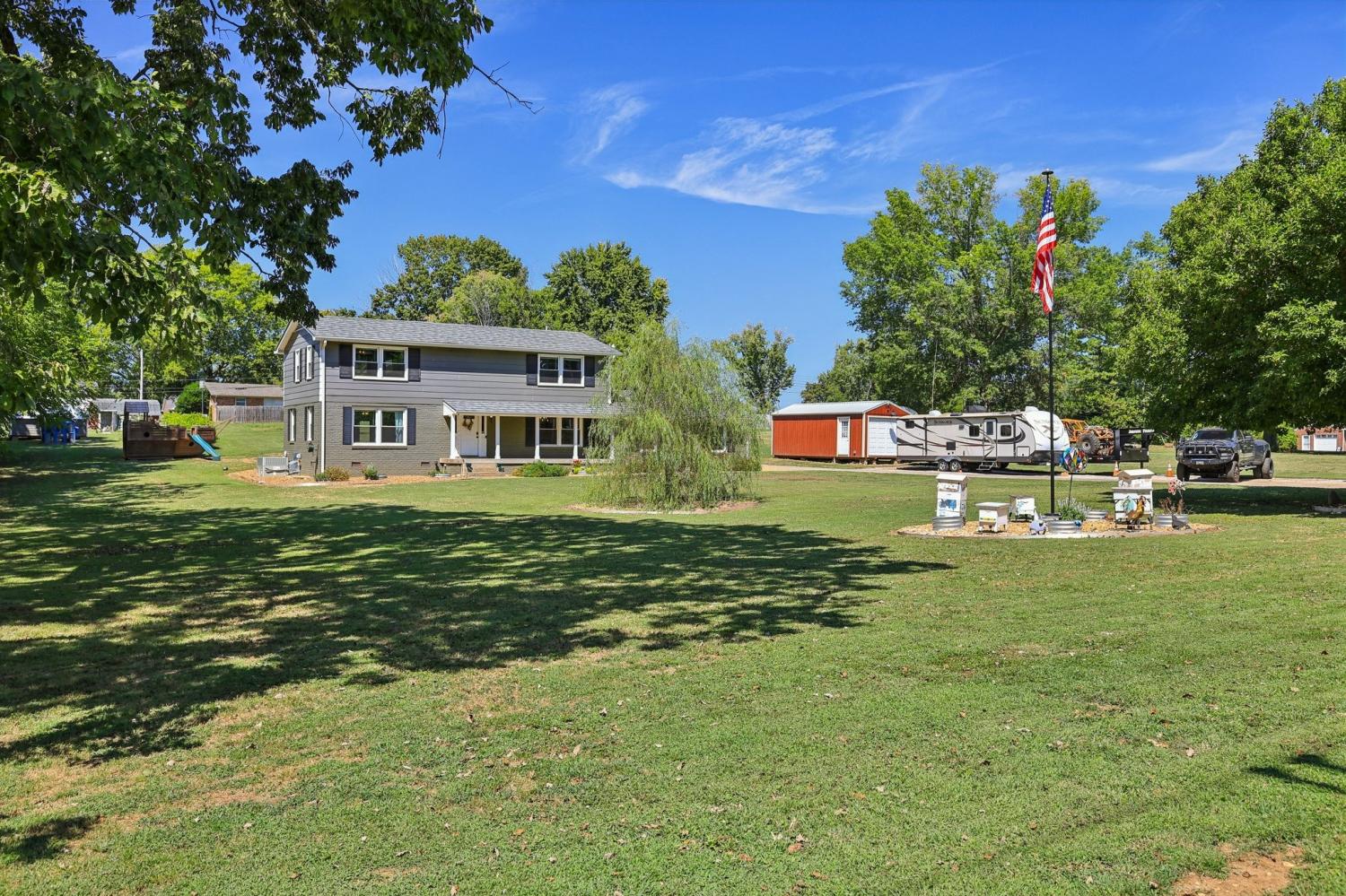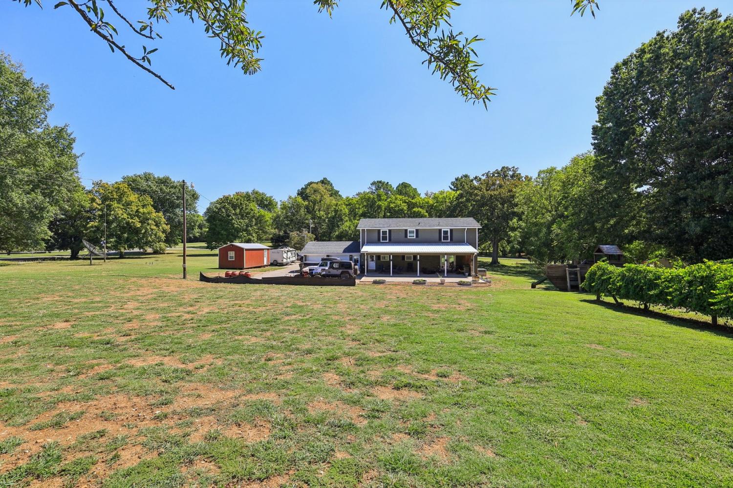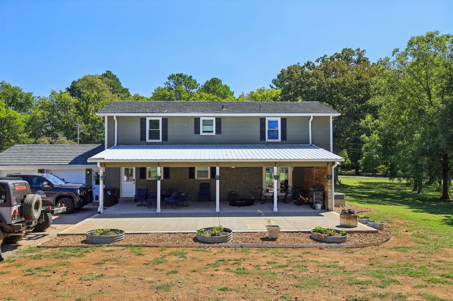 Welcome to this updated two story home, perfectly situated on over an acre with beautiful landscaping and incredible curb appeal. A charming front porch invites you to step inside. Set far back from the road for ultimate privacy. Inside, the 2,200 sq. ft. home is both welcoming and functional. The first floor's open concept layout provides versatile living spaces, allowing for either a spacious great room or a more formal living and dining area. The updated kitchen is a chef's delight, featuring granite counters, stainless steel appliances, and shaker cabinets. A large island with seating connects seamlessly to a spacious room perfect for family dining or flexible living. A convenient half bath and laundry room complete the main level. Upstairs, the oversized primary bedroom is a true retreat, complete with a built-in office space, a huge walk-in closet, and a private ensuite with a tile shower. Two additional spacious bedrooms share a well-appointed bathroom with a tub/shower combo. Outdoor living is a breeze thanks to the huge covered patio with a beautiful wood plank ceiling and dual ceiling fans, along with an extended concrete patio and a large level greenspace that goes on and on. An extended driveway and parking area is available for your vehicles and other equipment. This home also features a metal roof with a 50-year limited warranty, and a grey shed is included for extra storage. Schedule a showing to see it for yourself in person!