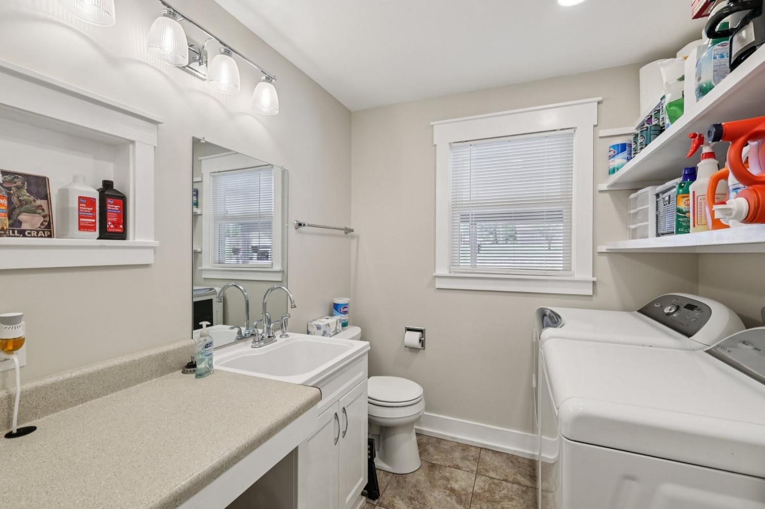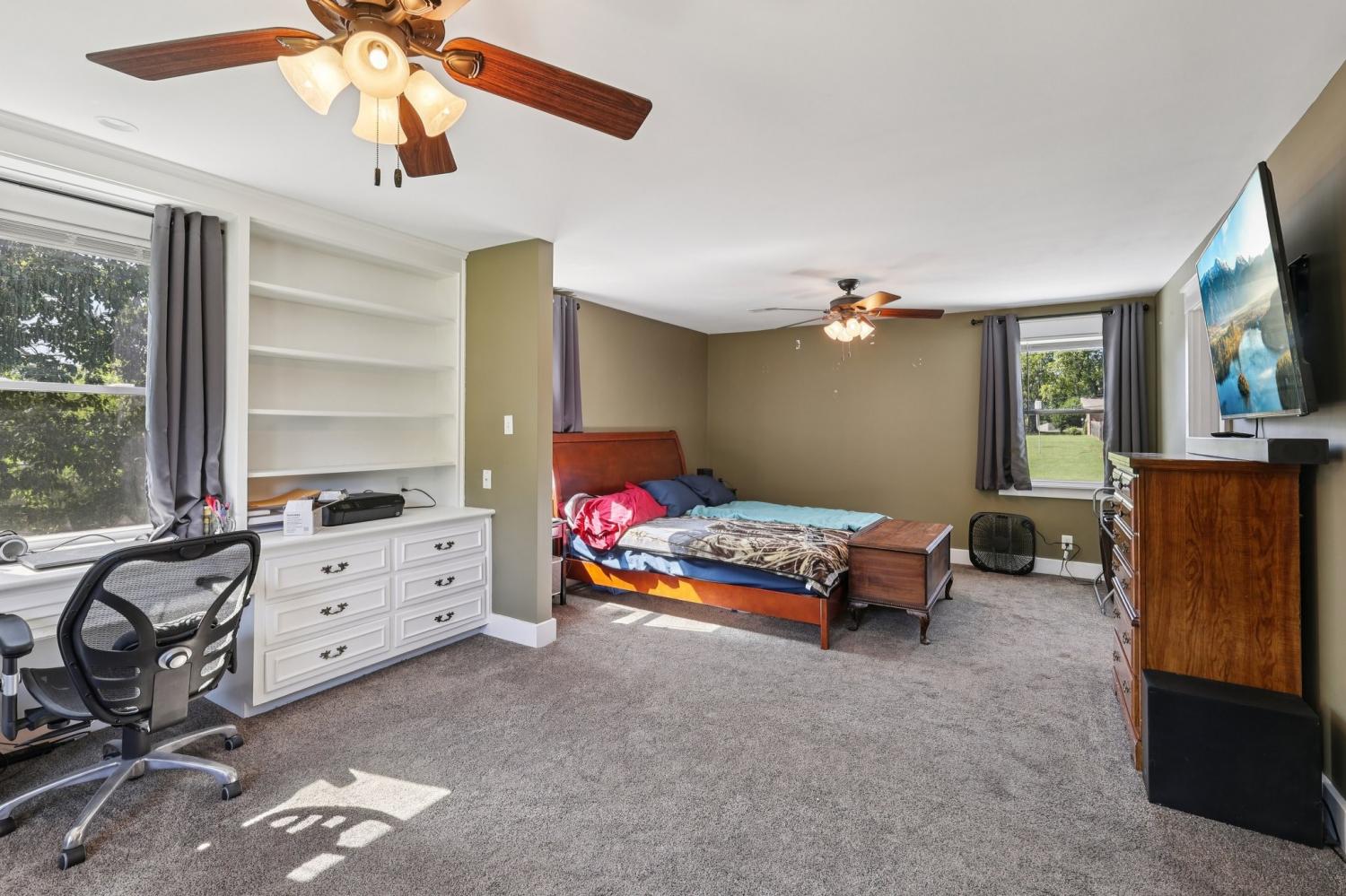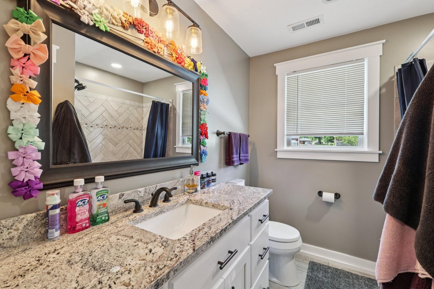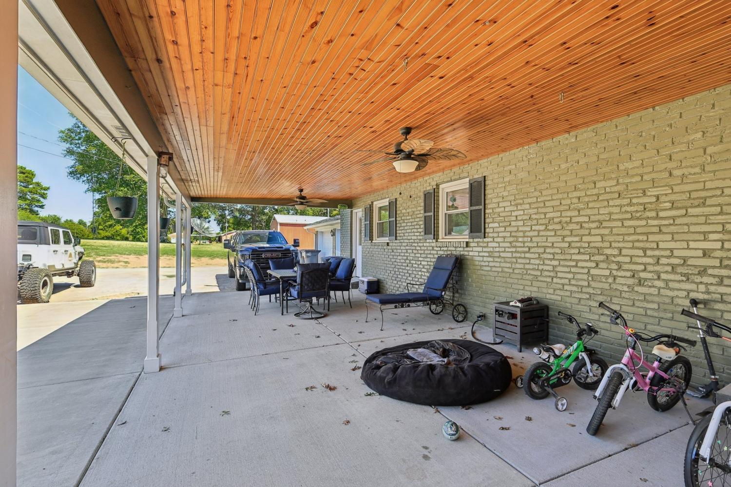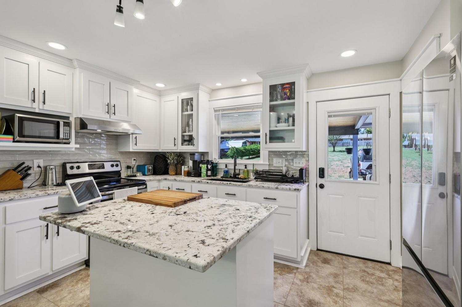 Welcome to this updated two story home, perfectly situated on over an acre with beautiful landscaping and incredible curb appeal. A charming front porch invites you to step inside. Set far back from the road for ultimate privacy. Inside, the 2,200 sq. ft. home is both welcoming and functional. The first floor's open concept layout provides versatile living spaces, allowing for either a spacious great room or a more formal living and dining area. The updated kitchen is a chef's delight, featuring granite counters, stainless steel appliances, and shaker cabinets. A large island with seating connects seamlessly to a spacious room perfect for family dining or flexible living. A convenient half bath and laundry room complete the main level. Upstairs, the oversized primary bedroom is a true retreat, complete with a built-in office space, a huge walk-in closet, and a private ensuite with a tile shower. Two additional spacious bedrooms share a well-appointed bathroom with a tub/shower combo. Outdoor living is a breeze thanks to the huge covered patio with a beautiful wood plank ceiling and dual ceiling fans, along with an extended concrete patio and a large level greenspace that goes on and on. An extended driveway and parking area is available for your vehicles and other equipment. This home also features a metal roof with a 50-year limited warranty, and a grey shed is included for extra storage. Schedule a showing to see it for yourself in person!