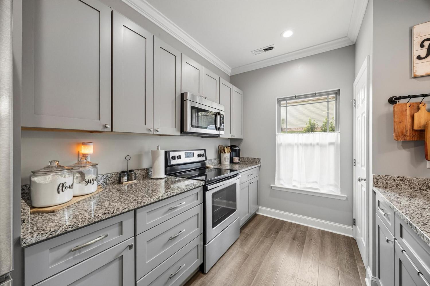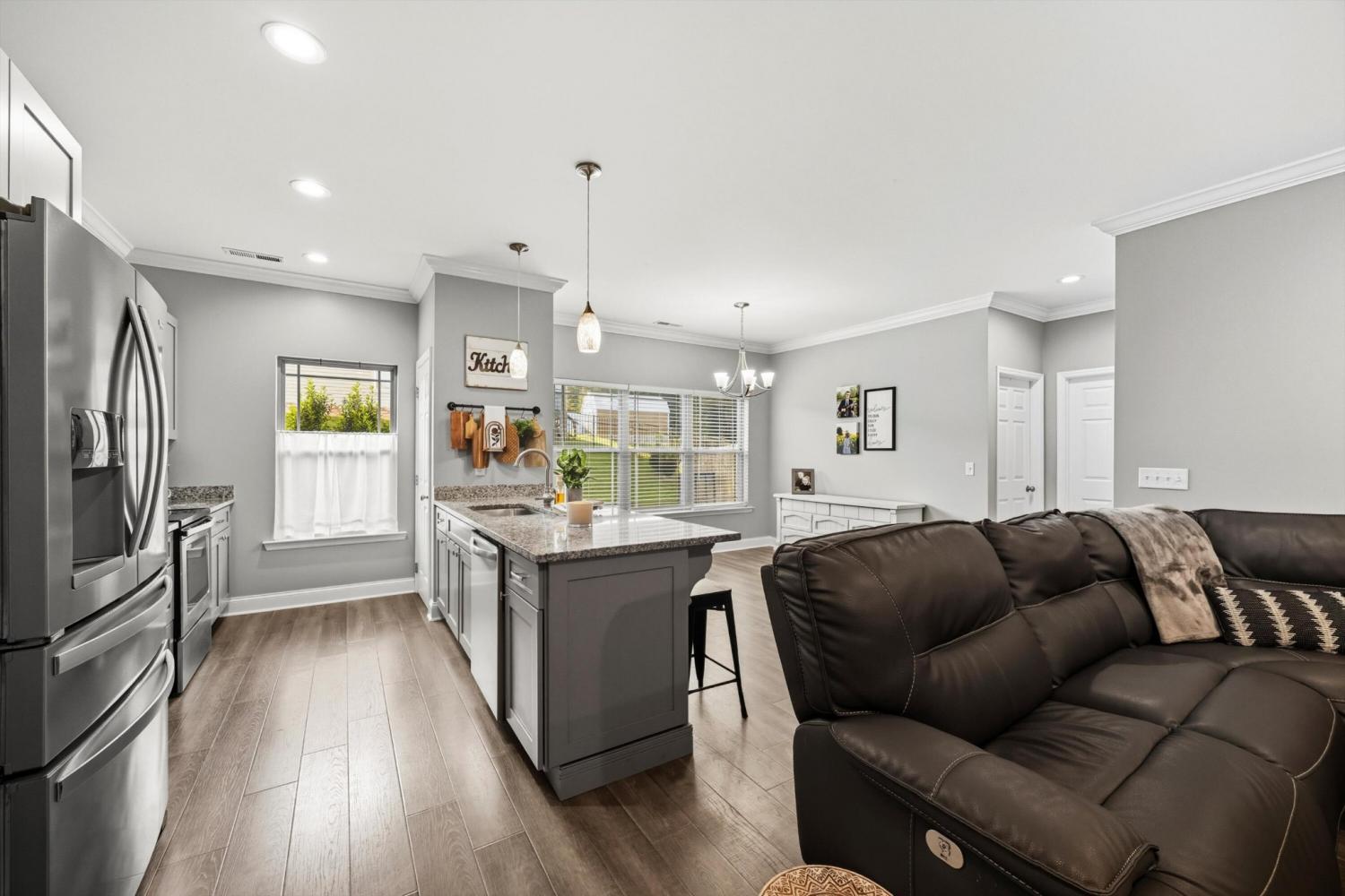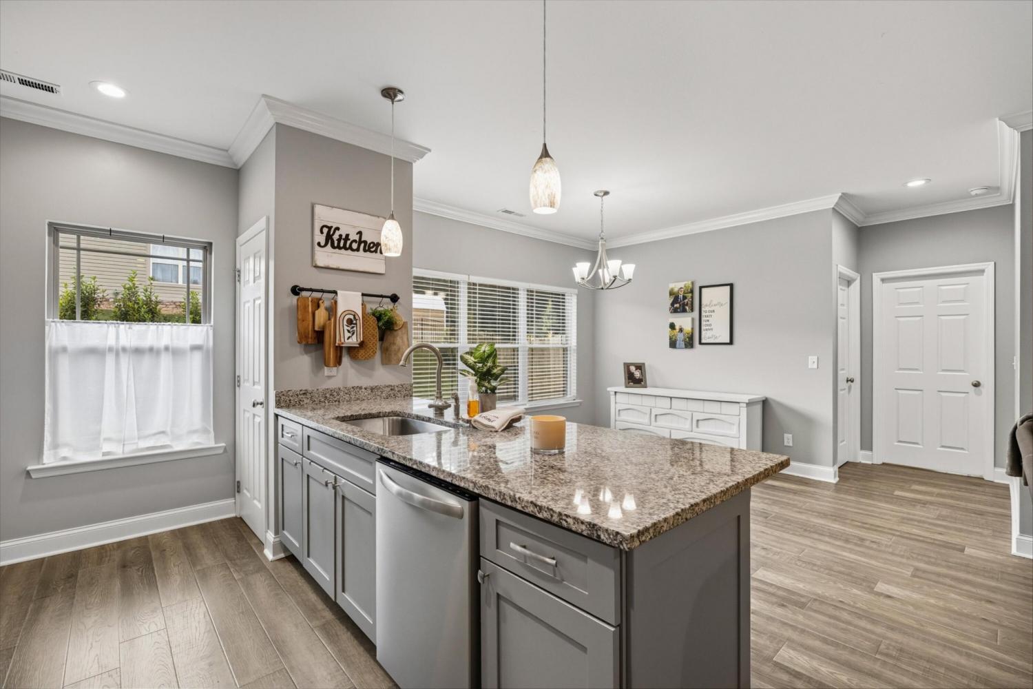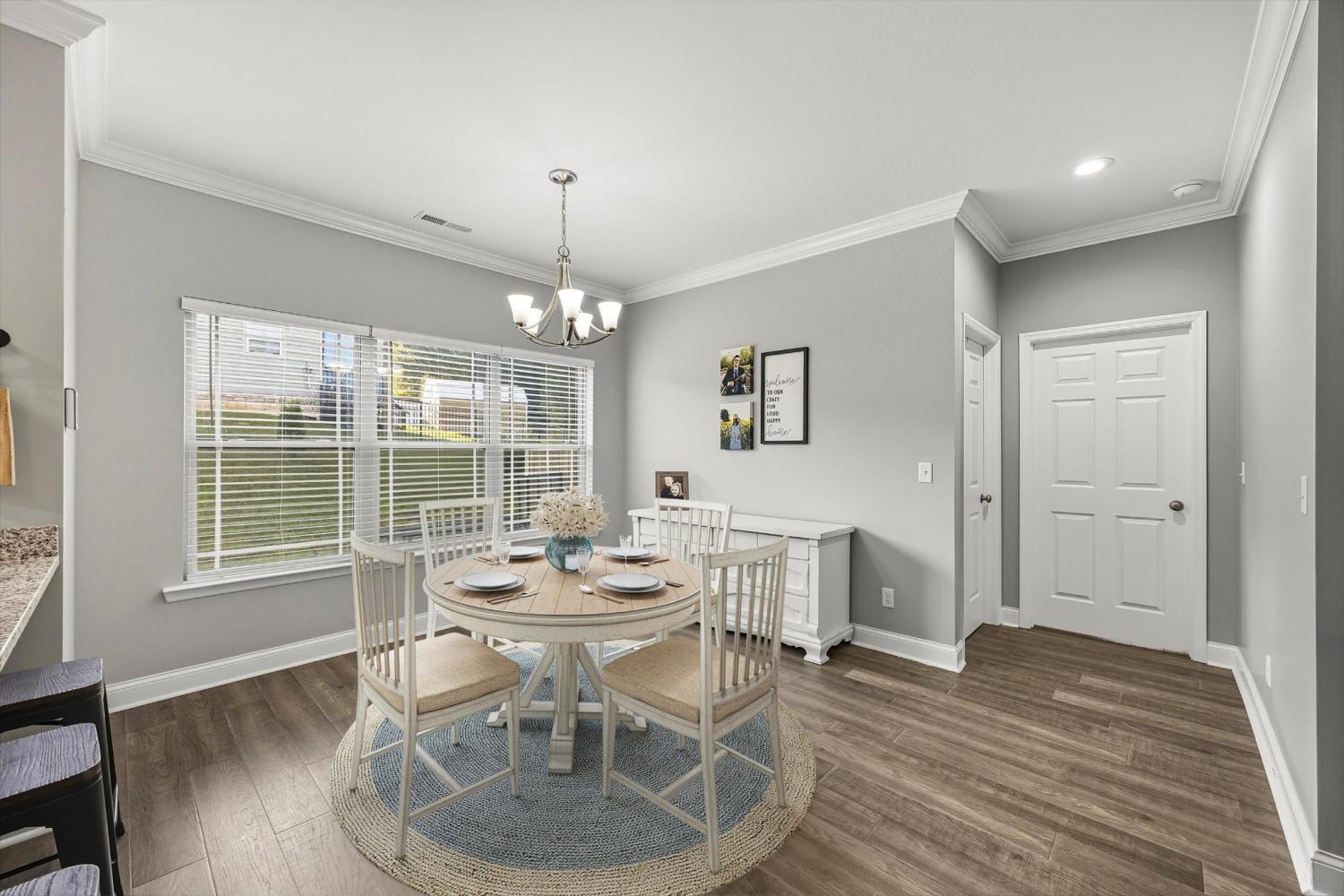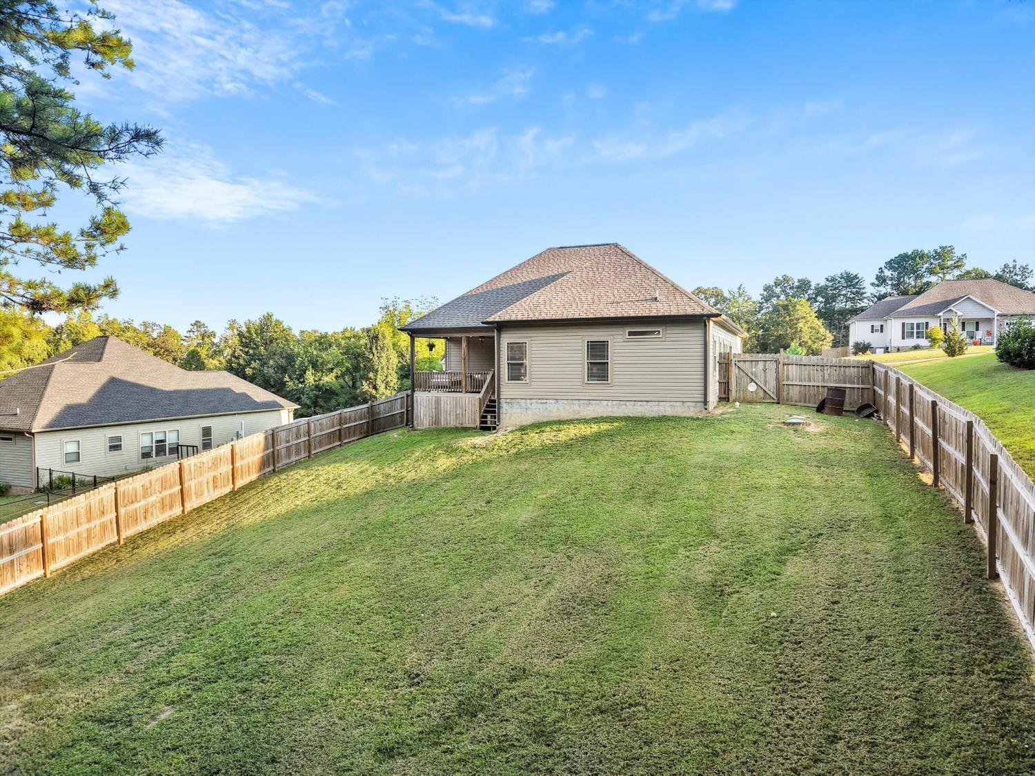 Welcome to 60 Red Oak Ridge Drive - a beautifully maintained, zero-entry home in Chickamauga! This 3-bedroom, 2-bathroom home features an open floor plan with 9-foot ceilings and a desirable split-bedroom layout for added privacy. You'll love the low-maintenance luxury vinyl plank and tile flooring throughout - no carpet in sight! The spacious kitchen features granite countertops, stainless steel appliances, a breakfast bar, and a pantry, and it seamlessly opens to the dining and living areas - perfect for entertaining or everyday living. The private primary suite includes a large walk-in closet, double vanities, and a custom tile shower. Step outside to a covered back porch that overlooks a fenced and private backyard - ideal for relaxing or hosting guests. Convenient, stylish, and move-in ready, this home checks all the boxes. Schedule your showing today!