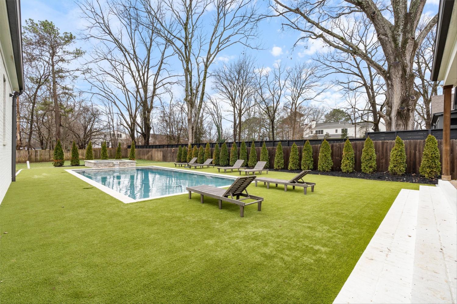 Welcome to this breathtaking luxury residence in the prestigious Oak Hill neighborhood, where sophistication and style meet comfort and privacy. This stunning home boasts a seamless blend of elegant finishes and modern design, creating an inviting atmosphere throughout. The open floor plan flows effortlessly, with gleaming hardwood floors, custom millwork, and oversized windows that frame the beautiful surroundings. The chef’s kitchen is a culinary dream, complete with top-of-the-line appliances, custom cabinetry, a large central island, and sleek quartz countertops. Whether preparing a casual meal or hosting a dinner party, the kitchen opens seamlessly to the dining and living areas, making entertaining a breeze. The primary suite offers a serene retreat, complete with a luxurious en-suite bathroom featuring a soaking tub, glass-enclosed shower, dual vanities, and an expansive walk-in closet. Five additional generously sized bedrooms each offer their own en-suite bath, providing ultimate comfort and privacy for family and guests. Dedicated laundry spaces on both floors add to this home's functionality. Step outside to your private sanctuary. A tranquil, secluded courtyard offers the perfect setting for quiet moments or gatherings with loved ones around the fire, while the backyard features a sparkling pool and relaxing spa with a turf surround, a beautifully landscaped, fenced-in yard—ideal for outdoor entertaining, play or enjoying peaceful moments in the sun. The expansive patio area is perfect for alfresco dining or lounging by the poolside. Additional highlights of this home include a private and quiet bonus/media room, walk-in storage as well as a three-car garage with ample storage space. Located in the coveted Oak Hill neighborhood, this home offers a rare combination of luxury living and privacy, while being just minutes from top-tier schools, parks, shopping, and dining. Experience the pinnacle of Nashville living in this extraordinary estate!