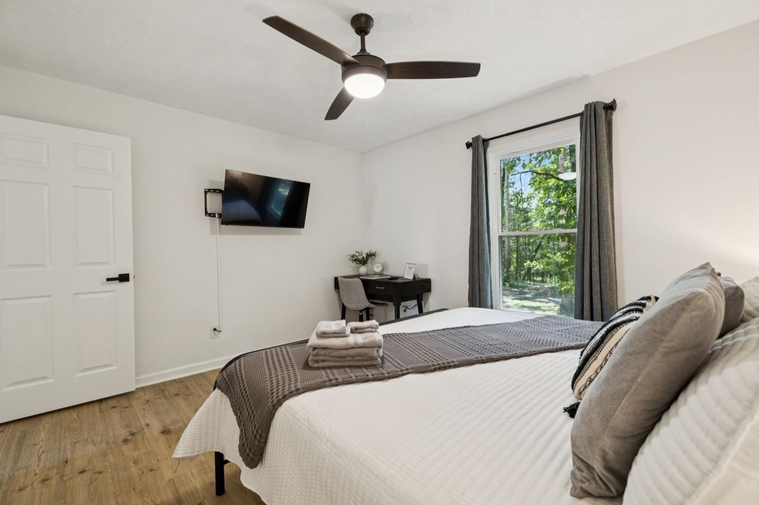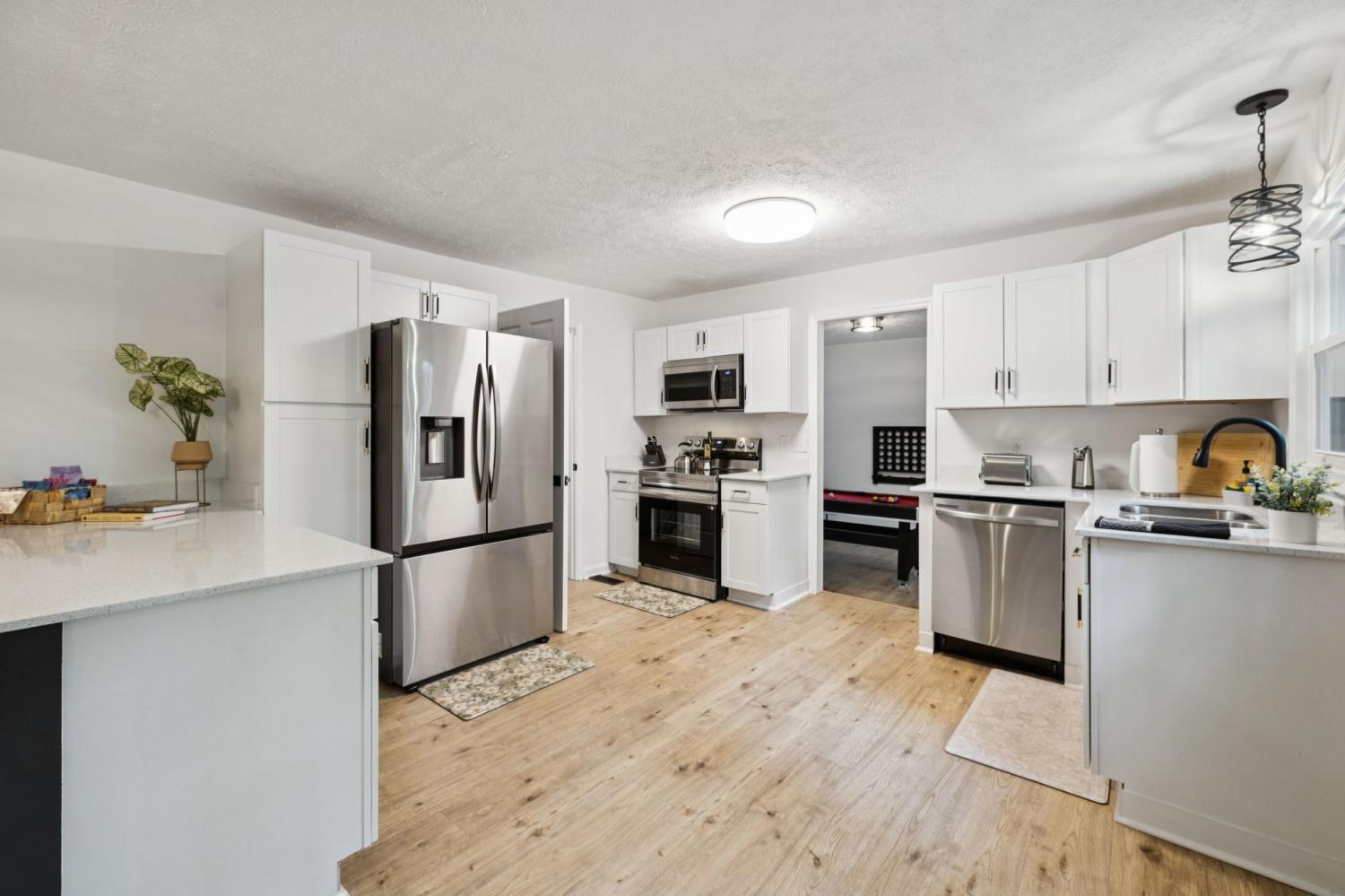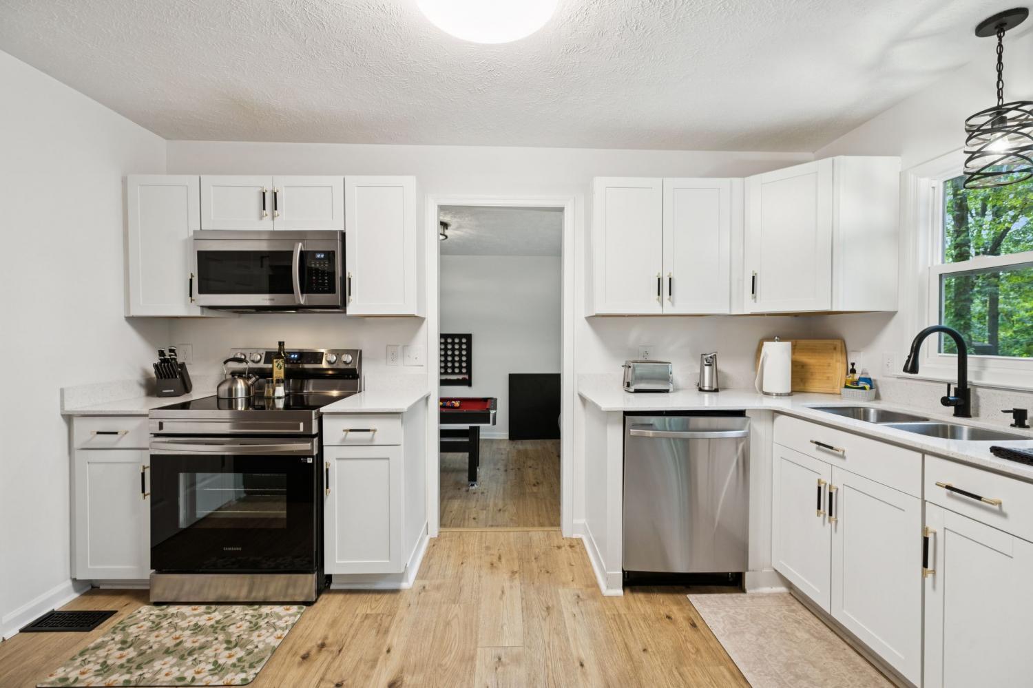 This is your chance to own a Woodland Escape! This beautiful house sits on almost 1.2 acres and boasts 3 Bedrooms PLUS a huge Bonus Room that is being used as a 4th Bedroom as well as an additional hobby room. Get lost in the lush and wooded landscape of the backyard while reading a book on the deck. The home has been fully renovated for short-term rental purposes and is currently being utilized as a STR. Features include quartz countertops, stainless steel appliances, and an electric fireplace. Updated Lighting fixtures, gutters, windows, paint and stain, as well as new Roof. Whether you're looking for a peaceful getaway, a rental property, or a forever home in nature — this woodland gem checks all the boxes. Showings must be scheduled around short term rental guests' stays. No drive by showings as this property may have guests for STR.