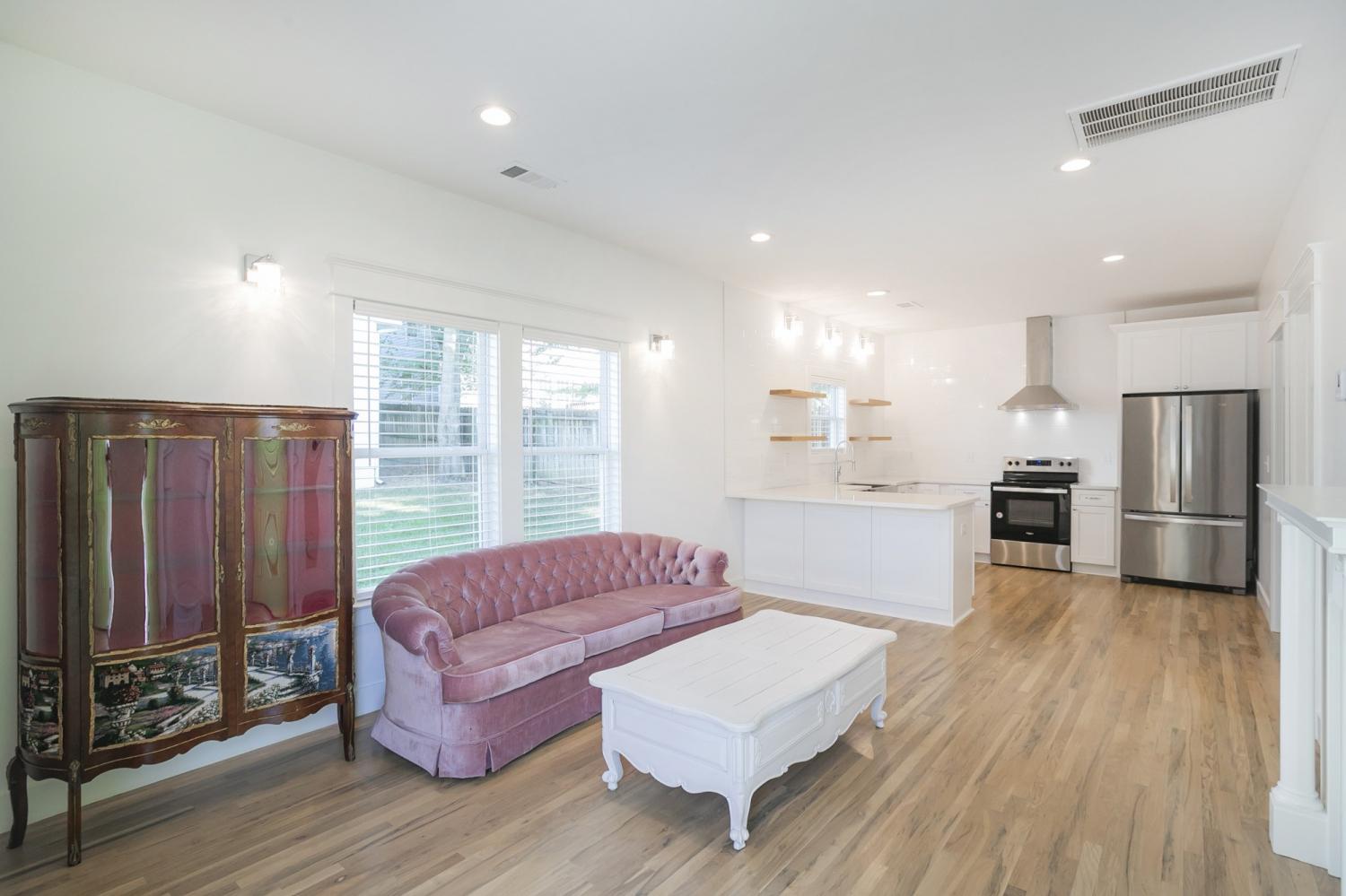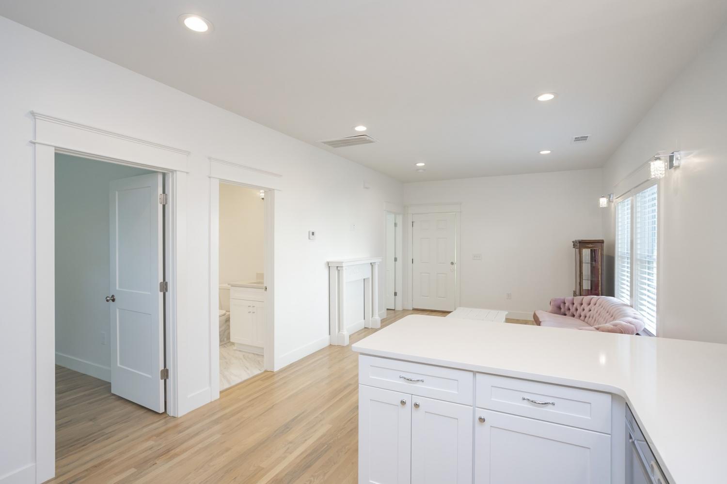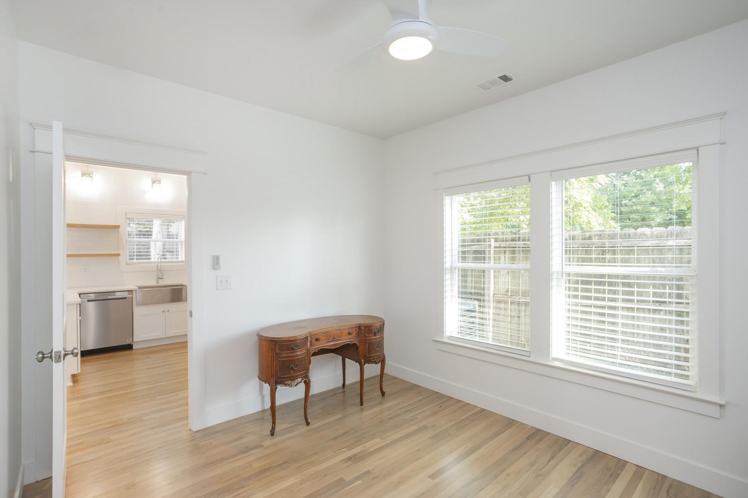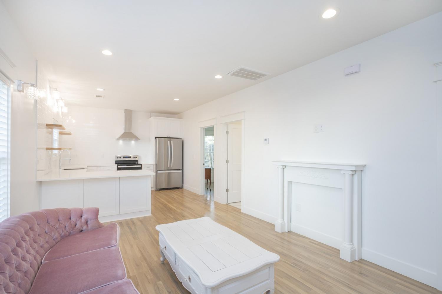 Stunning detached home behind existing house, with gorgeous high end details and quality construction. Beautiful real hardwood floors throughout with very high ceilings make this unit feel luxurious. Modern style with stainless steel appliances and quartz countertops in the kitchen and tile floors and quartz counters in the bathroom are married with timeless features such as real wood floors, making this a wonderfully unique property. Alley access, two off-street parking spaces. Washer/dryer included. Furniture seen in pictures does not remain. Come and see for yourself!