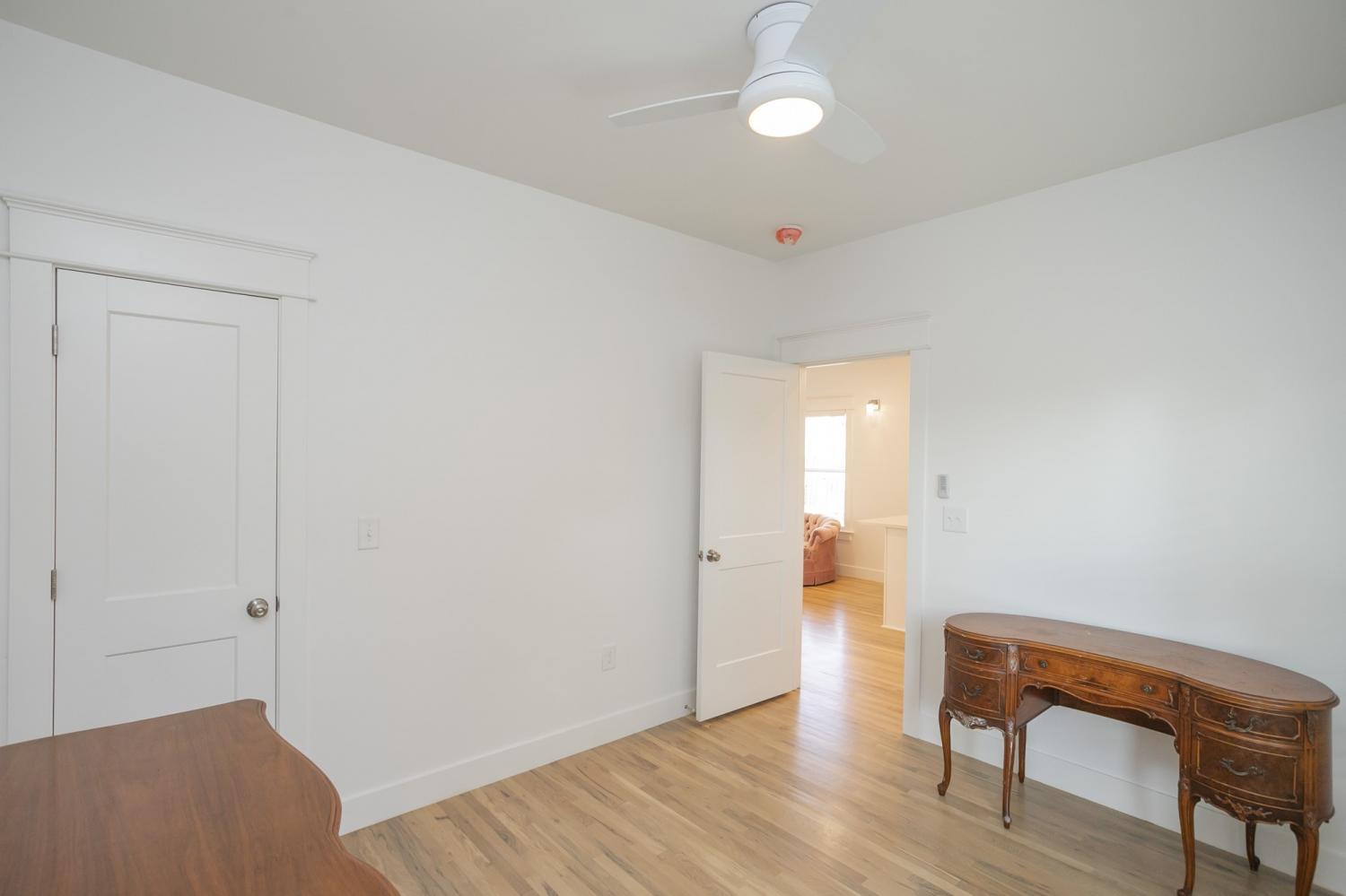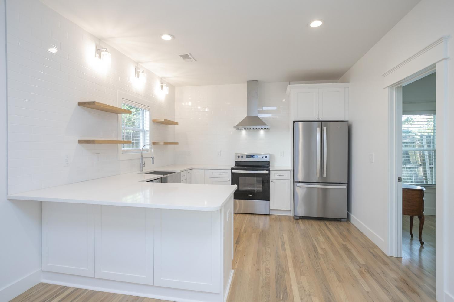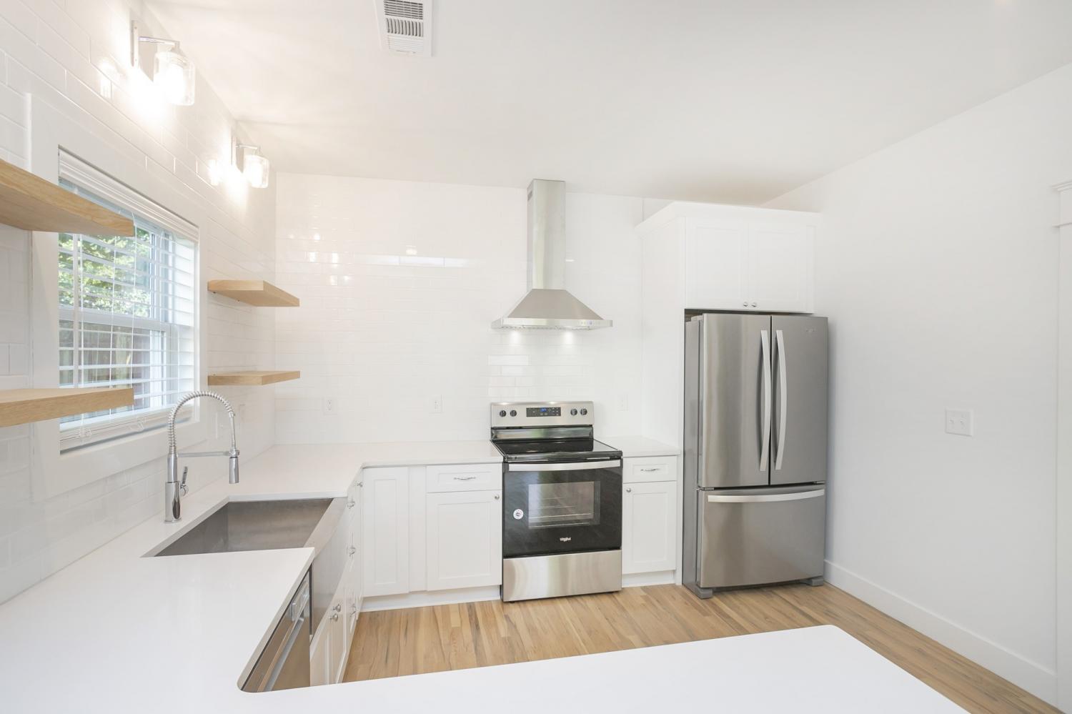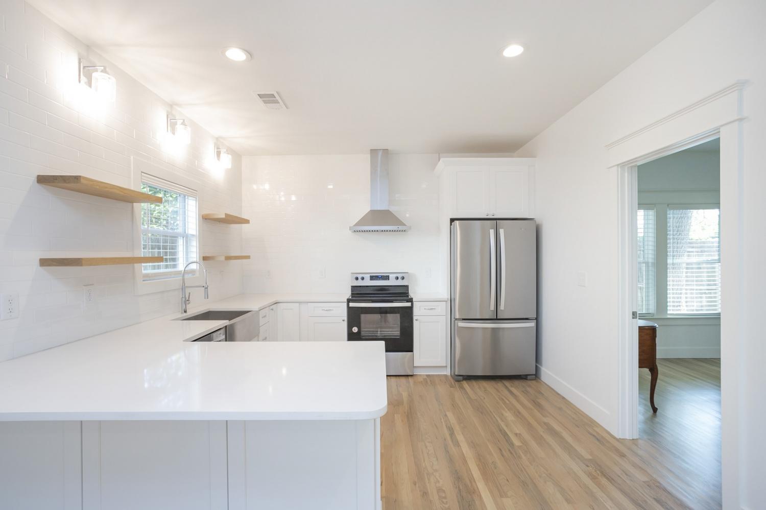 Stunning detached home behind existing house, with gorgeous high end details and quality construction. Beautiful real hardwood floors throughout with very high ceilings make this unit feel luxurious. Modern style with stainless steel appliances and quartz countertops in the kitchen and tile floors and quartz counters in the bathroom are married with timeless features such as real wood floors, making this a wonderfully unique property. Alley access, two off-street parking spaces. Washer/dryer included. Furniture seen in pictures does not remain. Come and see for yourself!