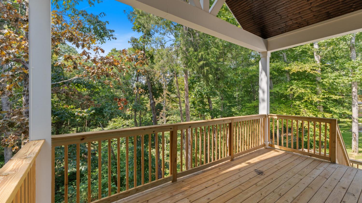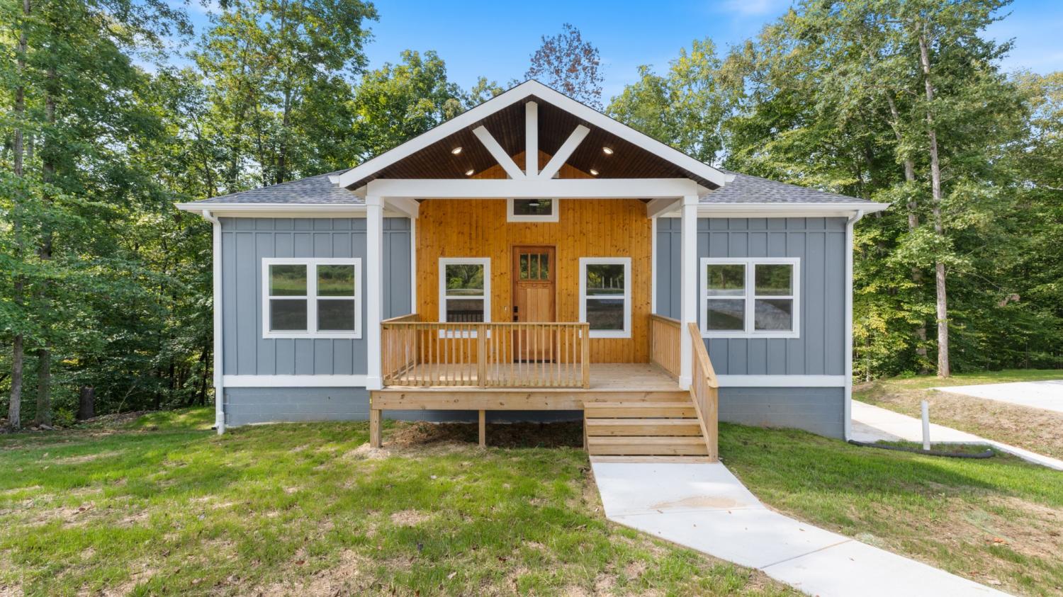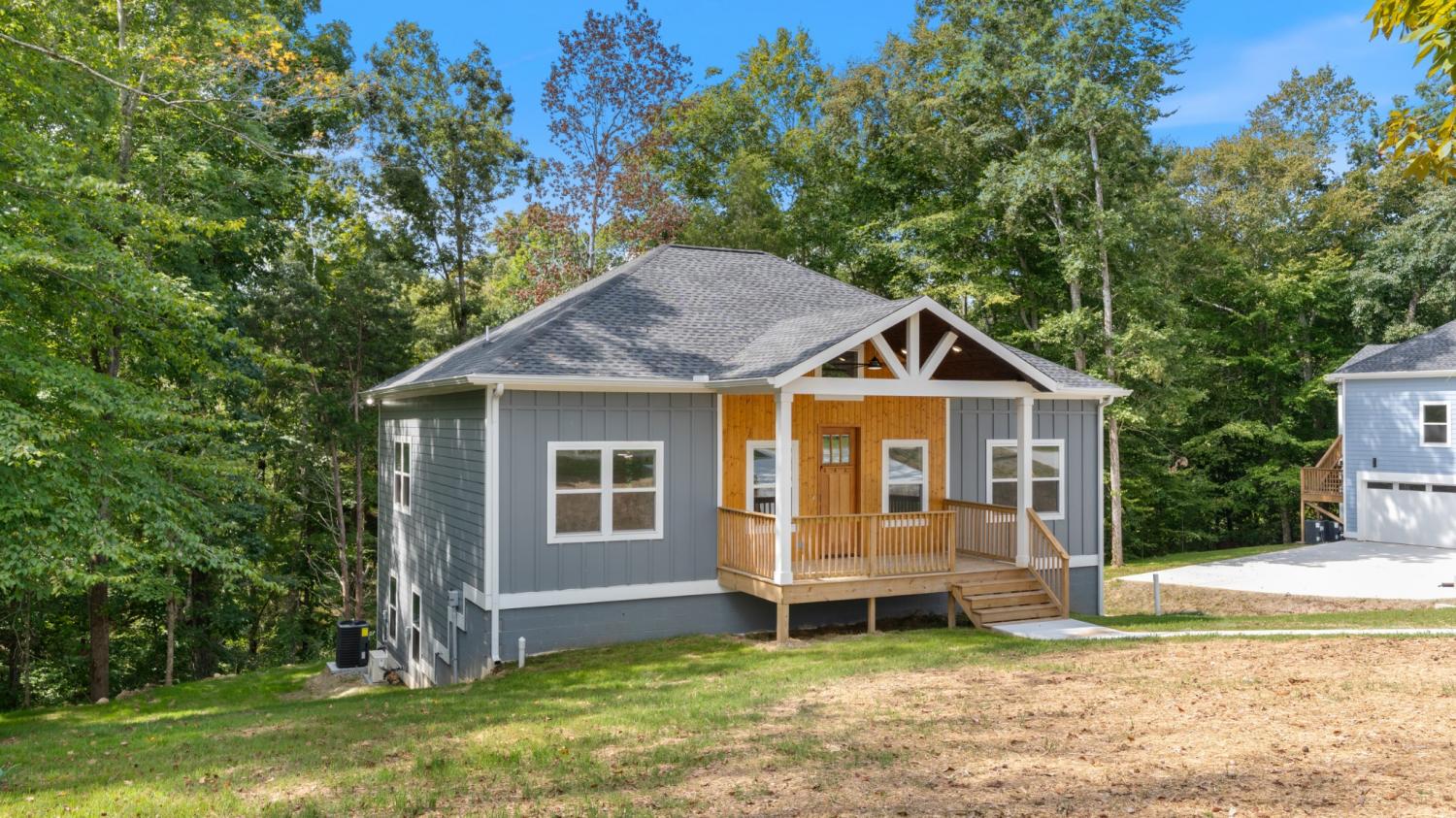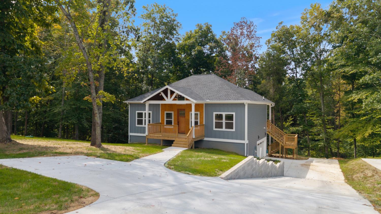 New Construction Approx. 2174 sq. ft. 3 bedroom, 2 bath home located walking distance to Normandy Lake. Home features an open concept living area with Oak hardwood and tile flooring, 10 ft ceilings and Accent wall with electric fireplace. Master bedroom has walk-in closet with custom built-in shelves. Master bath has double sink vanity, walk-in tile shower with glass door and large linen closet. The main level also includes two additional bedrooms and a second bath. Basement level includes a 19x29 Rec room/multipurpose room and oversized 2 car garage with large work area and additional storage. Peaceful country living on a 2 acre wooded lot is enhanced with the addition of a Covered front porch, covered back deck and covered patio all with ceiling fans and lighting . Located on a dead end street walking distance to Firelake boat ramp on Normandy Lake.