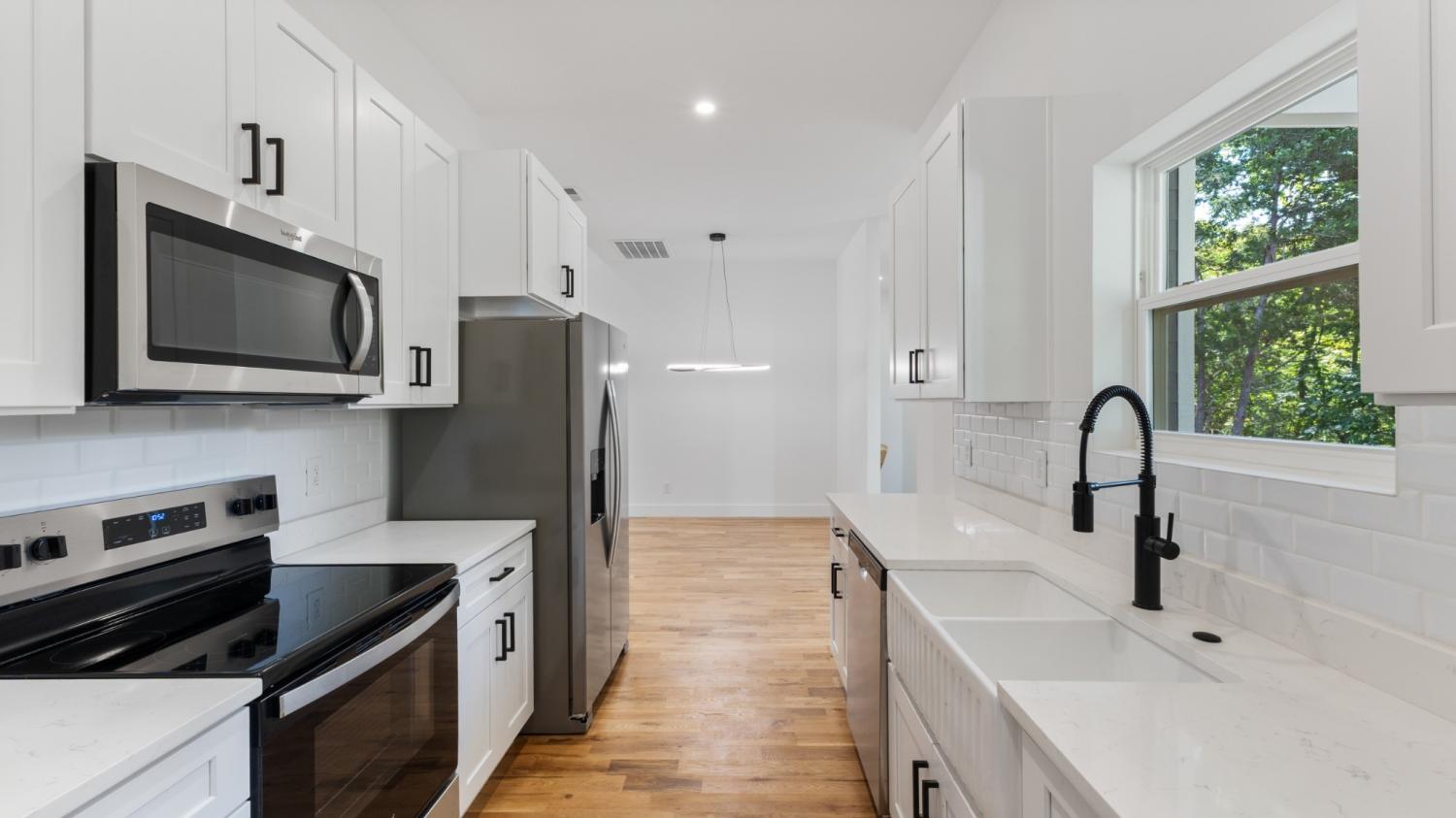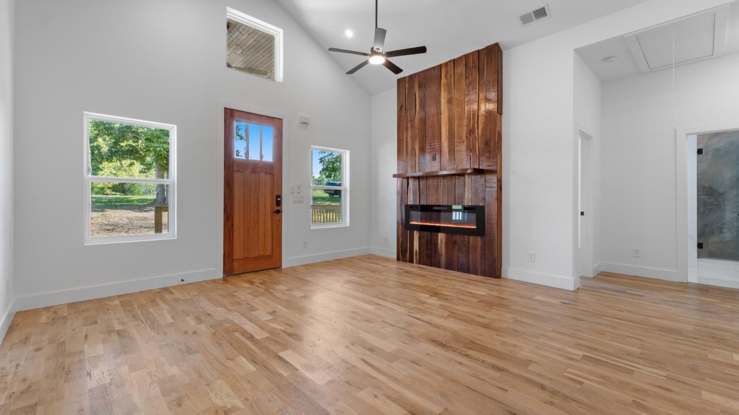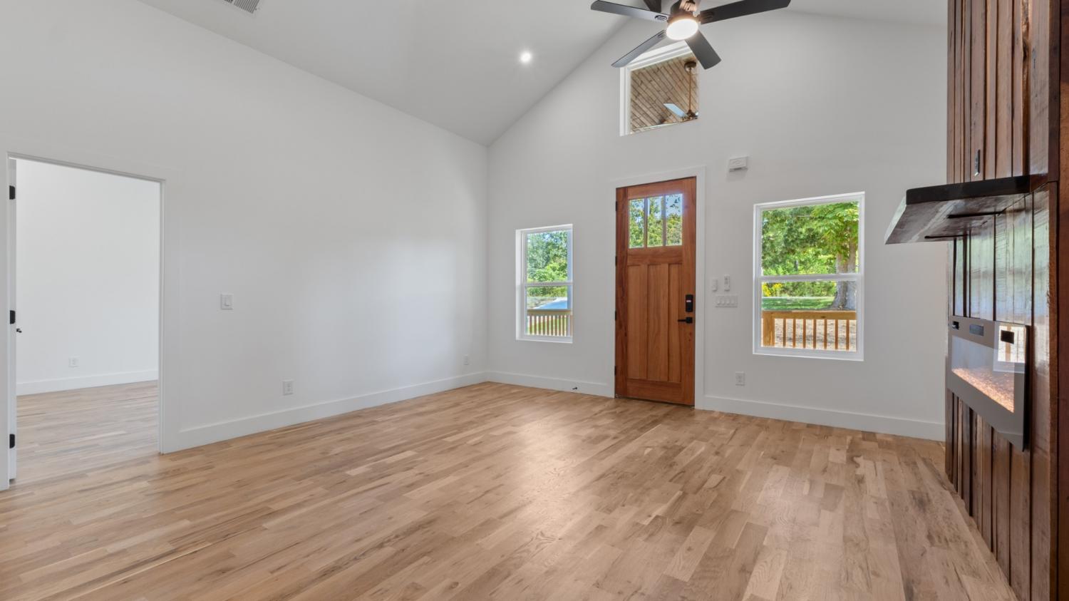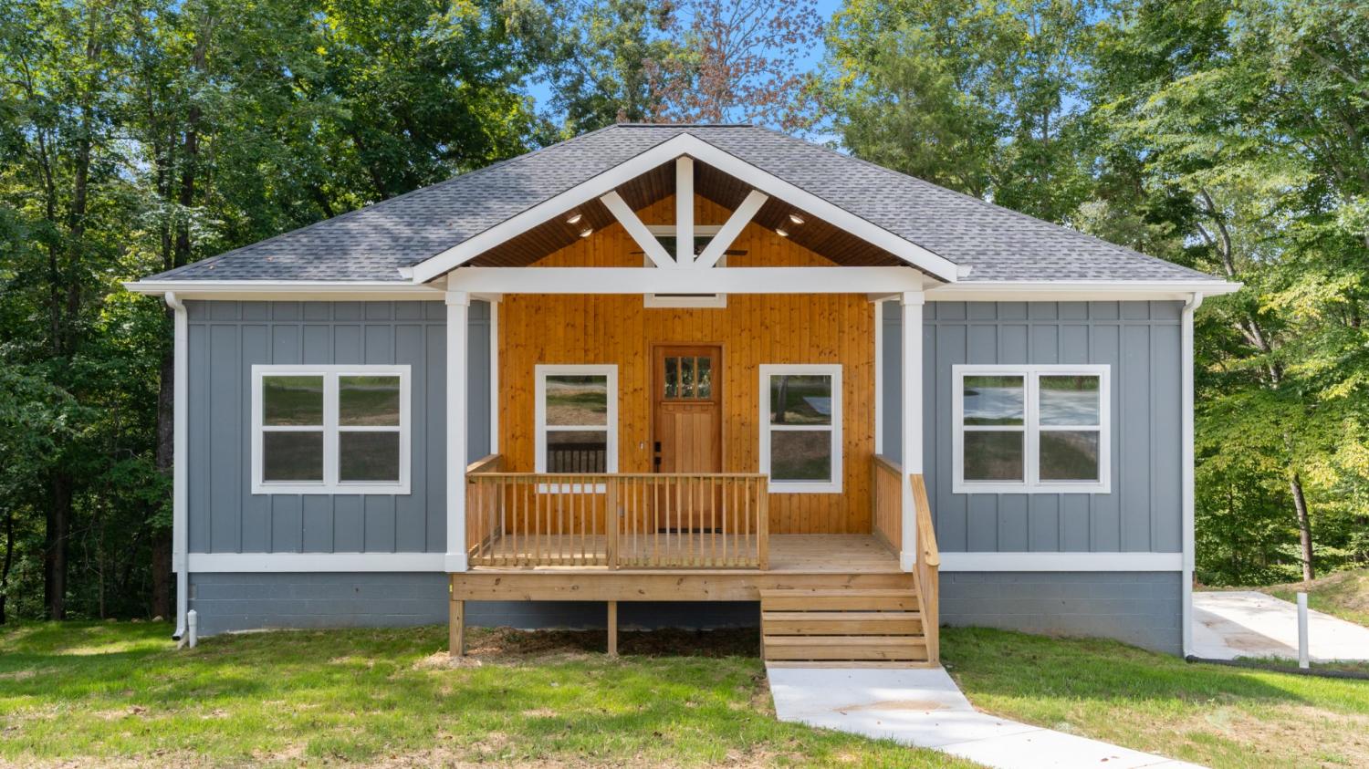 New Construction Approx. 2174 sq. ft. 3 bedroom, 2 bath home located walking distance to Normandy Lake. Home features an open concept living area with Oak hardwood and tile flooring, 10 ft ceilings and Accent wall with electric fireplace. Master bedroom has walk-in closet with custom built-in shelves. Master bath has double sink vanity, walk-in tile shower with glass door and large linen closet. The main level also includes two additional bedrooms and a second bath. Basement level includes a 19x29 Rec room/multipurpose room and oversized 2 car garage with large work area and additional storage. Peaceful country living on a 2 acre wooded lot is enhanced with the addition of a Covered front porch, covered back deck and covered patio all with ceiling fans and lighting . Located on a dead end street walking distance to Firelake boat ramp on Normandy Lake.