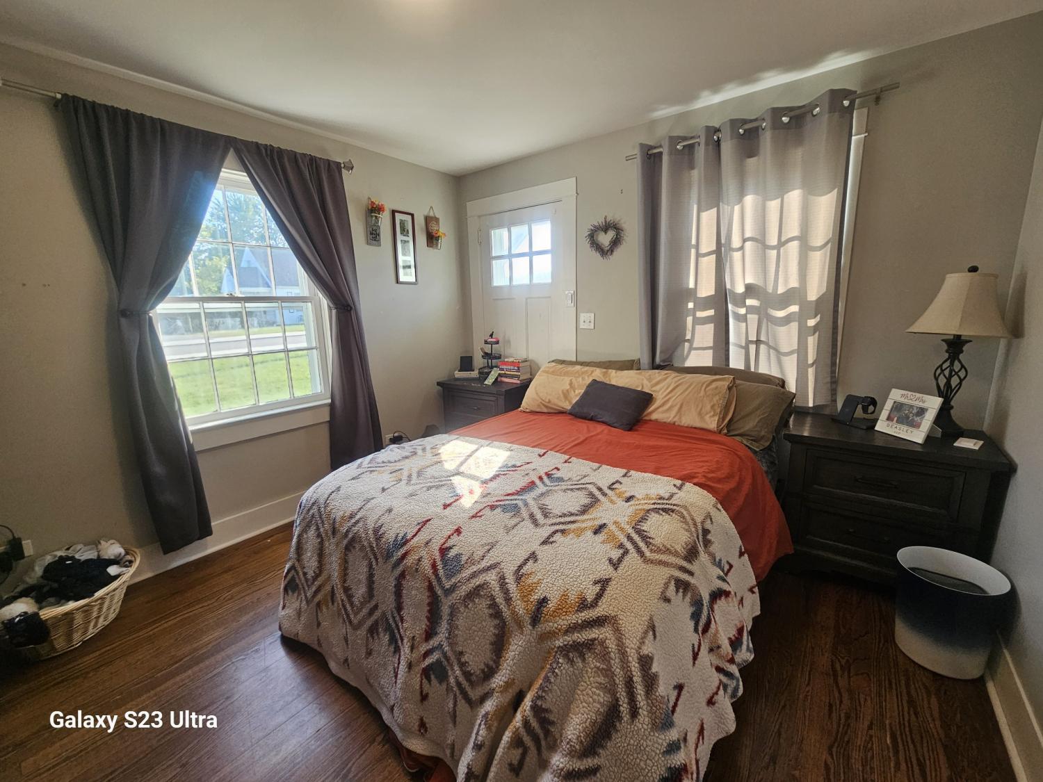 Charming 1948 custom-built brick home located just one block from the community center, which features ball fields, a wooden playground, swimming pool, gym, basketball courts, skate park, and more. Conveniently close to shopping, city bus and everyday essentials. Original hardwood floors and doors. Tongue & Groove behind all the drywall, creating extra insulation. This home offers gas heat, a tankless water heater, and a climate-controlled full basement that opens to a spacious 4-car carport with full-length side storage. The backyard includes a mature black walnut tree, two pear trees, several mulberry bushes, and a newly built cedar clothesline—perfect for a starter homestead. Enjoy relaxing or entertaining on the oversized front porch. Inside, the main level features an updated kitchen with brick accents, a large bathroom with washer/dryer hookups, and two bedrooms—one with its own private porch. Upstairs, a generous loft bedroom includes his and her closets. Outdoor spaces include two front flower beds with annuals and a large garden bed near the AC unit. While thoughtfully updated, this home retains its original charm and character. Agent has interest in property