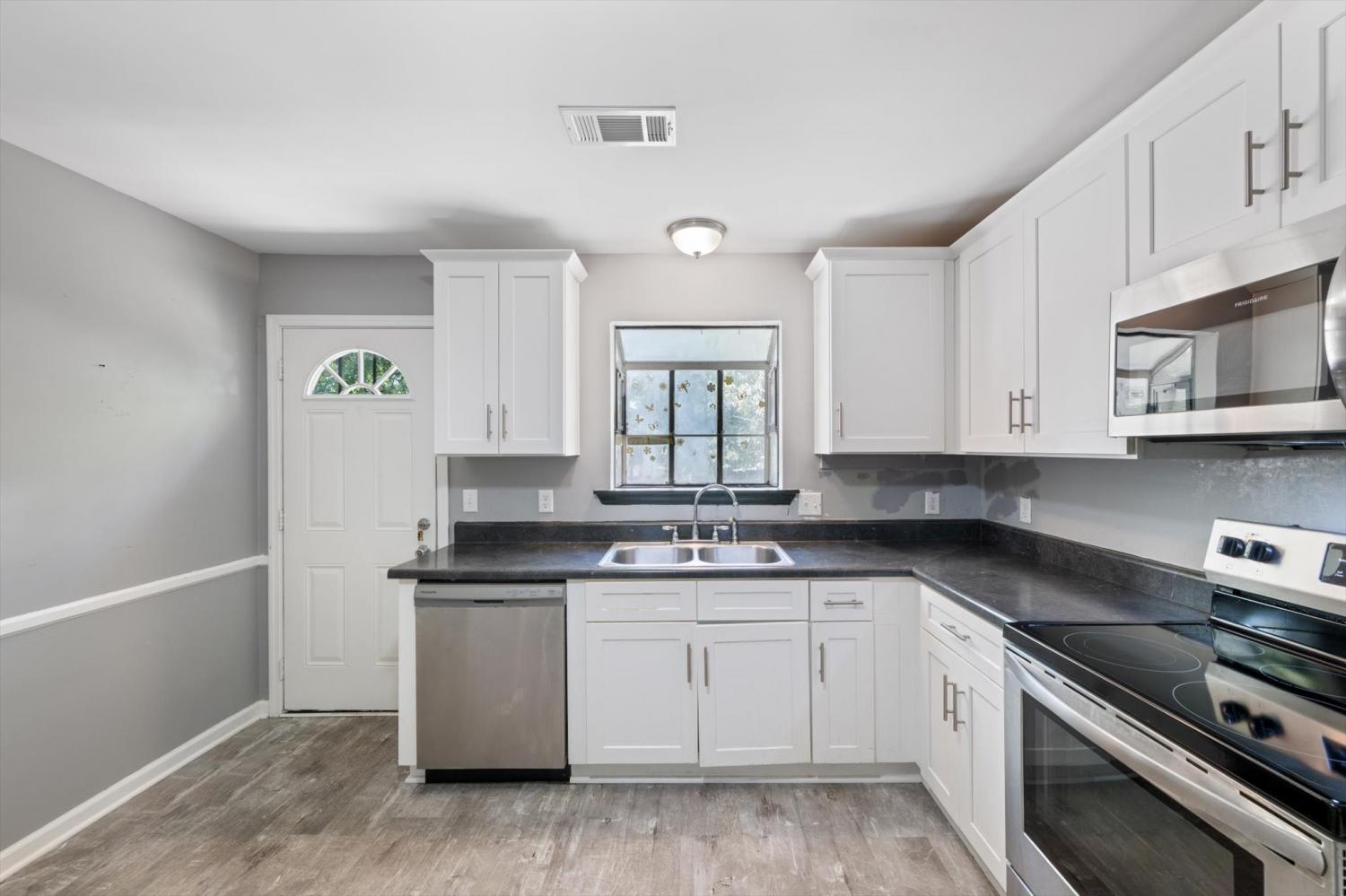 Cul-de-sac charm at an unbeatable price! This lovely, single-story, move-in ready 2-bedroom, 2-bath home is just waiting for you to make it yours. With its spacious great room featuring high ceilings, a cozy wood-burning fireplace, and built-in shelving, you'll feel right at home the moment you step inside. The updated eat-in kitchen boasts all stainless steel appliances and conveniently opens up to your private, fenced-in backyard—perfect for relaxing or entertaining guests. Plus, there's a generous deck and extra secured storage space! Ideally located just minutes from all your essentials. Pressured washed & professional cleaned! Don’t miss out—schedule your showing today!