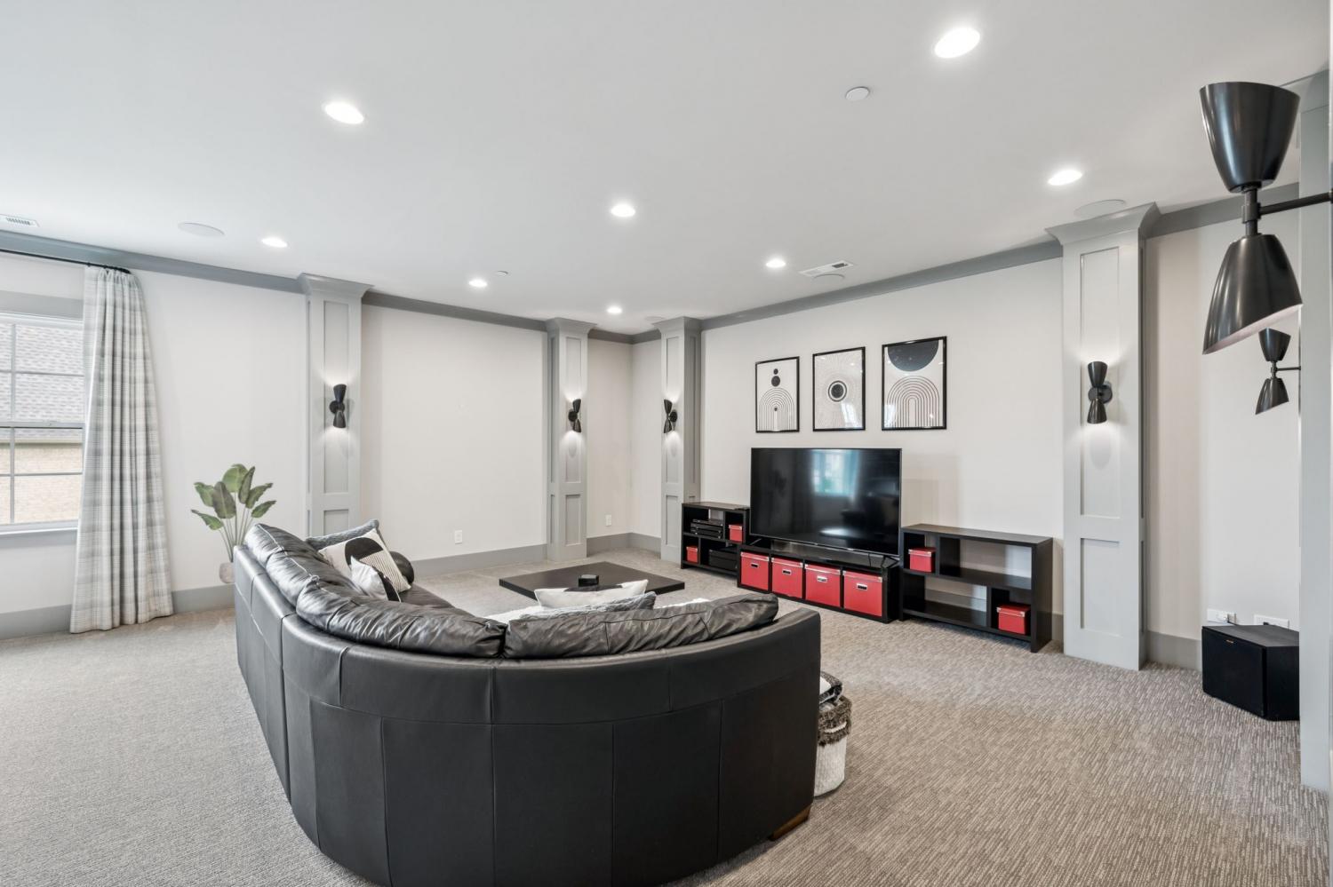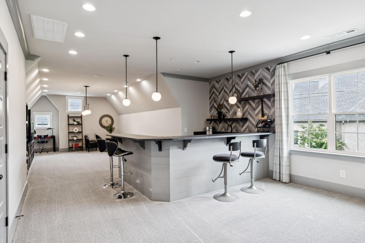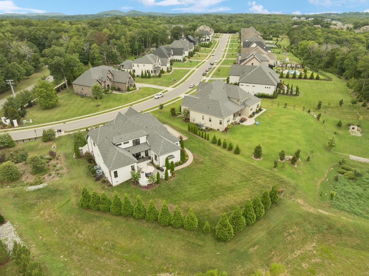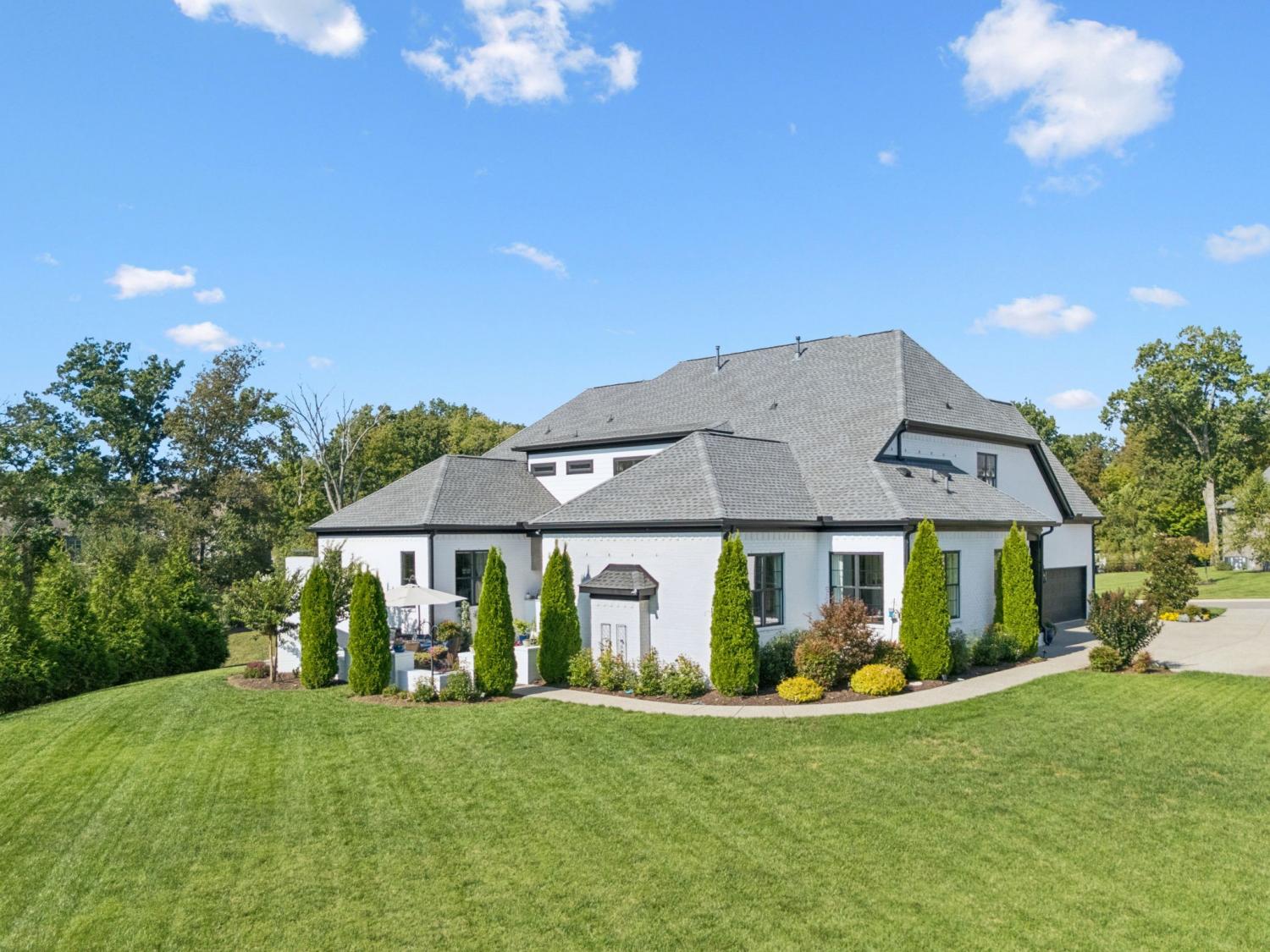 Former Award-Winning "Westchester" Model Home by Turnberry Homes, occupied less than 2 years, is nestled on a private, flat 0.56-acre, pool-sized lot, features over-the-top amenities throughout. From the outdoor living space to the interior details, this residence is perfect for both everyday living & entertaining. Inside, enjoy tall ceilings, 8-foot doors, tall baseboards, crown molding, & wainscoting. Step outside to your private oasis, featuring a covered porch & beautiful courtyard w/ wood-burning fireplace. Front and backyard are fully landscaped & irrigated. The covered porch is complemented by stamped concrete terrace, & outdoor kitchen equipped w/grill, refrigerator, & speakers. Front yard uplighting adds a warm glow. Gourmet kitchen is equipped w/upgraded cabinetry, quartz counters, double wall oven, built-in microwave, & walk-in pantry. Formal dining room showcases wainscoting & flows into the butler's serving bar, complete w/wine storage & wine chiller. The elegant living room boasts a coffered ceiling w/ wood beams, marble surround gas fireplace, & custom built-ins. The great room is equally impressive w/vaulted ceilings, wooden beams, a stone fireplace, & more built-ins. The main-level study w/built-ins, a closet, & full bath, can serve as a 5th bedroom. The primary bedroom is also on the main-level & compliments the primary bath w/ 2 walk-in closets, car wash shower & soaking tub. 3 generously-sized bedrooms upstairs have walk-in closets & ensuites. The massive bonus/media room with large bar features leathered granite, wine chiller, ice maker, & surround sound. Functional & Practical Details include a private friend’s entrance w/ key pad lock, large drop zone w/storage bins, epoxy garage floors, custom window coverings, laundry room w/built-in sink, upper & lower cabinets, & shelves, fire sprinkler system, security system, double staircase, & attic storage. Located in highly sought after Williamson County School District, in premier Neighborhood.