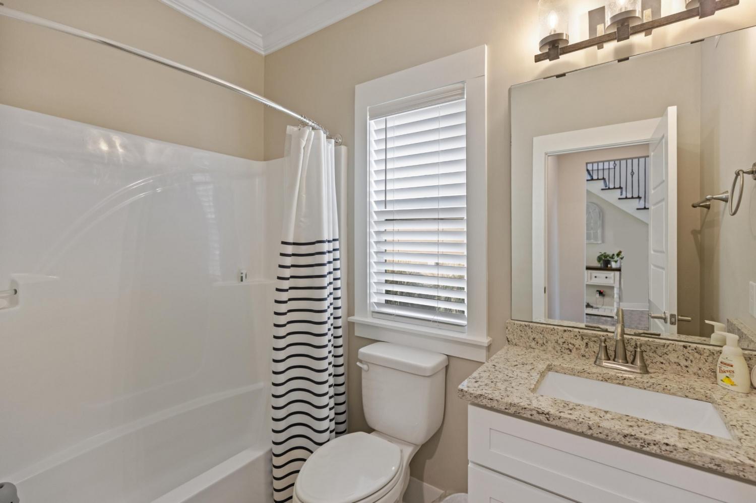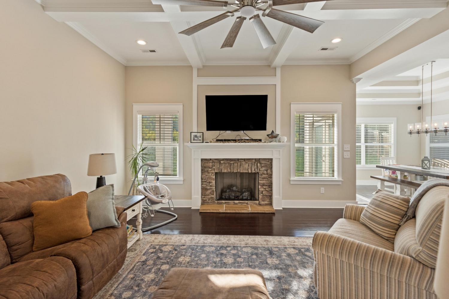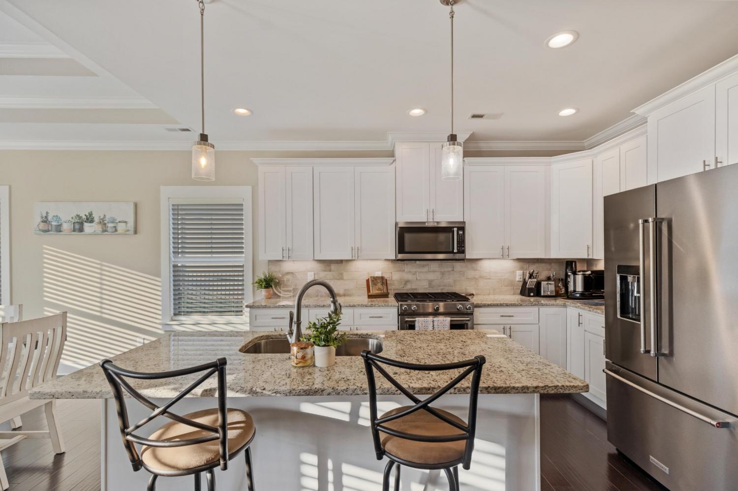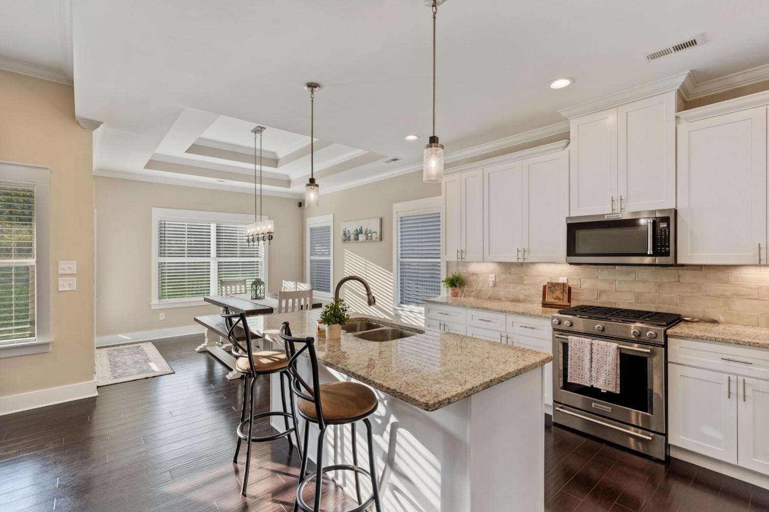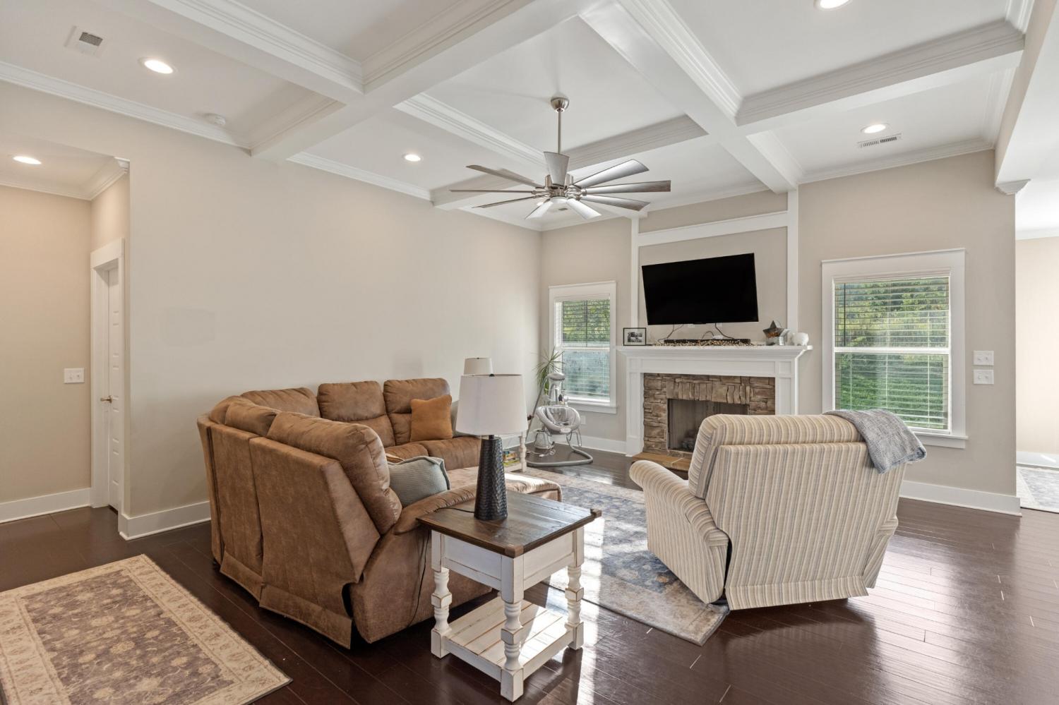Nestled in one of Cleveland's most sought-after neighborhoods, this custom-built home offers the perfect blend of style, comfort, and convenience. Completed in 2021, this property is better than new—fully move-in ready with thoughtful extras like window coverings and a refrigerator already in place. Step inside to discover a modern open floor plan with the latest color palettes, timeless design elements, and quality finishes throughout. Highlights include crown and base moldings, decorative ceiling details, a cozy gas log fireplace, granite countertops, hardwood floors, and inviting covered porches—perfect for relaxing or entertaining. The gourmet kitchen is a chef's dream, featuring stainless steel KitchenAid appliances, including a gas range (dual fuel option), integrated dishwasher, and more. The main level is thoughtfully designed with a luxurious primary suite, guest bedroom and bath, spacious great room, dining area, and laundry room. Upstairs, you'll find two additional bedrooms, a full bath, and an oversized finished bonus room—ideal for a home office, playroom, or media space. One of the home's standout features is the back porch view, overlooking 25+ acres of active farmland, offering a peaceful and picturesque setting. Don't miss your chance to own this beautifully maintained home in Lakeside Cottages at The Farm. Schedule your showing today and experience the perfect balance of modern luxury and Southern charm.