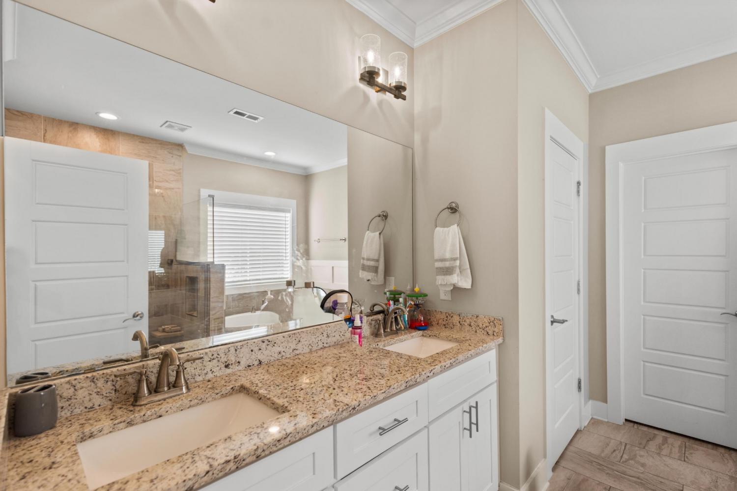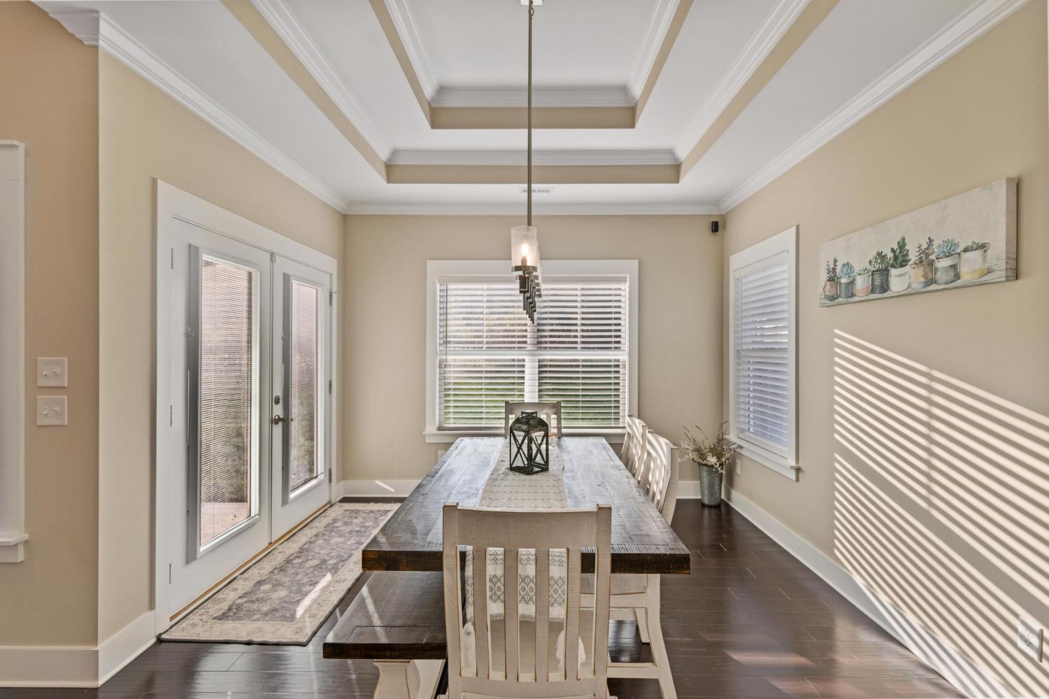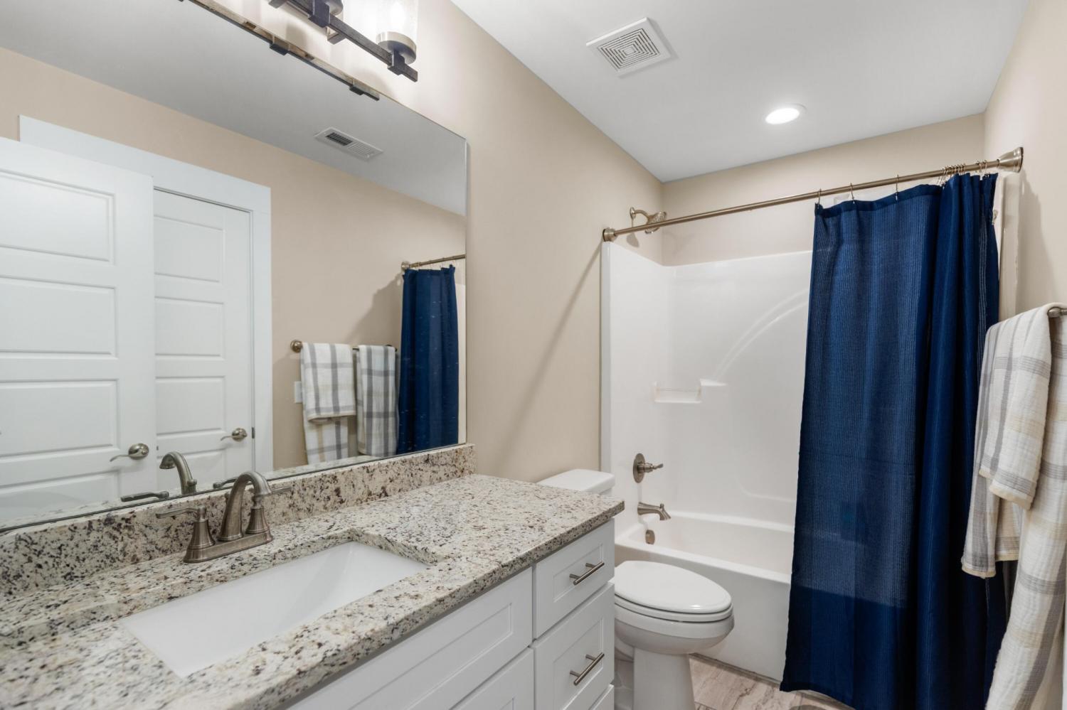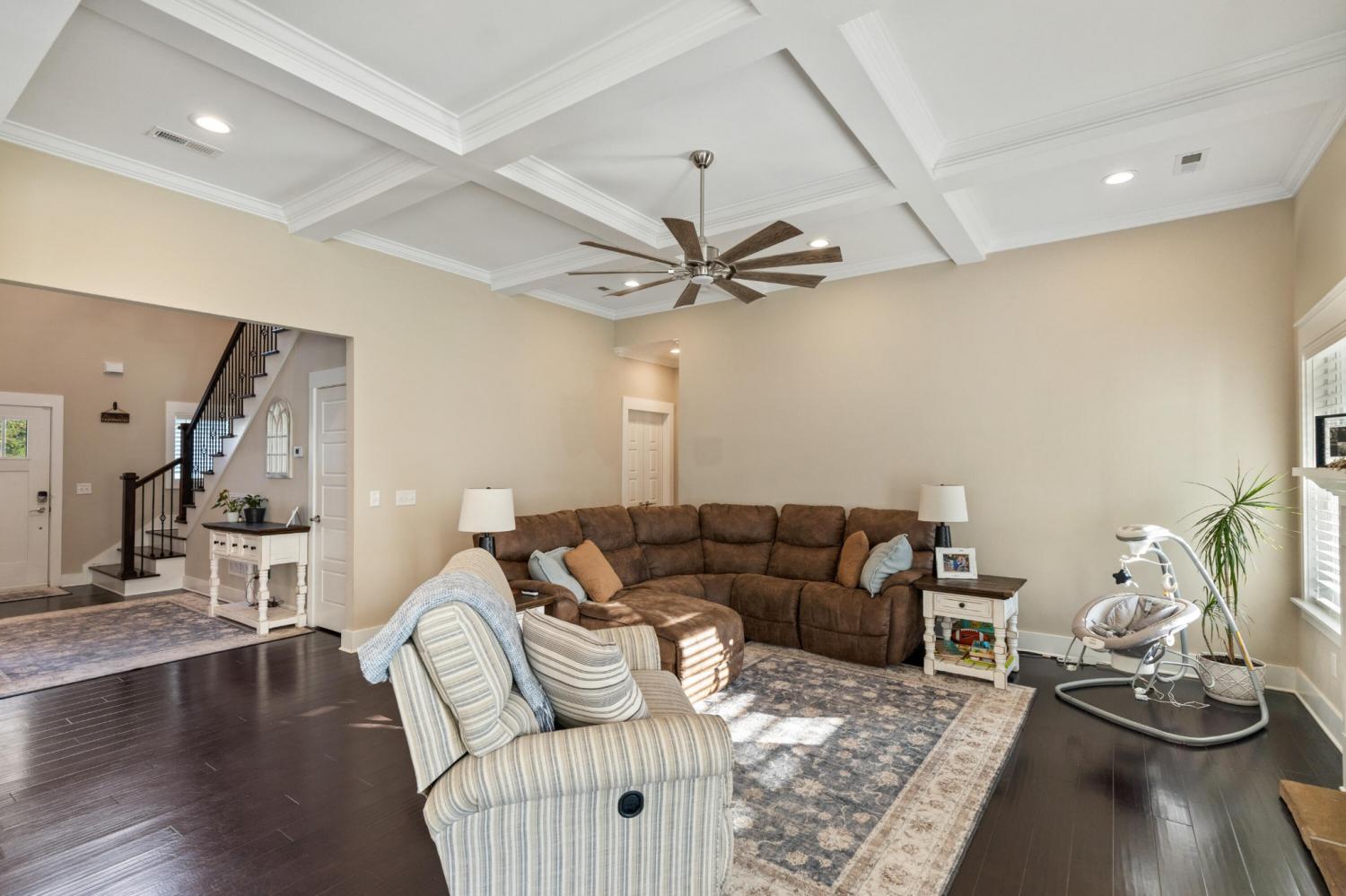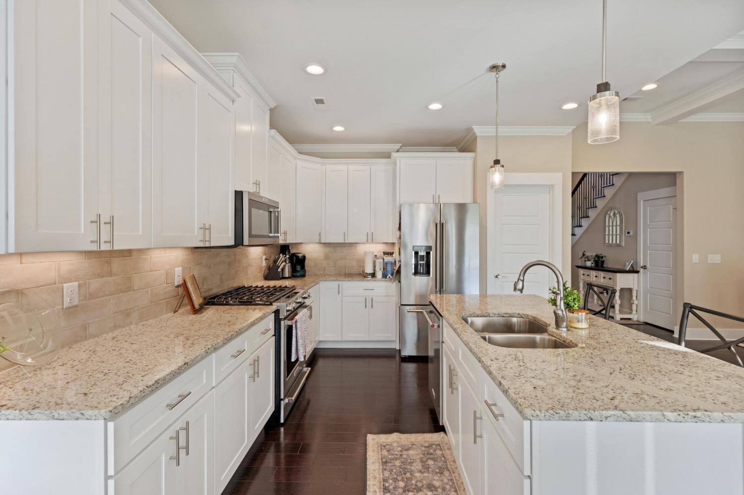 Nestled in one of Cleveland's most sought-after neighborhoods, this custom-built home offers the perfect blend of style, comfort, and convenience. Completed in 2021, this property is better than new—fully move-in ready with thoughtful extras like window coverings and a refrigerator already in place. Step inside to discover a modern open floor plan with the latest color palettes, timeless design elements, and quality finishes throughout. Highlights include crown and base moldings, decorative ceiling details, a cozy gas log fireplace, granite countertops, hardwood floors, and inviting covered porches—perfect for relaxing or entertaining. The gourmet kitchen is a chef's dream, featuring stainless steel KitchenAid appliances, including a gas range (dual fuel option), integrated dishwasher, and more. The main level is thoughtfully designed with a luxurious primary suite, guest bedroom and bath, spacious great room, dining area, and laundry room. Upstairs, you'll find two additional bedrooms, a full bath, and an oversized finished bonus room—ideal for a home office, playroom, or media space. One of the home's standout features is the back porch view, overlooking 25+ acres of active farmland, offering a peaceful and picturesque setting. Don't miss your chance to own this beautifully maintained home in Lakeside Cottages at The Farm. Schedule your showing today and experience the perfect balance of modern luxury and Southern charm.