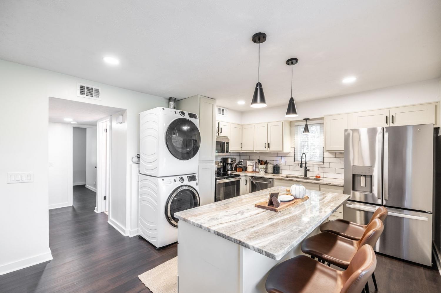 Centrally located with convenient access to Brentwood, Nashville, and Franklin, this move-in ready home has been beautifully updated and is ready for you. Step inside to find fresh paint throughout, a newly added entryway/mudroom, and brand-new vinyl flooring. The kitchen is a showstopper with new cabinets, pantry, granite/marble countertops, tile backsplash, center island, and all-new stainless steel appliances. The open floorplan flows seamlessly into the living room, complete with a cozy wood-burning fireplace. Additional upgrades include new trim, triple-pane windows with blinds, and dimmable recessed lighting in the kitchen, living room, and hallways. Major improvements provide peace of mind with a new roof (2025) and water heater (2024). With modern finishes and thoughtful updates throughout, this home offers a fresh and inviting atmosphere from the moment you arrive.