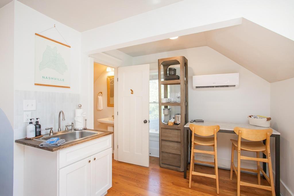 Furnished Studio in the Heart of East Nashville – 1815 Boscobel St – Ideal for Writers, Travel Nurses, Corporate Contractors, Students & Remote Workers: This charming, fully furnished studio apartment sits above the garage on a quiet, tree-lined street in one of East Nashville’s most desirable neighborhoods, Lockeland Springs. With a private entrance, it offers a peaceful, low-maintenance retreat perfect for 2–6 month stays. Located just steps from Shelby Park/Shelby Bottoms and walkable to restaurants (Lockeland Table and Urban Cowboy), cafés (Frothy Monkey and International Tea & Coffee Company), and shops at Fatherland, this space offers both urban convenience and a true community feel. The street is known for its welcoming neighbors and serene atmosphere—balancing connection and privacy. Highlights: Fully furnished with stylish, functional decor, including a luxurious king memory foam bed; Dedicated workspace + high-speed Wi-Fi; Walkable, bike-friendly, and near public transit; Quick access: roughly 10 minutes to BNA airport, 8 minutes to Bridgestone, 5 minutes to Downtown, 1 minute to your nearest coffee at Frothy Monkey; Prefer no pets, but open to discussion.