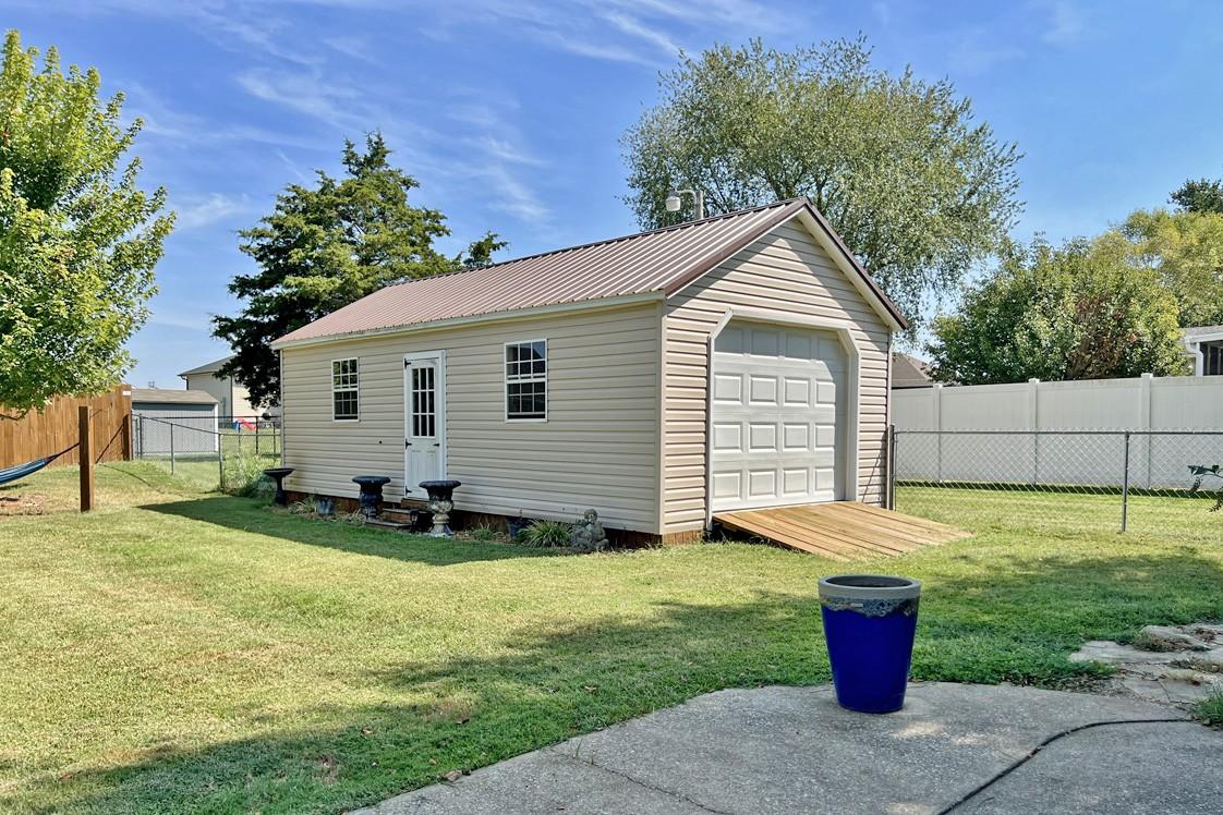 Welcome to 206 Sara Way, a beautifully maintained 3-bedroom, 2-bath home located in the Country Club Estates neighborhood in Franklin, Kentucky. Inside, you’ll find laminate flooring and crown molding throughout, plus an eat-in kitchen with stainless steel appliances. Inviting details like a separate dining room and a spacious sunroom with a freestanding fireplace make this listing a wonderful place to call home. The exterior is equally appealing, offering a fenced backyard with mature landscaping. A workshop/storage building with a roll-up door and side entry adds space for hobbies or storage. Situated just minutes from downtown Franklin with easy access to 31W and I-65, this home offers both charm and functionality in a convenient location. Schedule your private showing today and see all that 206 Sara Way has to offer!
